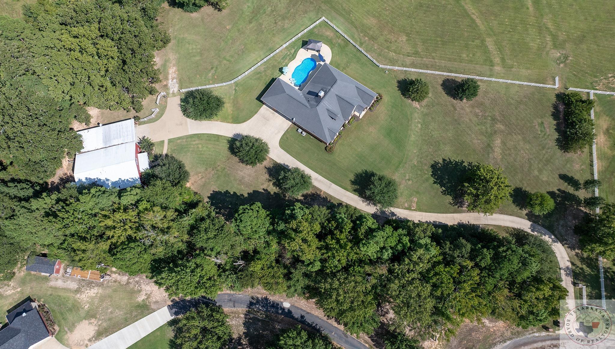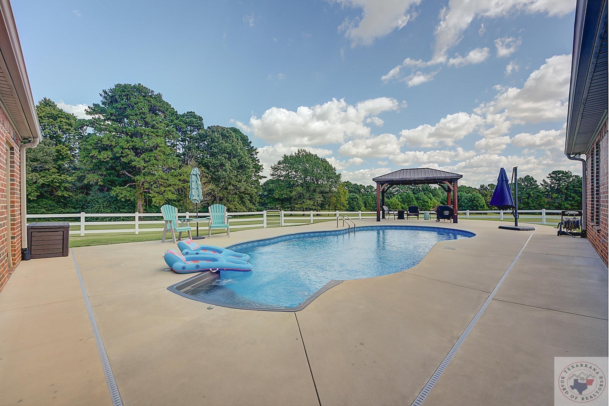 Dreaming of this one? Explore luxury country living at its finest with this exquisite property topping your list! Amidst rolling pastures ready for your horses, discover a stunning home and meticulously maintained land awaiting your dream life. Water sources for your equine friends are in place, including a cistern that is always at a set level nestled among trees. The guest house, a 3 bed/1 bath retreat with a spacious carport and stall area, complements the main residence. The entire property is fenced, boasting custom features like Bosch appliances, a warmer drawer, gas cooktop, tankless water heaters, luxury vinyl and carpet flooring, a 3-car garage, a two-sided rock fireplace, and more! The entire home has Crown Molding and the ceilings are high for a spacious interior. The lavish master suite and gourmet kitchen epitomize style and functionality, while the pool and pergola along with a serene view offer relaxation. A screened porch with a big screen TV and elegantly scored concrete floors ensure year-round entertainment or this can be where you entertain your sports fans. The guest house mirrors the main home's quality, featuring a glassed-in seating area to view the rolling pastures for unwinding while enjoying the property's beauty. The Fence has Water Faucets set every 50 feet, and there is a Solar Powered Gate with remotes. Plenty of parking for your friends, and the rustic appeal of the Guest house gives your warmth with Cedar Ship lap along the wall with Venetian Plaster and Vaulted Knotty Pine inthe Family room, we also have a loft for the kids to explore.