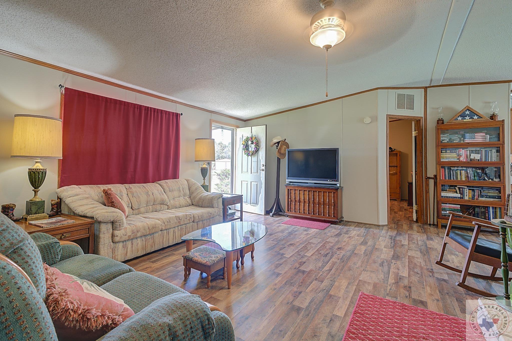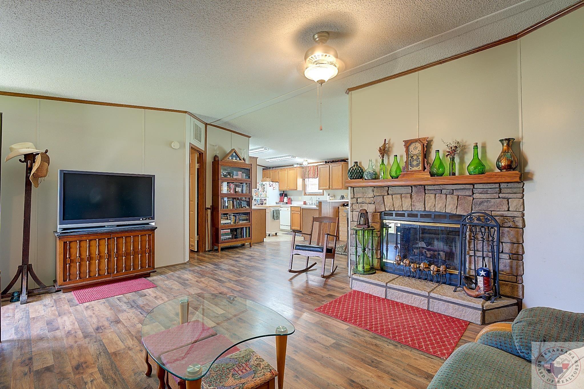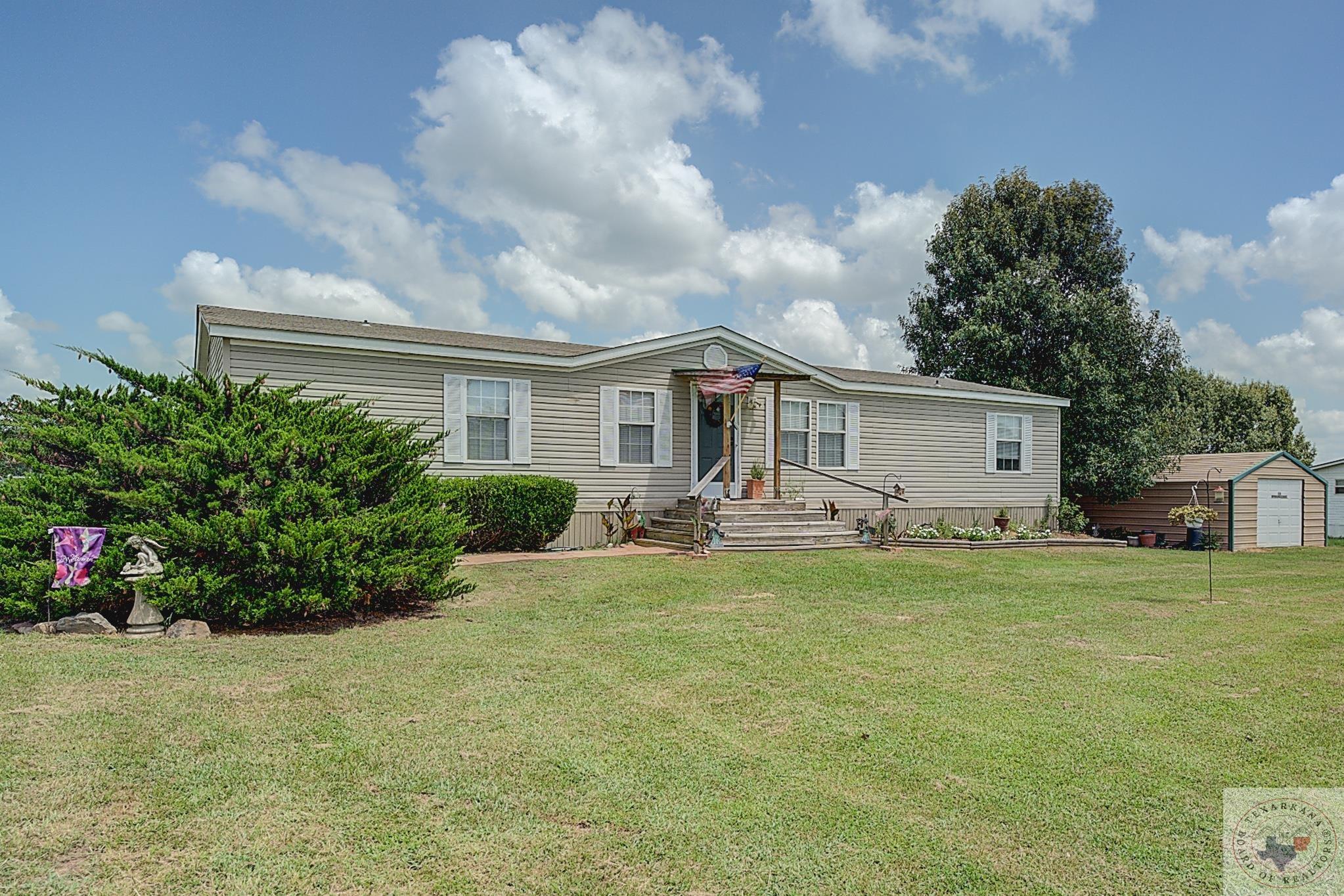 Discover this charming Country Living property, perfect for your first or forever home. Enjoy the ease of maintenance, low taxes, and a covered deck for unwinding after a day's work. Explore the spacious yard, ideal for kids, grandkids, or beloved pets. Nestled in a tranquil neighborhood with friendly neighbors, just minutes from Hwy 59 South or Walmart via the Loop. The 20 x 18 Storage Building, currently a storage space, can easily convert into a garage. While two bedrooms are packed up, the property is well-kept and orderly. Delight in the large Master Bath featuring a Sit-down Shower for safety and a Corner Soaker tub for relaxation. Embrace this wonderful living space.