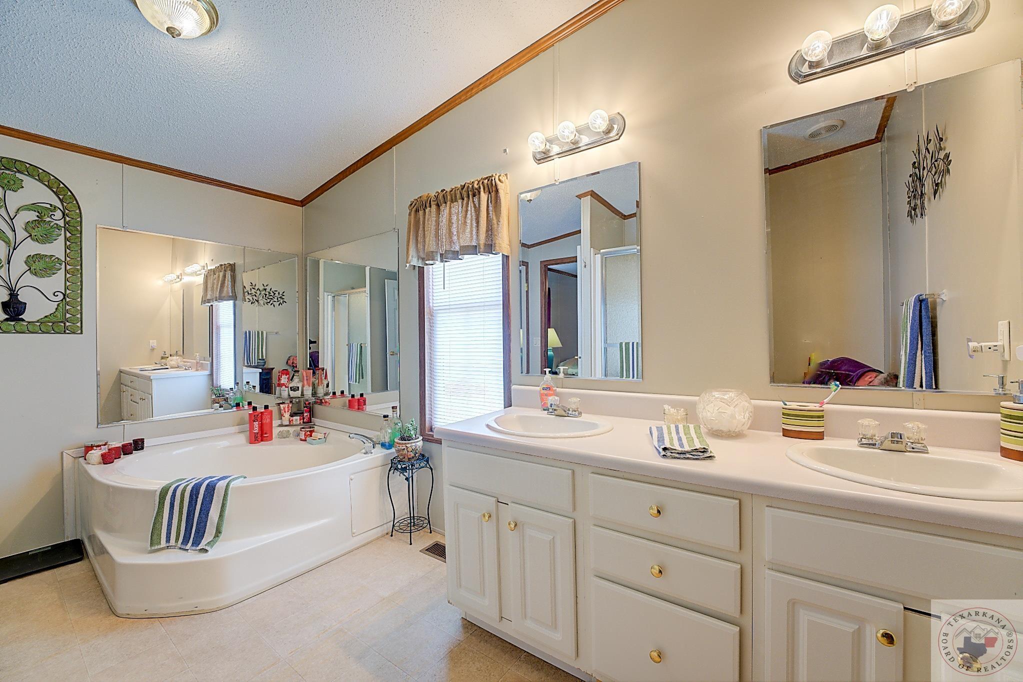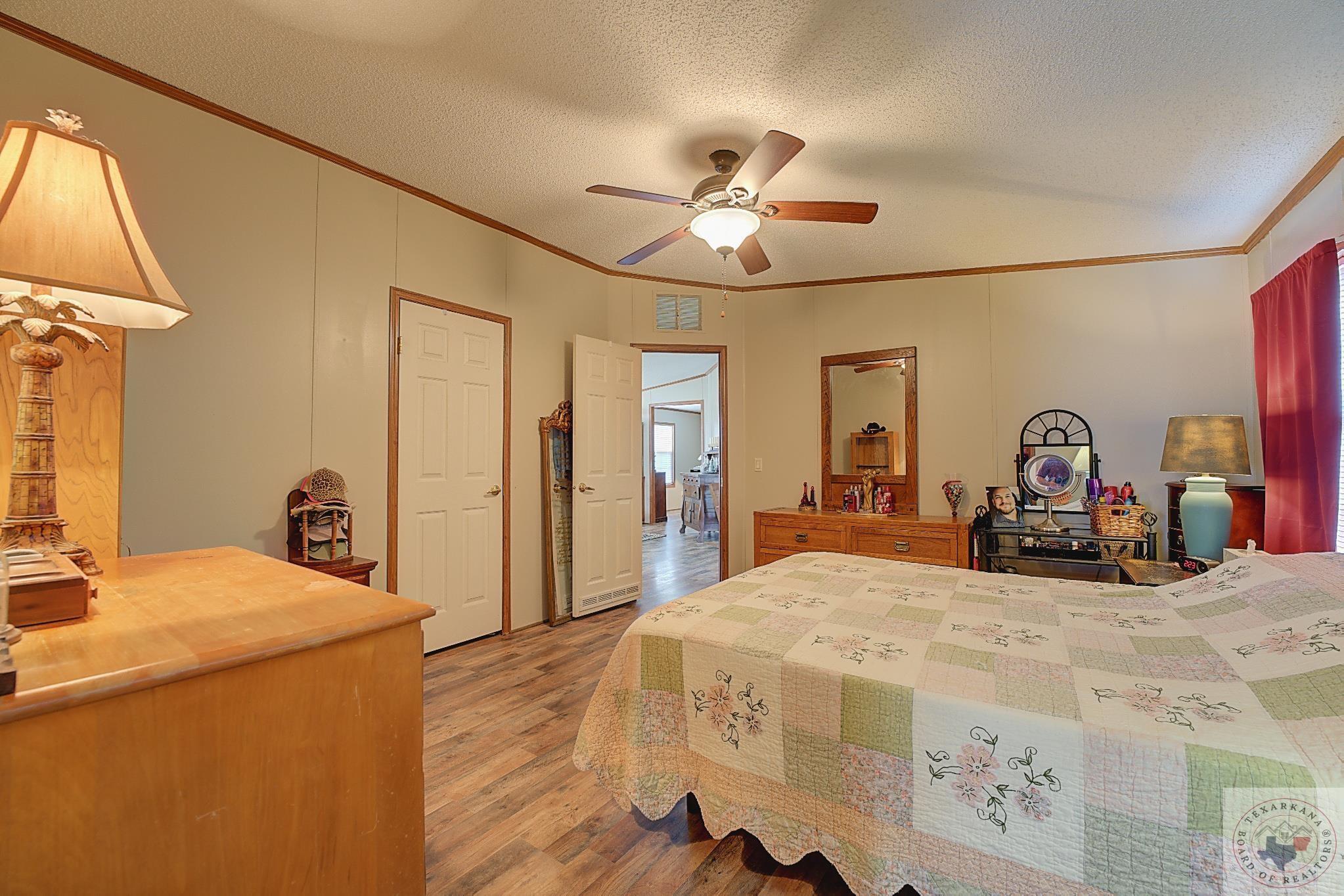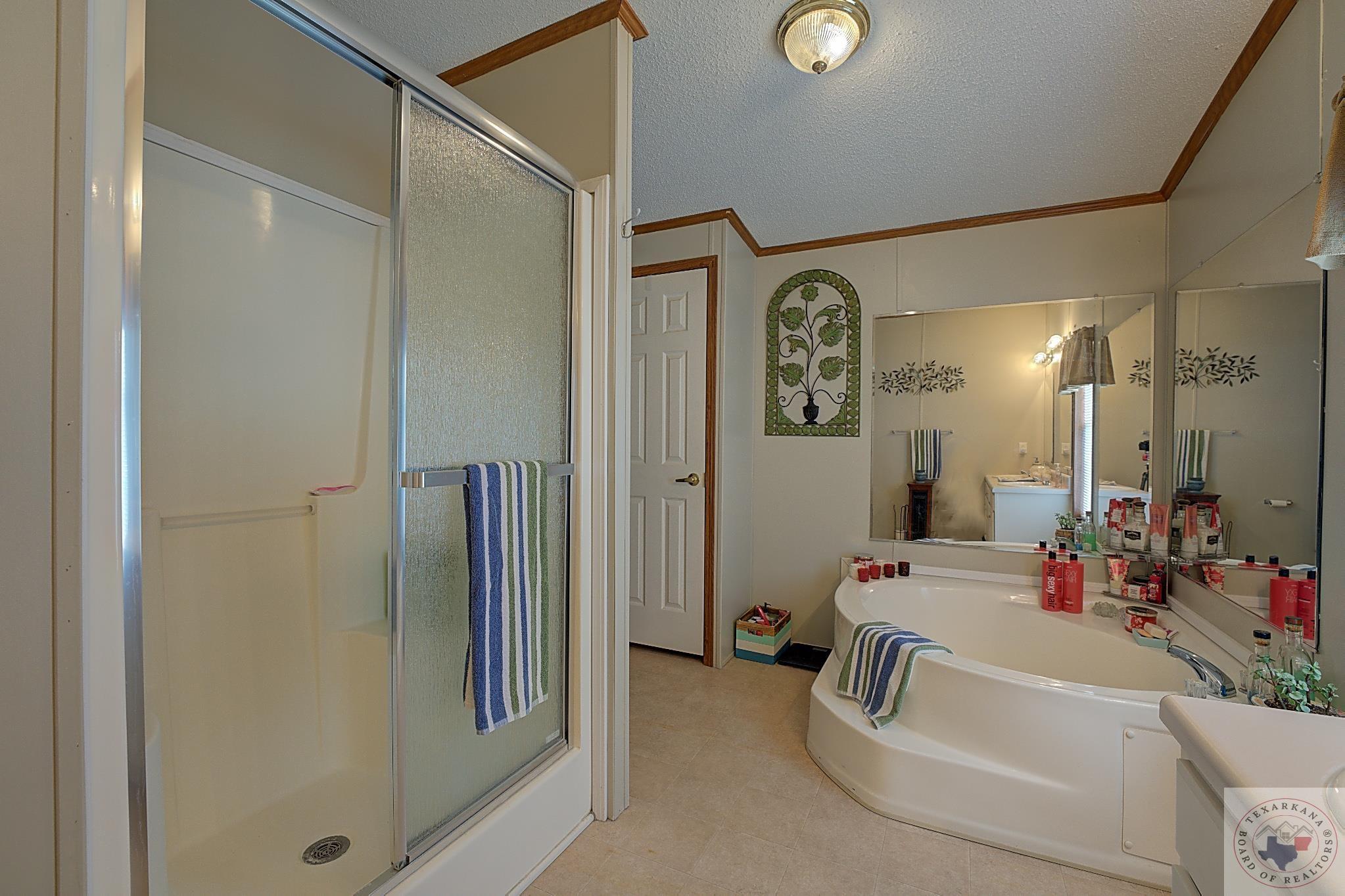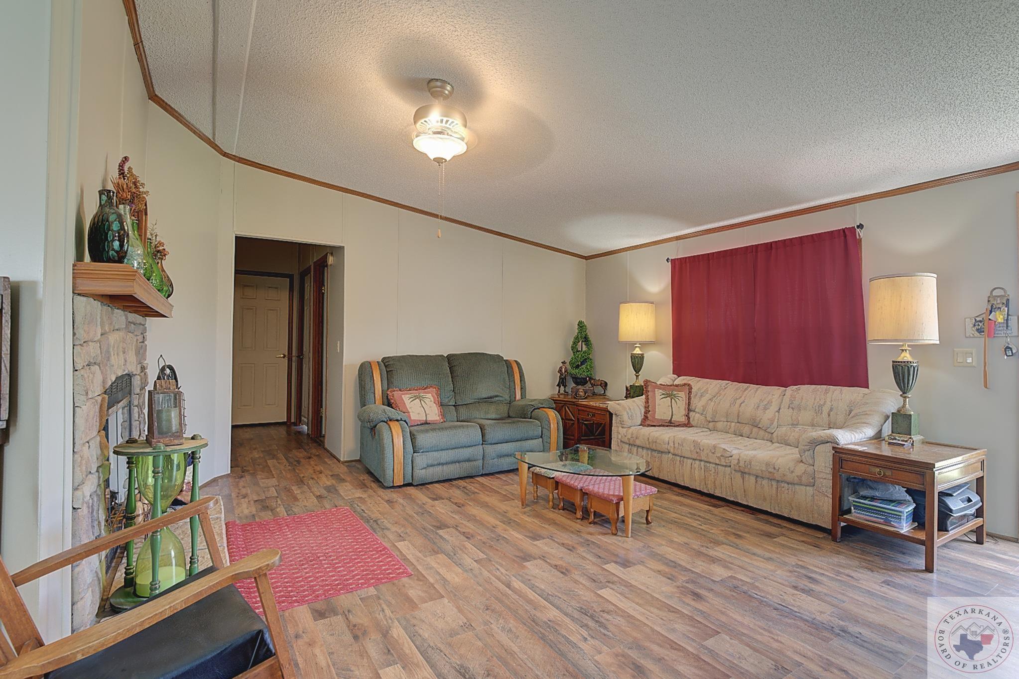 Discover this charming Country Living property, perfect for your first or forever home. Enjoy the ease of maintenance, low taxes, and a covered deck for unwinding after a day's work. Explore the spacious yard, ideal for kids, grandkids, or beloved pets. Nestled in a tranquil neighborhood with friendly neighbors, just minutes from Hwy 59 South or Walmart via the Loop. The 20 x 18 Storage Building, currently a storage space, can easily convert into a garage. While two bedrooms are packed up, the property is well-kept and orderly. Delight in the large Master Bath featuring a Sit-down Shower for safety and a Corner Soaker tub for relaxation. Embrace this wonderful living space.