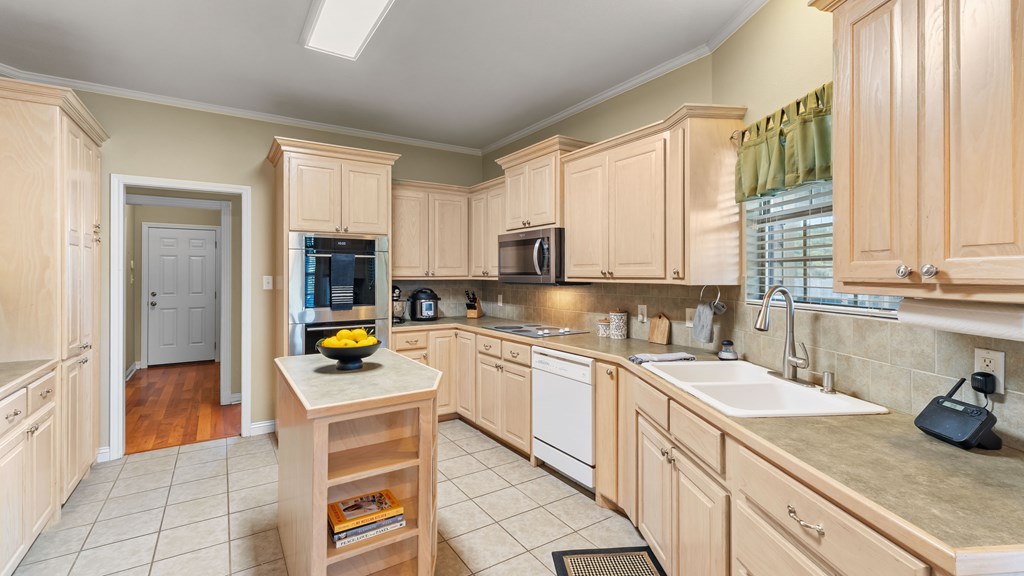 This is the view you have been searching for. Wake up to watch the mist evaporate over the lake from this superb property. A true oasis, this home features two fireplaces, a hot tub, and an inground Gunite saltwater pool overlooking the water. You have to see it to believe it. The home has it all, including two living areas and a large kitchen with an island, all with windows focused on the beauty of the pool and lake. A convenient bathroom provides direct access to the pool area. An extra single garage is perfect for your tools or hobbies. The large master suite boasts its own fireplace for extra ambiance. A dedicated office can easily serve as a fourth bedroom. Wood flooring runs through the main areas, with tile in the kitchen and carpet in the bedrooms. An extra-long drive provides ample parking, and a side gate allows you to enter the backyard oasis without going through the house. The den, with its multiple windows, offers stunning views and abundant natural light in a very private part of the home. Outside, enjoy a built-in grilling area with a refrigerator, surrounded by mature crepe myrtles blooming in a rich fuchsia hue.