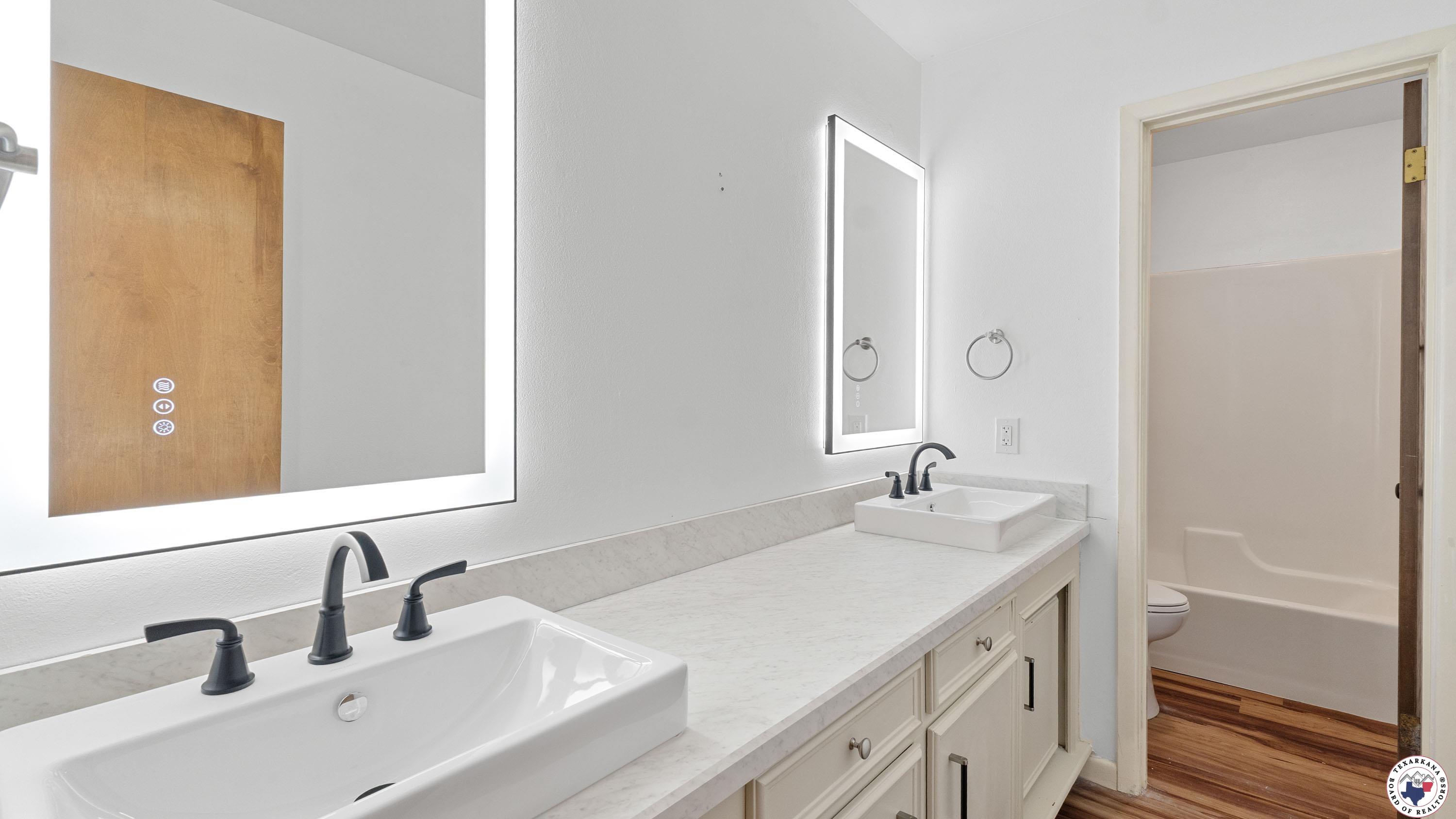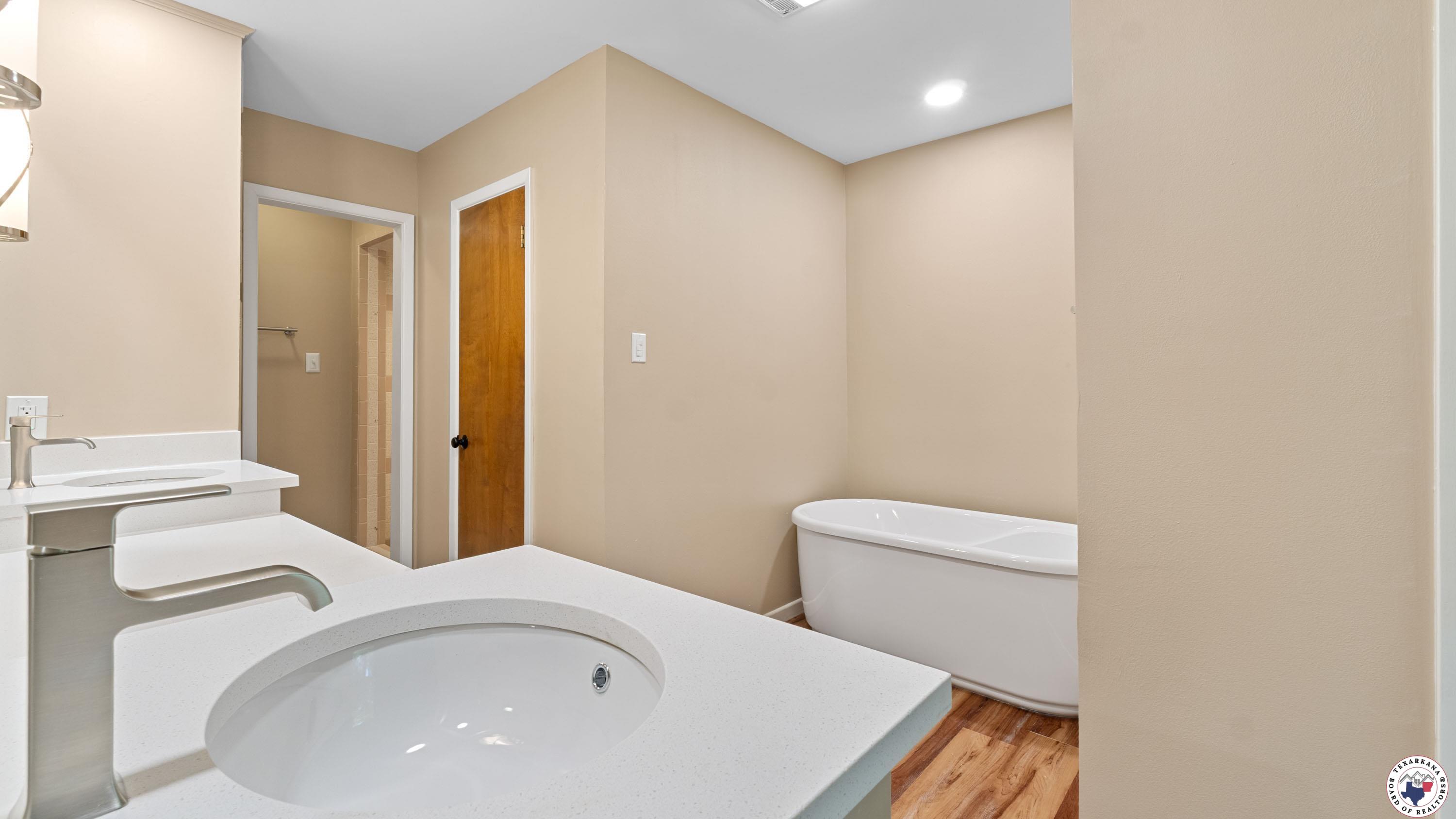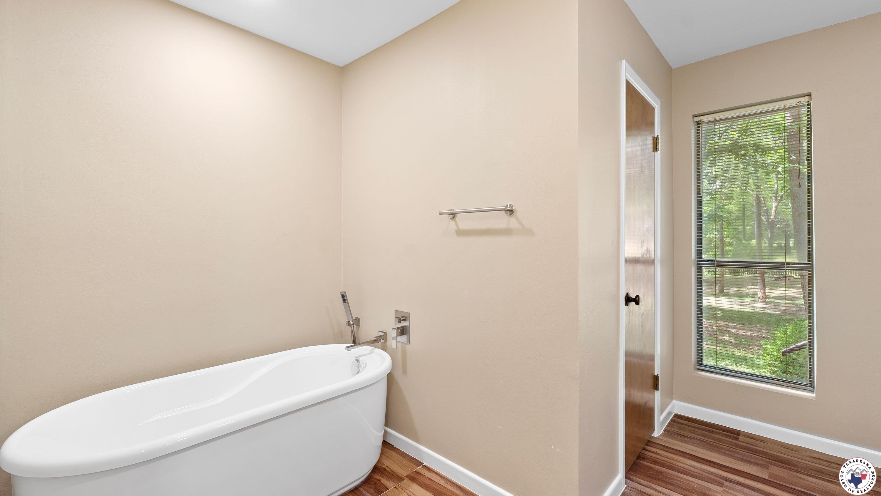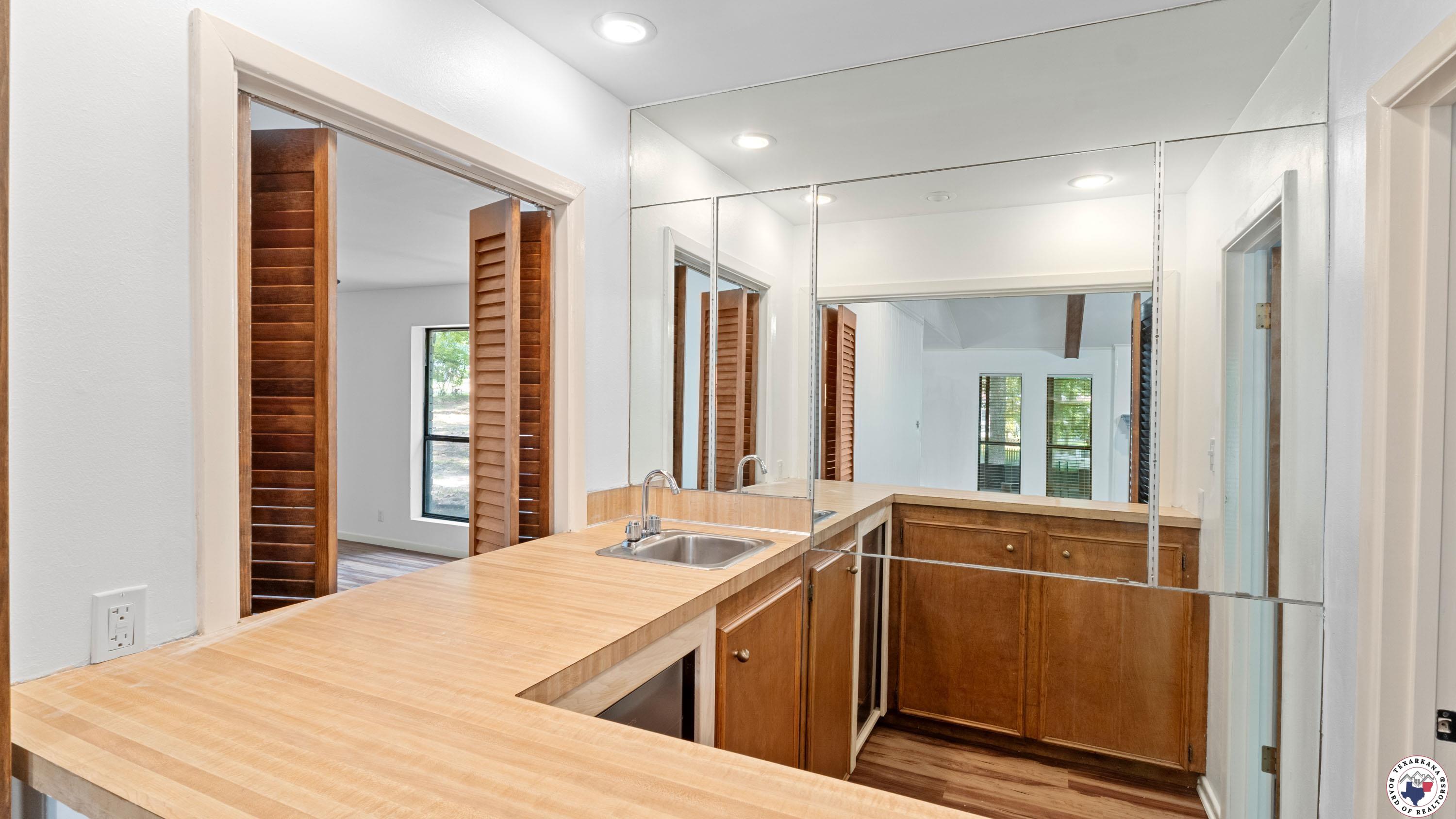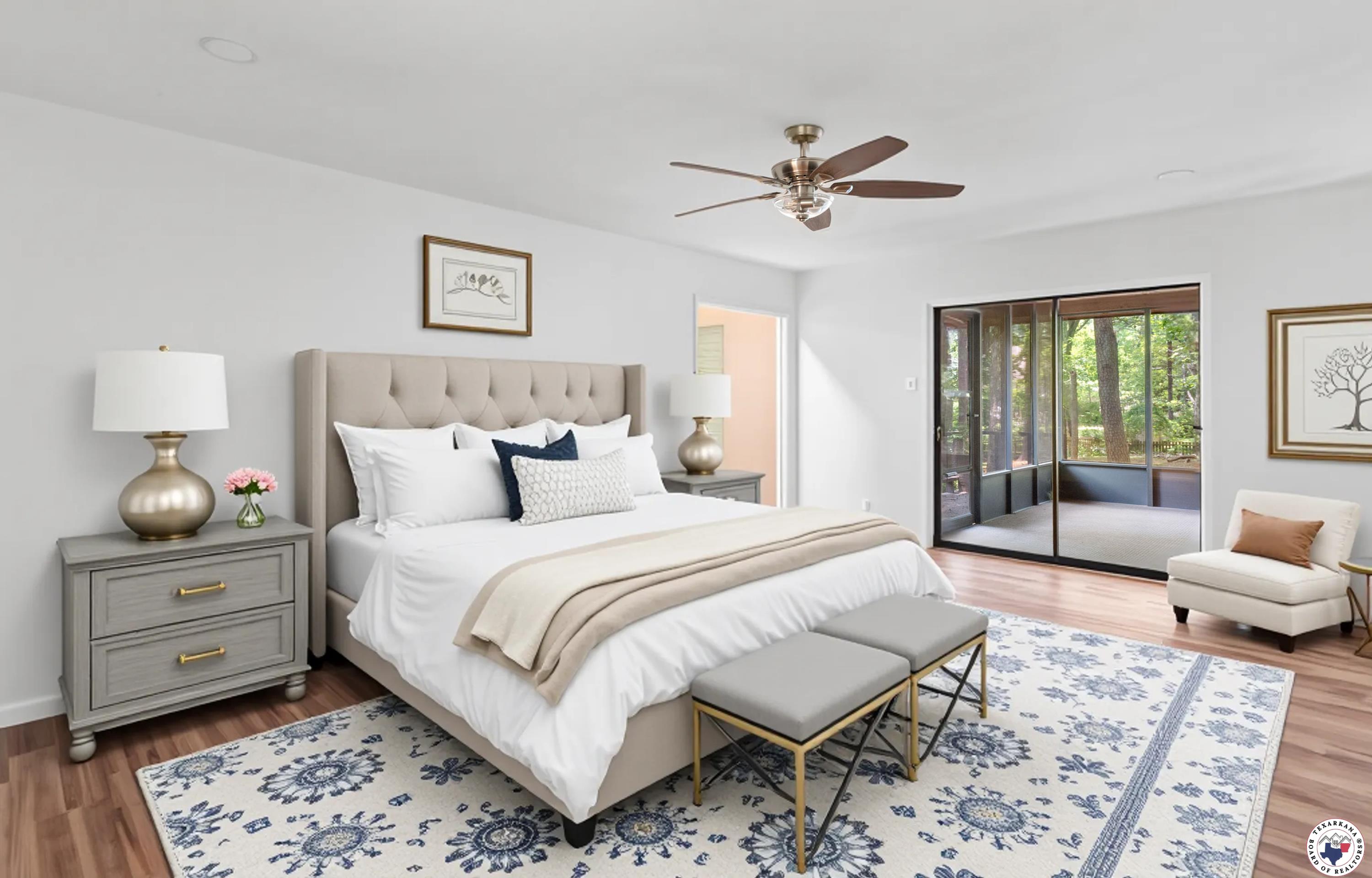 This stunning contemporary home is thoughtfully designed for effortless entertaining, offering a spacious open layout, a large kitchen, vaulted ceilings, and a charming wood-burning fireplace. The property backs onto a serene stand of trees, where you can often catch glimpses of wildlife from the comfort of your enclosed back porch. This versatile space also serves as a third living area. Situated in the heart of Pleasant Grove, the neighborhood exudes charm and provides an ideal setting for jogging or leisurely walks through its tranquil, park-like surroundings. The home has recently undergone significant upgrades, including sleek new quartz countertops, brand-new appliances. Designer lighting enhances the space, creating a warm and inviting atmosphere, while the preserved original parquet flooring adds character to the contemporary design. The primary bedroom is a true retreat, featuring a freestanding soaking tub, elegant sconces framing the quartz vanity, and a cozy vanity area. The family room is ideal for entertaining, complete with a wet bar, while the enclosed back patio offers a perfect space to unwind in privacy. There is an additional Room for Living/or office space and could easily convert to a 4th Bedroom. Practicality meets convenience with a large laundry room equipped with a washer and dryer, alongside a half-bath for added functionality. This is in addition to the two full bathrooms between 2 Bedrooms. This home has no carpet for ease of interior maintenance & a well & sprinkler system for exterior upkeep.