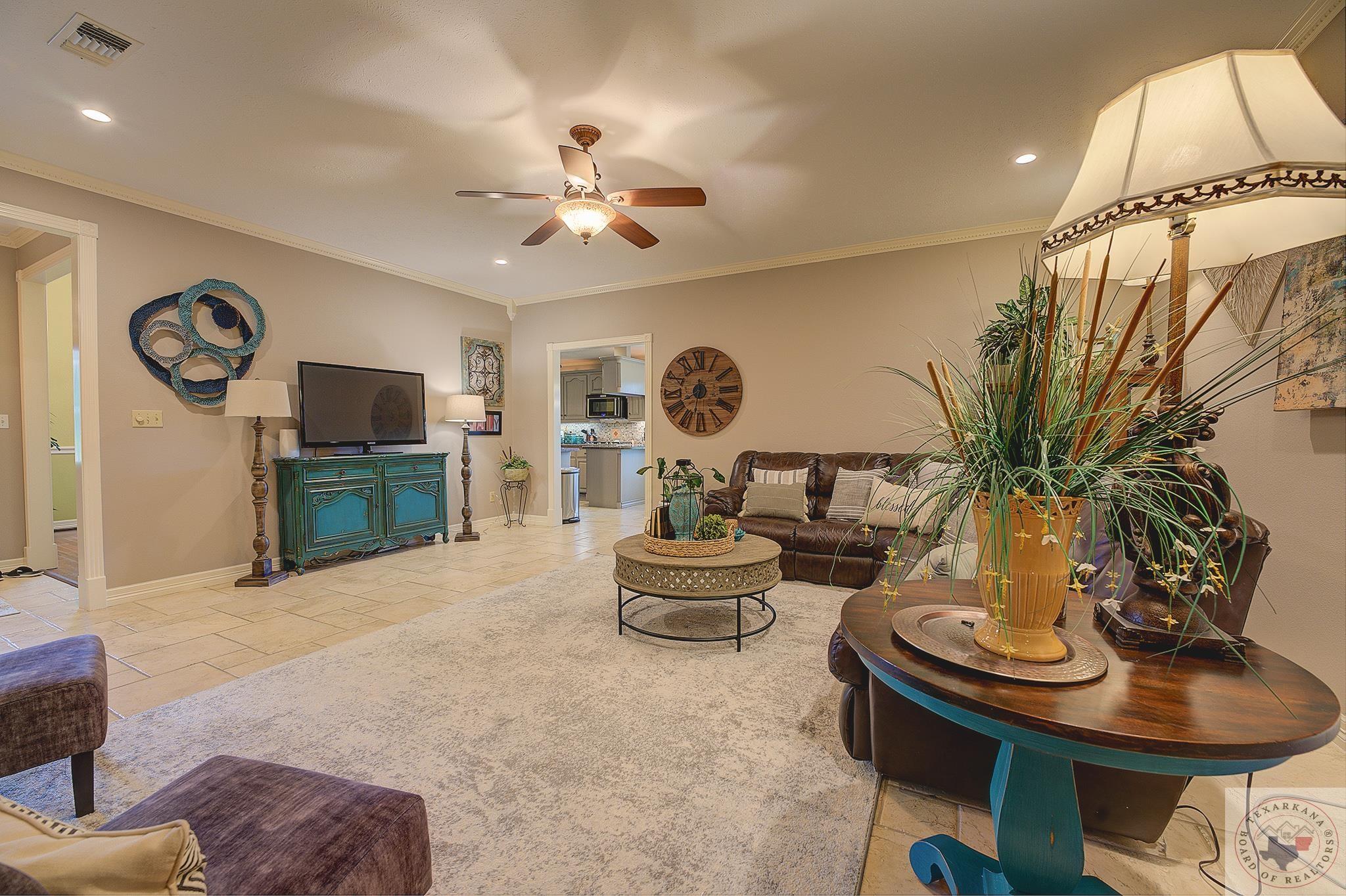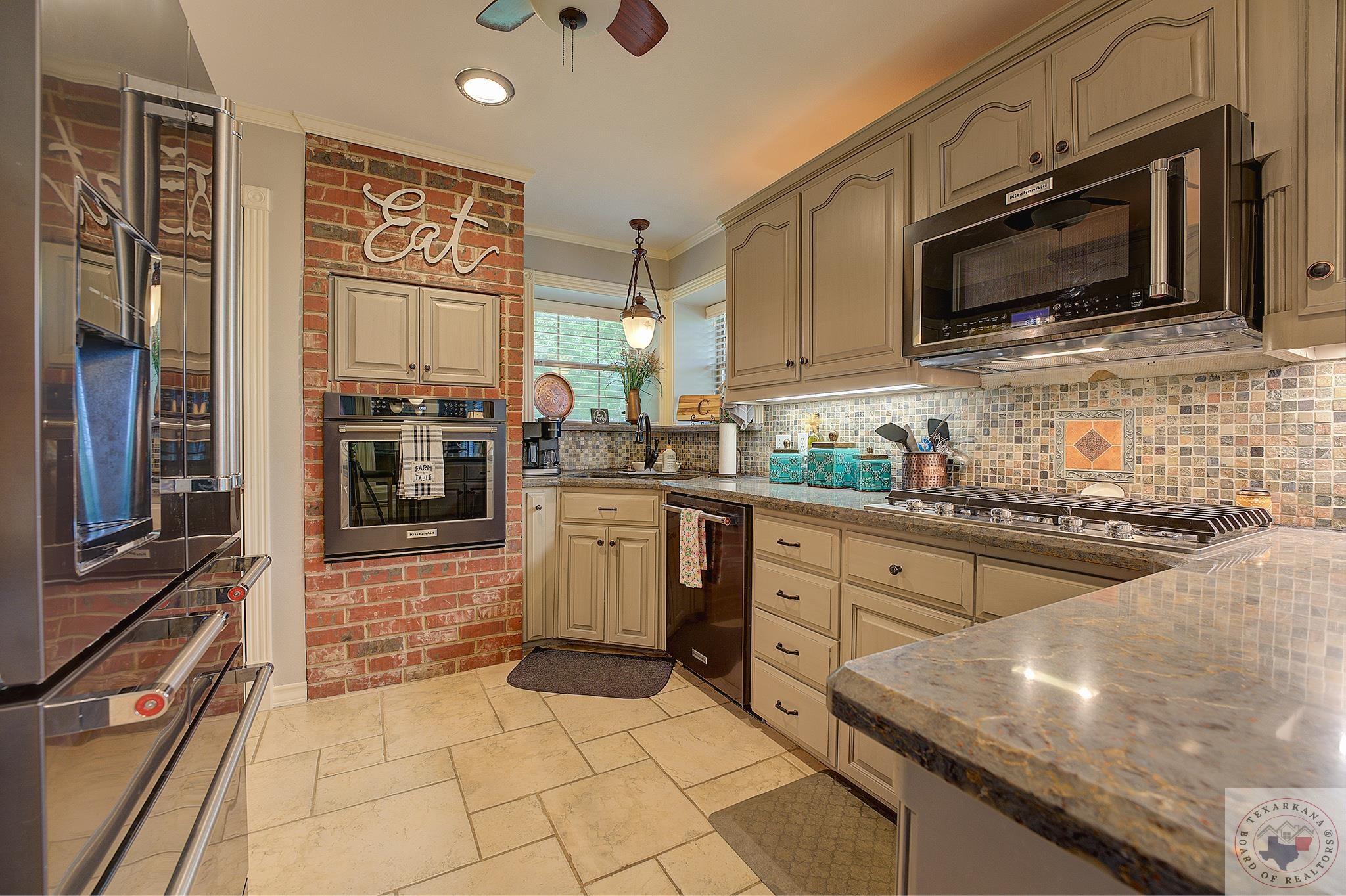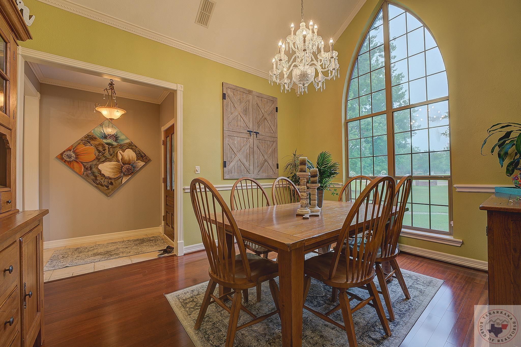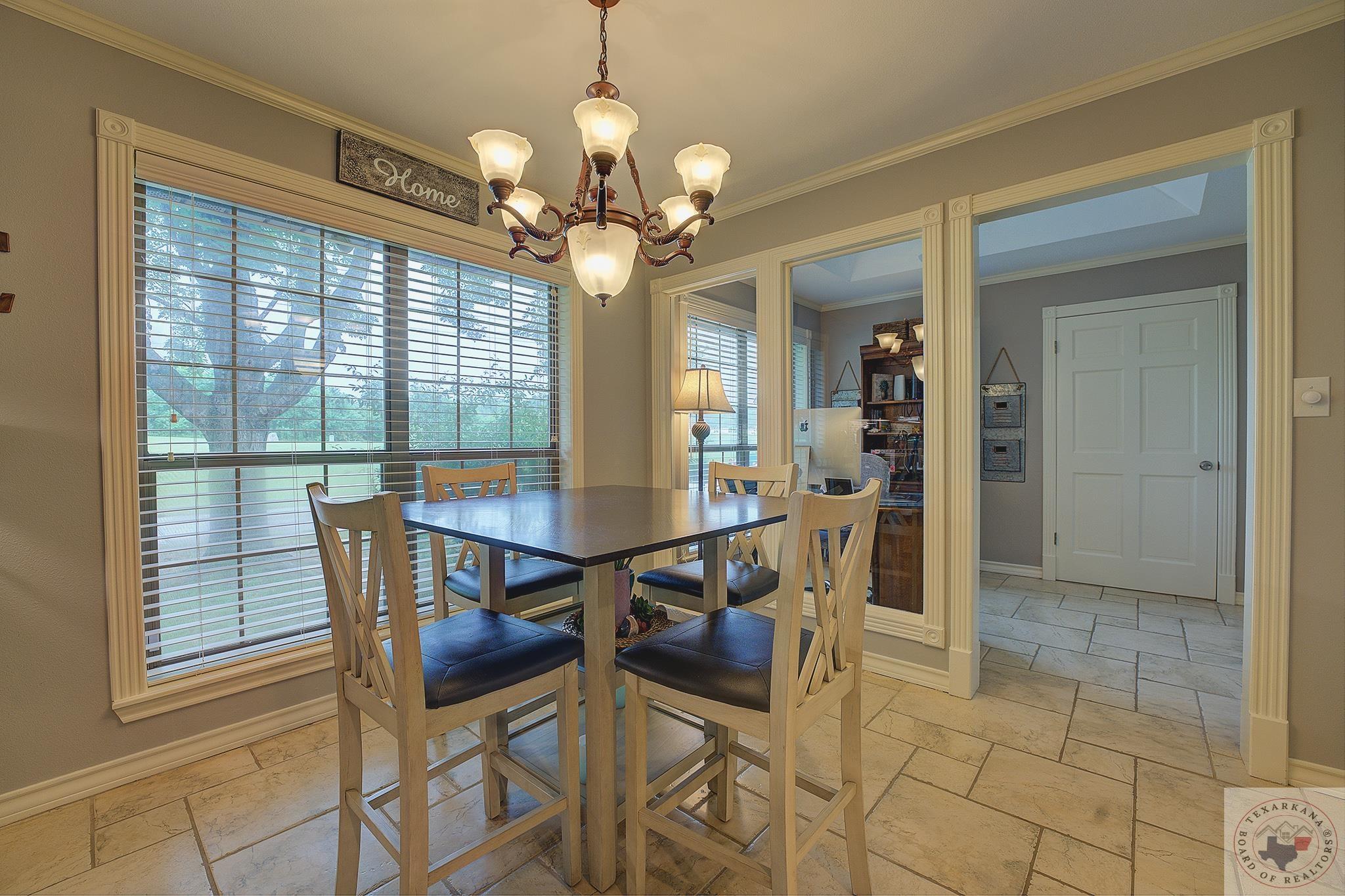 Dreaming of waterfront living? This home boasts two serene lakes flanking each side with an overflow dam. Nestled in a picturesque neighborhood known for its stunning lakefront properties, this abode is the epitome of a tranquil retreat just beyond the city limits. Relax knowing it's equipped with a whole-house generator and a new hail-resistant roof. The kitchen shines with exquisite quartz countertops and top-of-the-line Kitchen Aid stainless steel appliances. Enjoy the reliability of natural gas, Swepco power, and a well water filtration system. Outdoors, a 20 x 36 pool with a new liner awaits within a wrought iron fence, complemented by a deck with a vaulted ceiling, perfect for alfresco gatherings. Explore the two fireplaces, both can convert to wood burning, currently both are gas logs. Discover two distinct living areas - one formal, the other evoking a mountain retreat. A spacious garage with built-in cabinets and a climate-controlled storage room provide ample space. The detached garage also has a carport which blocks the pool from your neighbors, this is a very private back porch. Bask in the natural light of the office just off the Breakfast area, with window walls and featuring a skylight. Intrigued? Prepare to be enchanted the moment you step inside. New Roof in 24 and house Generator connected in 2022, HVAC is 7 years old.
