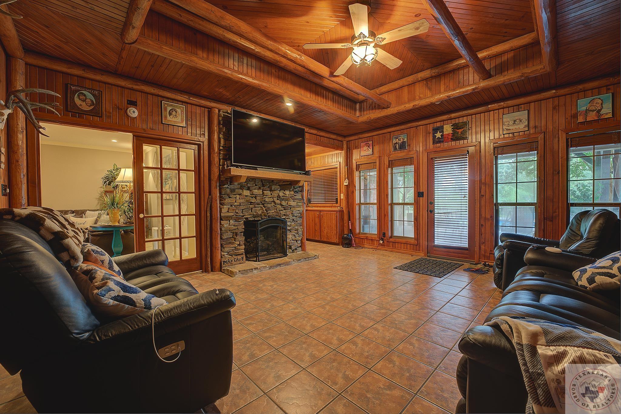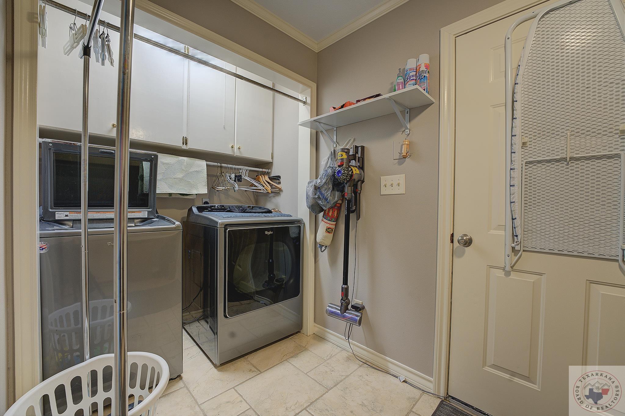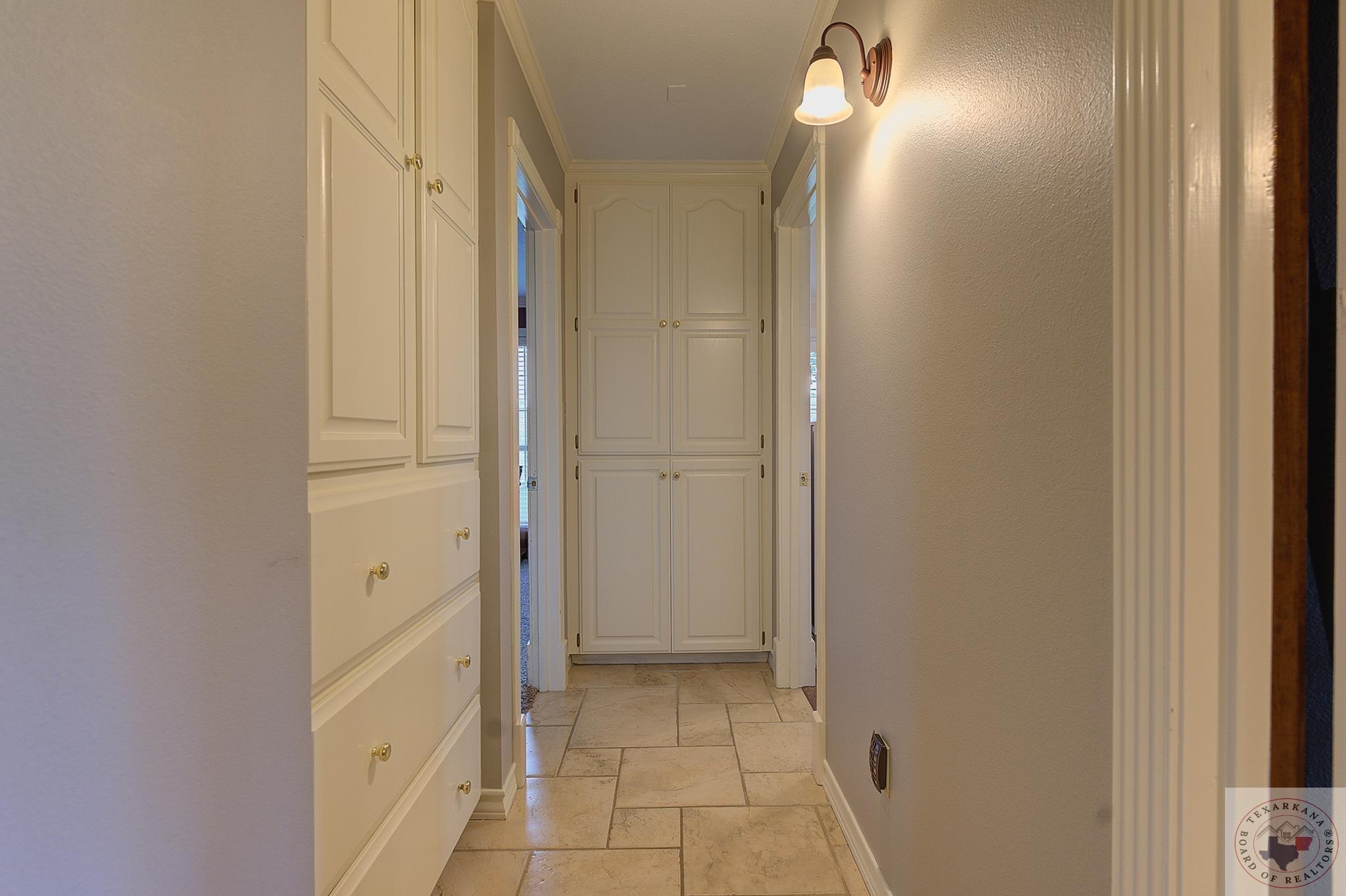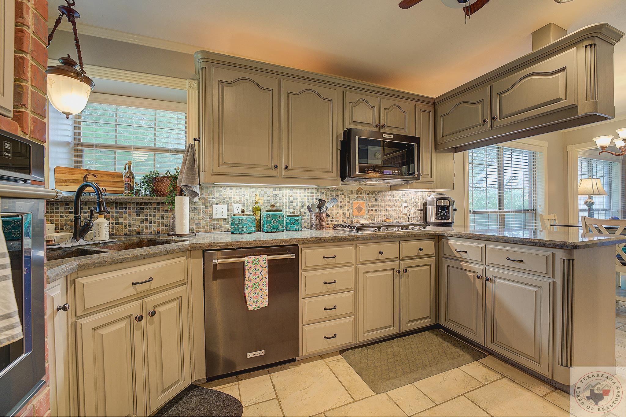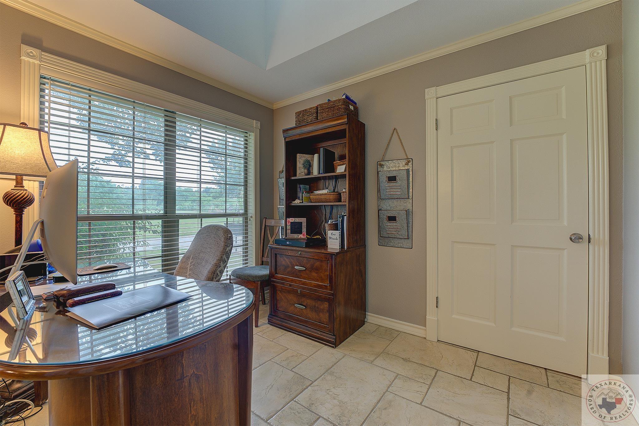 Dreaming of waterfront living? This home boasts two serene lakes flanking each side with an overflow dam. Nestled in a picturesque neighborhood known for its stunning lakefront properties, this abode is the epitome of a tranquil retreat just beyond the city limits. Relax knowing it's equipped with a whole-house generator and a new hail-resistant roof. The kitchen shines with exquisite quartz countertops and top-of-the-line Kitchen Aid stainless steel appliances. Enjoy the reliability of natural gas, Swepco power, and a well water filtration system. Outdoors, a 20 x 36 pool with a new liner awaits within a wrought iron fence, complemented by a deck with a vaulted ceiling, perfect for alfresco gatherings. Explore the two fireplaces, both can convert to wood burning, currently both are gas logs. Discover two distinct living areas - one formal, the other evoking a mountain retreat. A spacious garage with built-in cabinets and a climate-controlled storage room provide ample space. The detached garage also has a carport which blocks the pool from your neighbors, this is a very private back porch. Bask in the natural light of the office just off the Breakfast area, with window walls and featuring a skylight. Intrigued? Prepare to be enchanted the moment you step inside. New Roof in 24 and house Generator connected in 2022, HVAC is 7 years old.