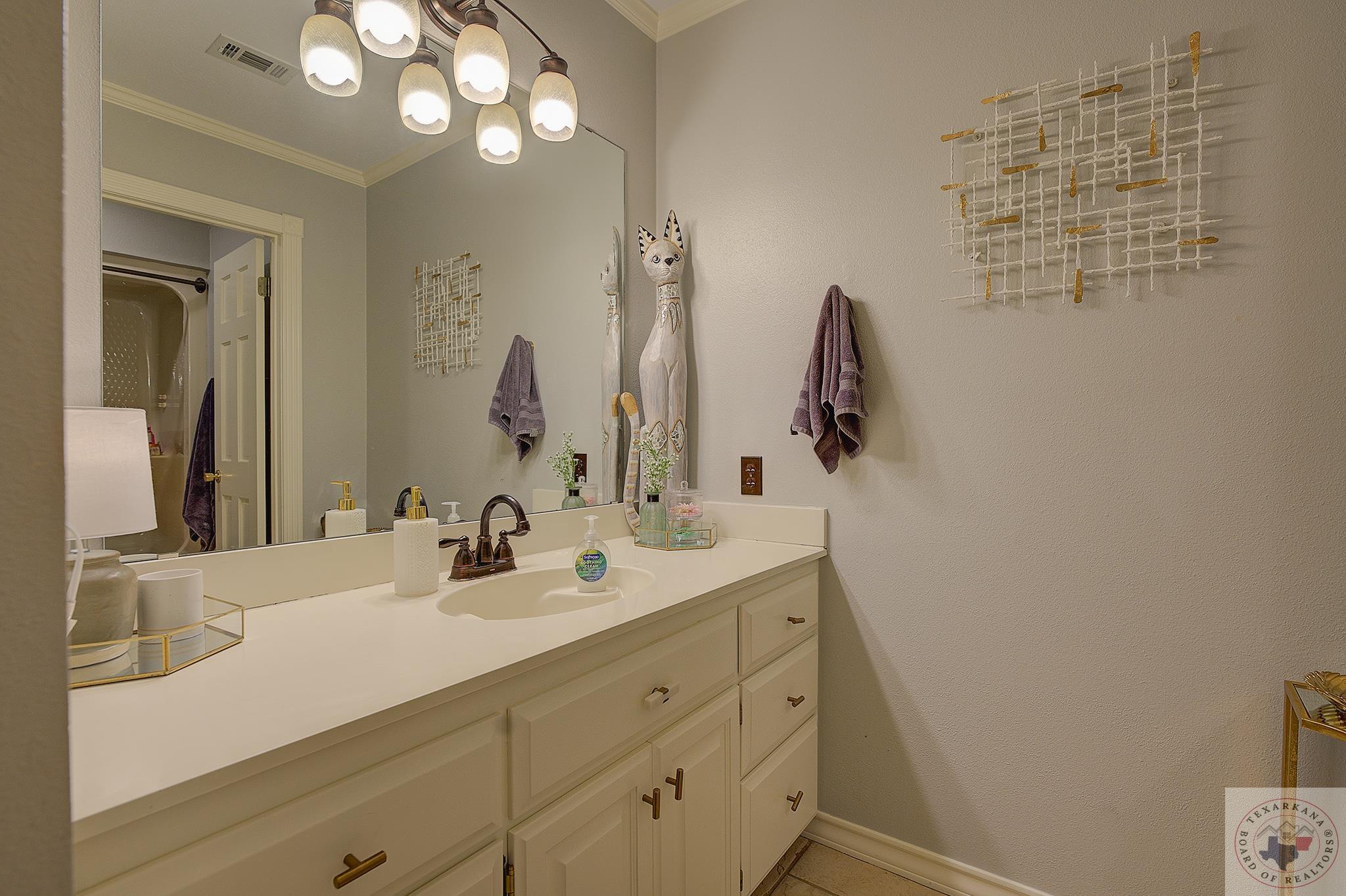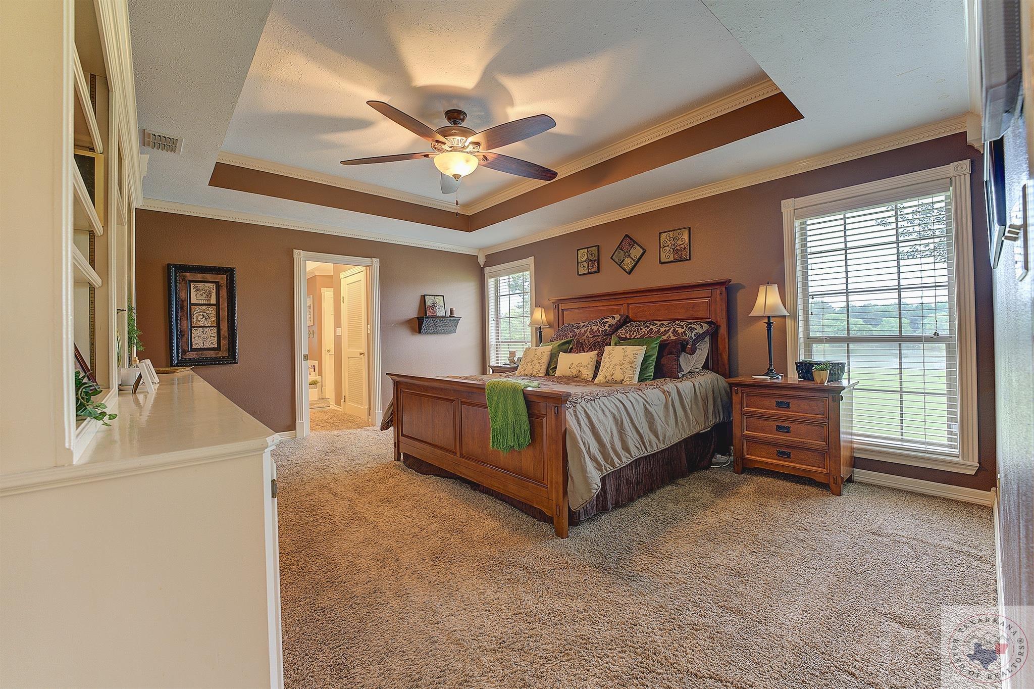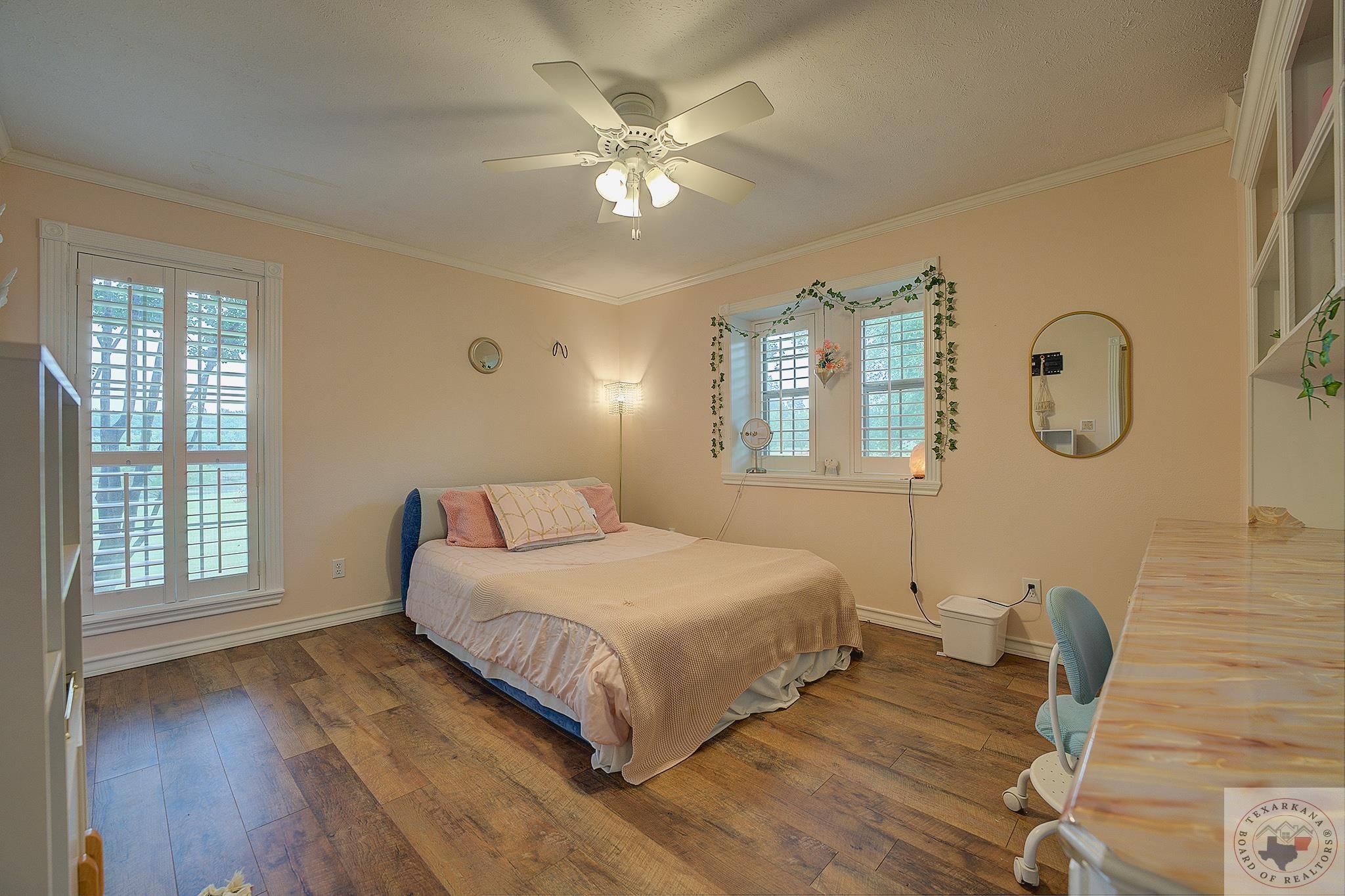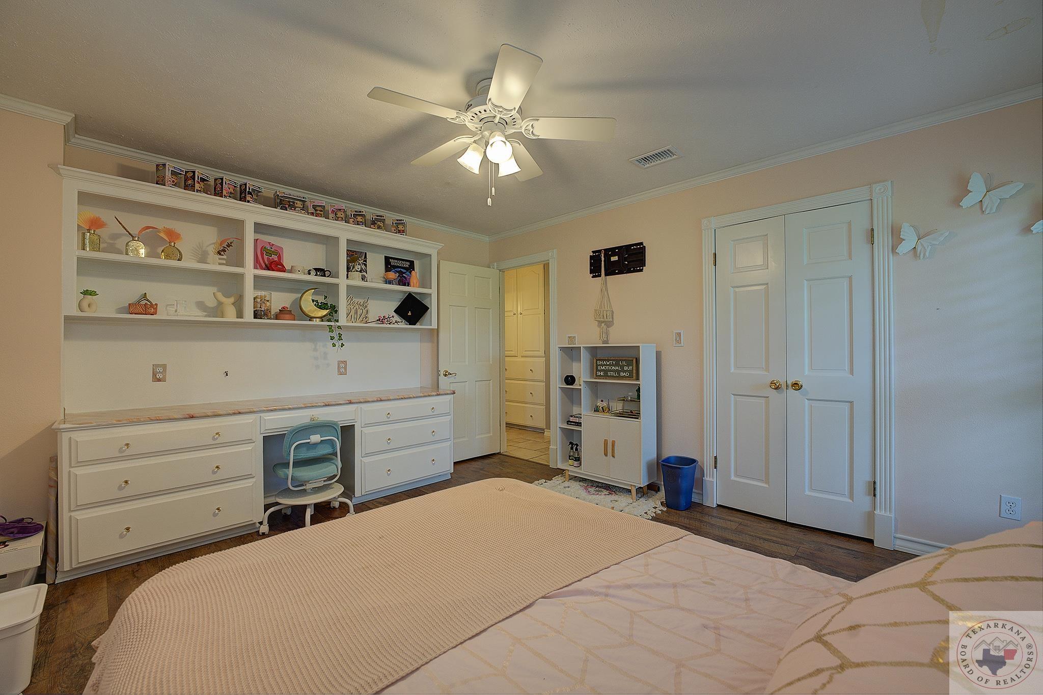 Dreaming of waterfront living? This home boasts two serene lakes flanking each side with an overflow dam. Nestled in a picturesque neighborhood known for its stunning lakefront properties, this abode is the epitome of a tranquil retreat just beyond the city limits. Relax knowing it's equipped with a whole-house generator and a new hail-resistant roof. The kitchen shines with exquisite quartz countertops and top-of-the-line Kitchen Aid stainless steel appliances. Enjoy the reliability of natural gas, Swepco power, and a well water filtration system. Outdoors, a 20 x 36 pool with a new liner awaits within a wrought iron fence, complemented by a deck with a vaulted ceiling, perfect for alfresco gatherings. Explore the two fireplaces, both can convert to wood burning, currently both are gas logs. Discover two distinct living areas - one formal, the other evoking a mountain retreat. A spacious garage with built-in cabinets and a climate-controlled storage room provide ample space. The detached garage also has a carport which blocks the pool from your neighbors, this is a very private back porch. Bask in the natural light of the office just off the Breakfast area, with window walls and featuring a skylight. Intrigued? Prepare to be enchanted the moment you step inside. New Roof in 24 and house Generator connected in 2022, HVAC is 7 years old.