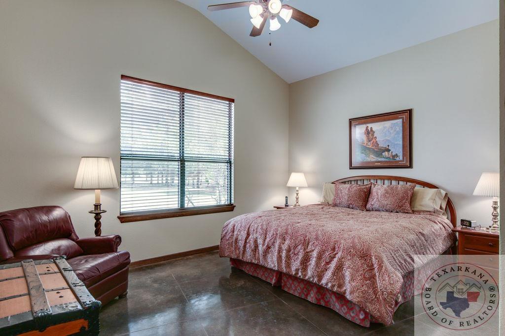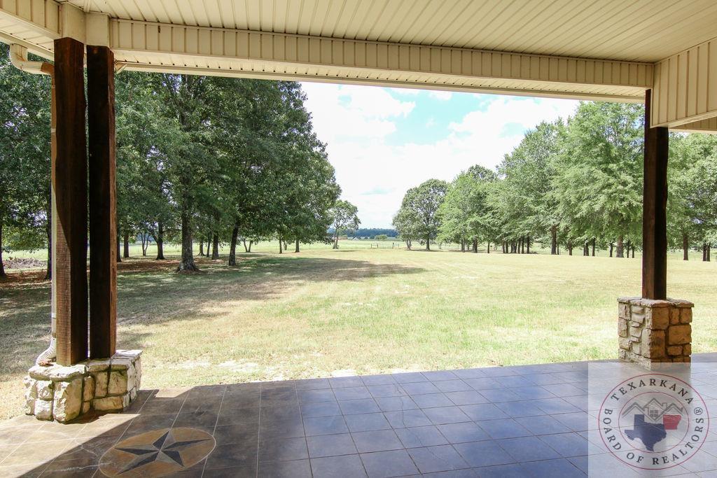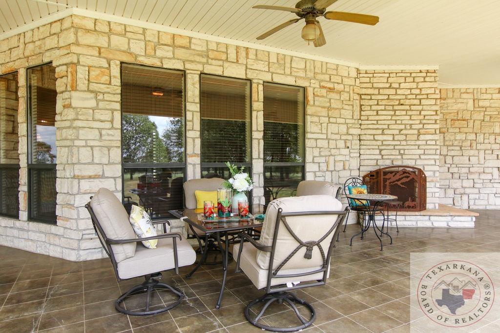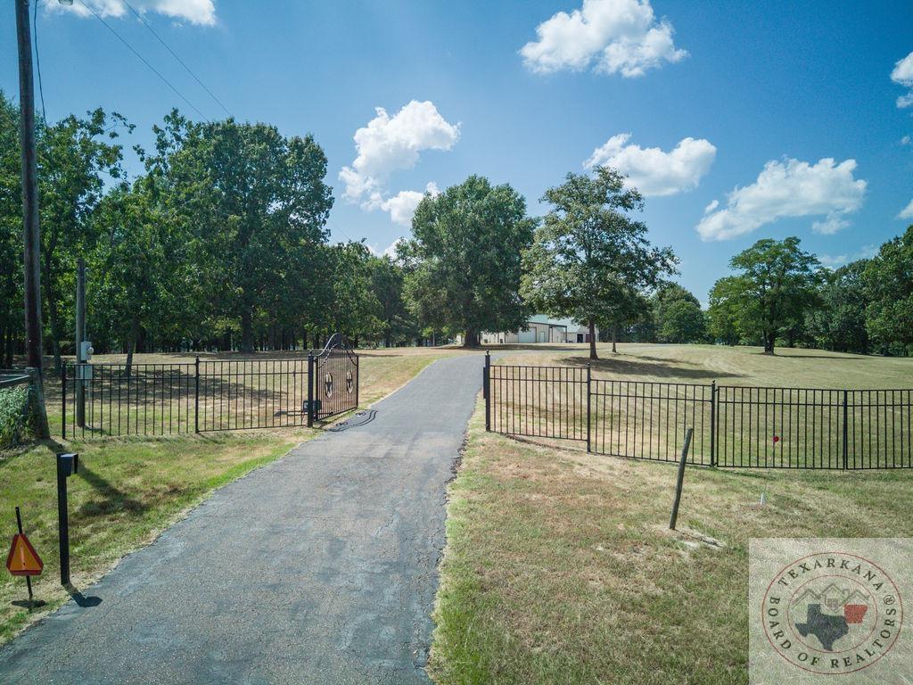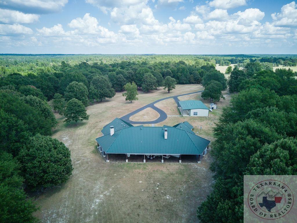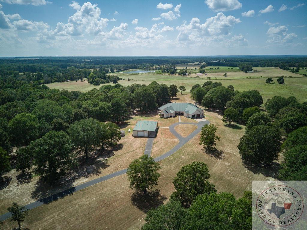 Experience the charm of Texas in this unique property featuring Texas White Limestone. With its soaring ceilings, warm pecan finishes, and scored concrete floors throughout, this home offers a touch of elegance. The envy of your neighbors, the property boasts a 730-foot well providing the best-tasting water in town. Step inside to discover porcelain fixtures that appear brand new, a testament to their impeccable condition. Custom-built with west-facing porches, you can savor captivating sunsets each evening. The solid steel roof not only keeps your home dry but also helps lower insurance premiums. Perfect for equestrian enthusiasts or other projects, this property is ideally situated near Lake of the Pines and Wright Patman for those who enjoy fishing. With low maintenance in mind, sidewalks encircle the entire house. And let's not forget the amazing kitchenGa haven that invites you to unleash your culinary creativity. It boasts a huge Sub Zero-like stainless refrigerator/freezer and a Thermador dual fuel range with electric convection oven. Designed for effortless entertaining, the property features quartz countertops that beautifully complement the soft pecan stain on the cabinets. The cabinets themselves showcase a modified shaker style without any hardware. The property also offers a well-insulated shop, perfect for safeguarding equipment. Additionally, you'll find a 900 sq ft living quarters within the shop. This space features a kitchen, laundry area, bedroom, spacious closet, and an open living area, all exuding the same level of quality as the main house.