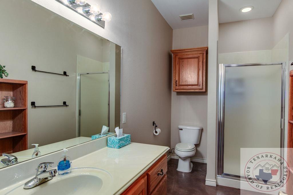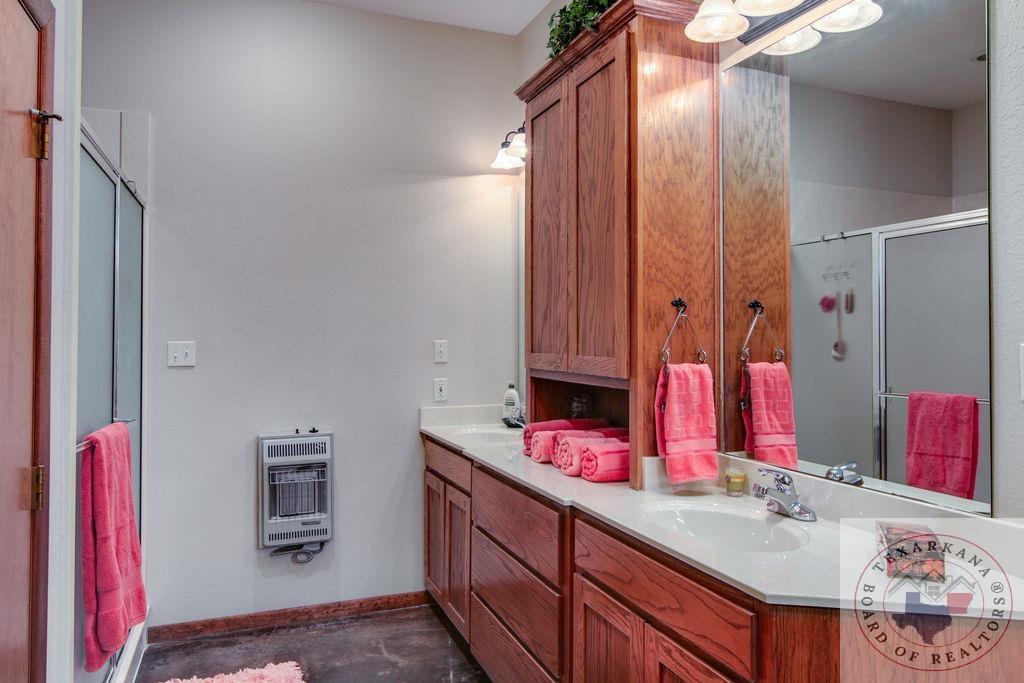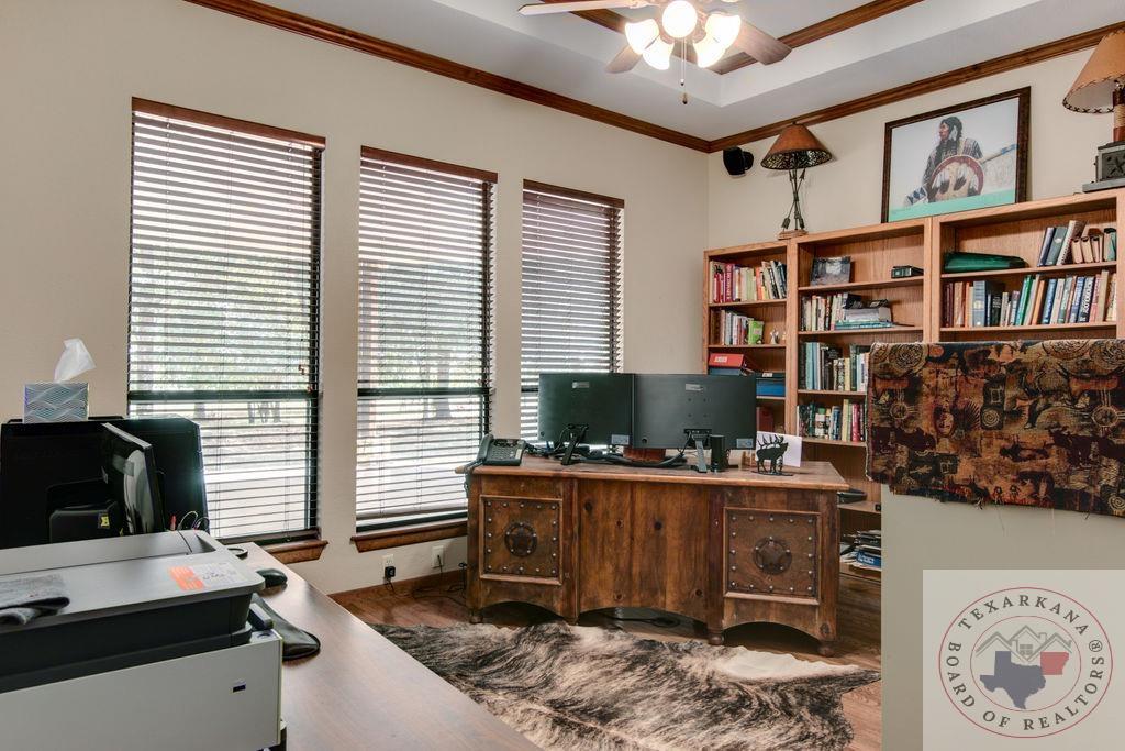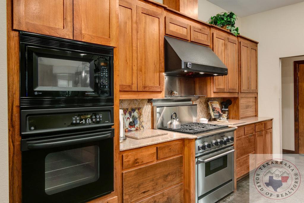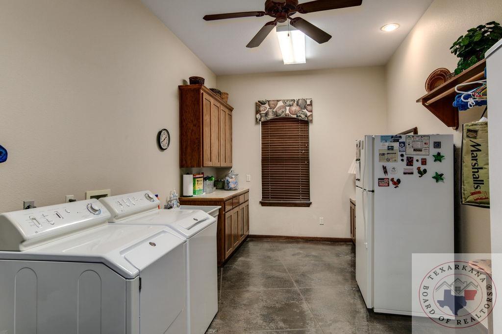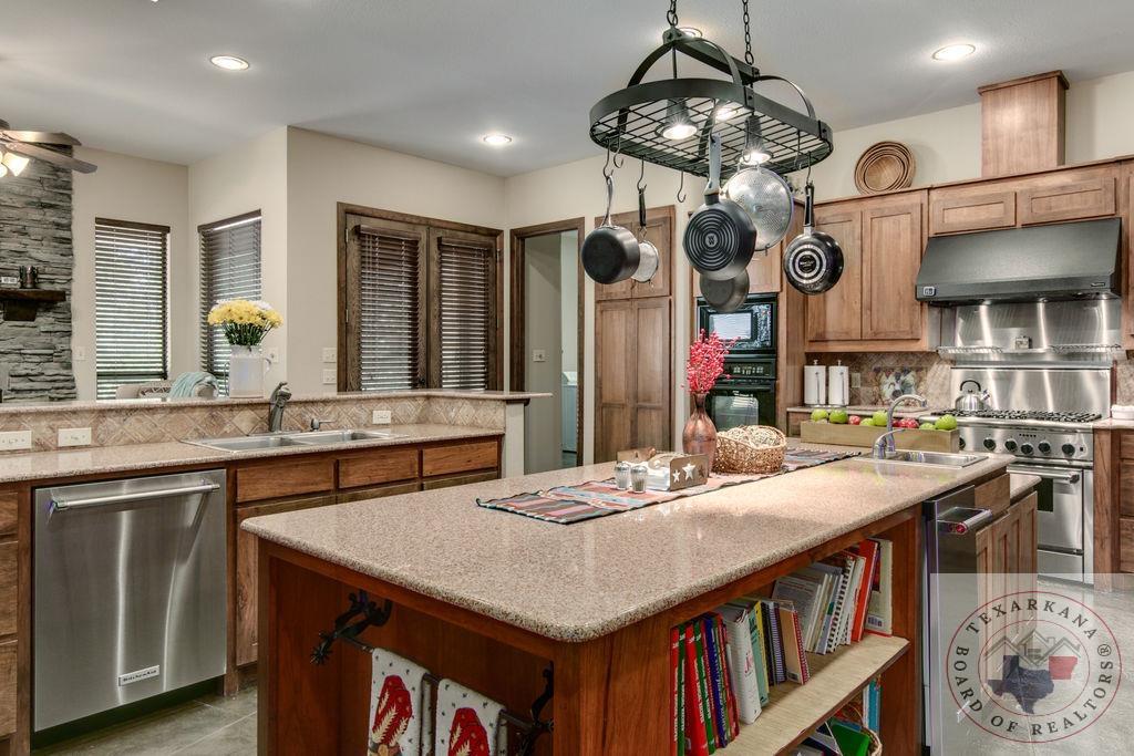 Experience the charm of Texas in this unique property featuring Texas White Limestone. With its soaring ceilings, warm pecan finishes, and scored concrete floors throughout, this home offers a touch of elegance. The envy of your neighbors, the property boasts a 730-foot well providing the best-tasting water in town. Step inside to discover porcelain fixtures that appear brand new, a testament to their impeccable condition. Custom-built with west-facing porches, you can savor captivating sunsets each evening. The solid steel roof not only keeps your home dry but also helps lower insurance premiums. Perfect for equestrian enthusiasts or other projects, this property is ideally situated near Lake of the Pines and Wright Patman for those who enjoy fishing. With low maintenance in mind, sidewalks encircle the entire house. And let's not forget the amazing kitchenGa haven that invites you to unleash your culinary creativity. It boasts a huge Sub Zero-like stainless refrigerator/freezer and a Thermador dual fuel range with electric convection oven. Designed for effortless entertaining, the property features quartz countertops that beautifully complement the soft pecan stain on the cabinets. The cabinets themselves showcase a modified shaker style without any hardware. The property also offers a well-insulated shop, perfect for safeguarding equipment. Additionally, you'll find a 900 sq ft living quarters within the shop. This space features a kitchen, laundry area, bedroom, spacious closet, and an open living area, all exuding the same level of quality as the main house.