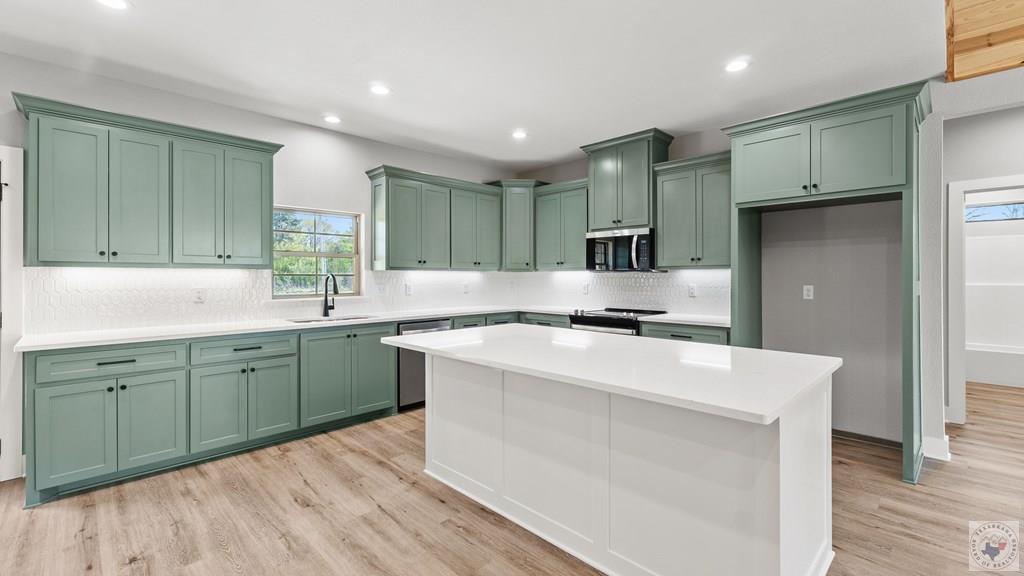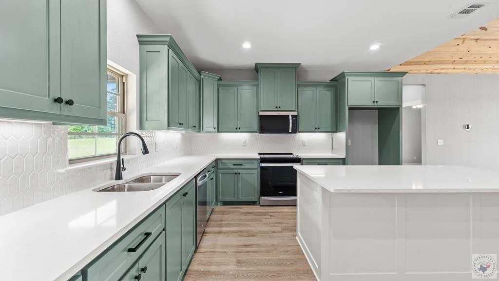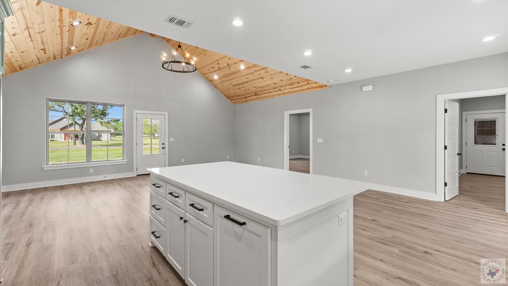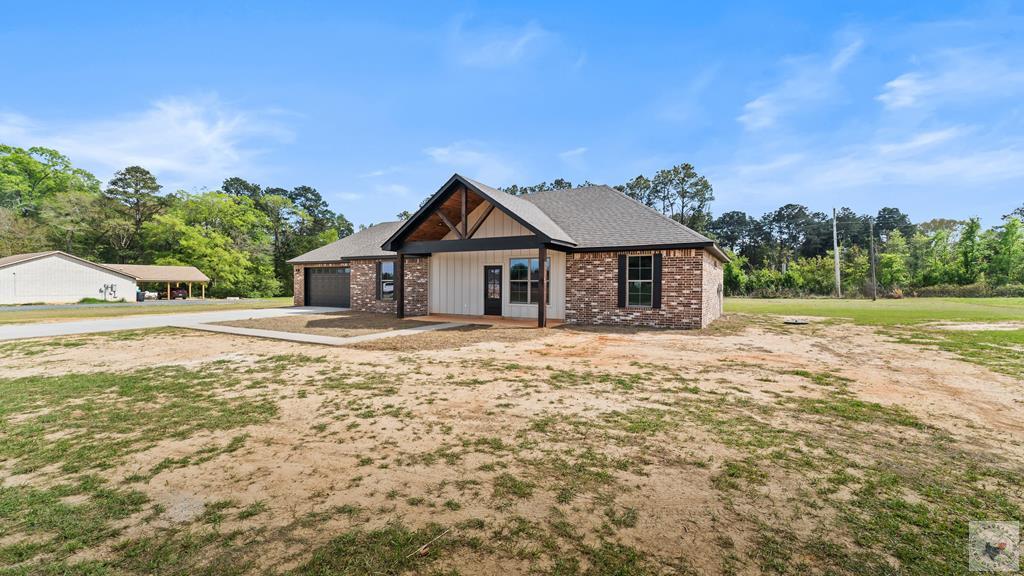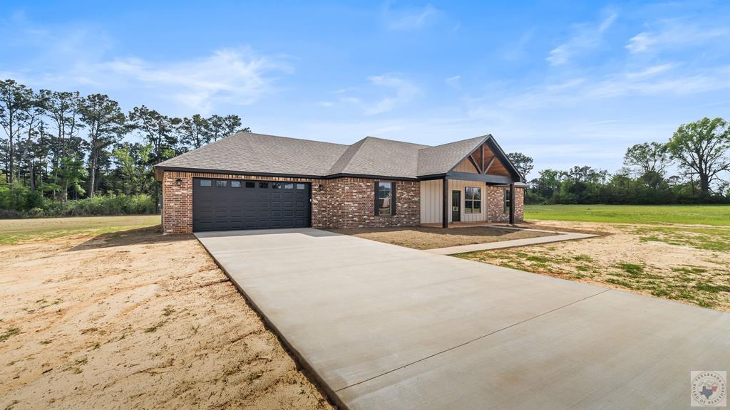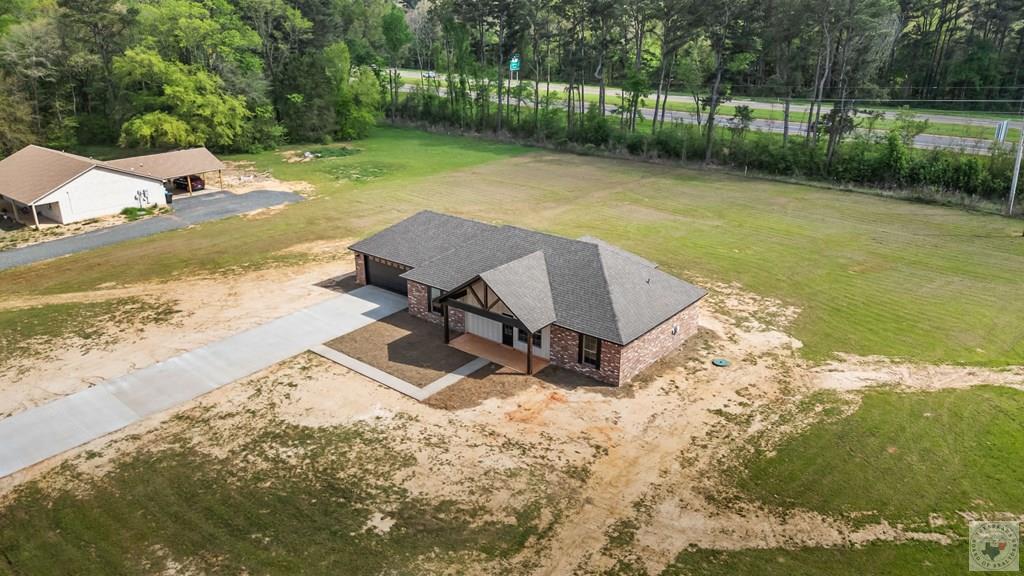 Looking for a new construction home, close to Texarkana, but nestled in the country? This could be the one, 99% complete, just adding the finishing touches. The open arrangement has a cozy layout with lots of storage in the kitchen, where it counts, and with vaulted ceilings and beautifully appointed front porch you will find you are drawn to see more. Contrasting color on the kitchen cabinets, adds dimension and beauty, and with gleaming quartz you can not go wrong, as it is easiest surface to maintain. Check out the Vaulted ceiling in the family room with a beautiful round candlelight fixture, additionally there is recessed lighting to use when you need more detail lighting. This is a split plan with the primary and garage on one side and 2 more spacious bedrooms on the other. The Primary bath has beautiful quartz and a transom window to allow natural light into the bath, you will find that keeps electric bill lower. This home has Foam insulation throughout so there is no noise inside the home. Garage is large and will accommodate the longer vehicles. The front porch is great for relaxing in the evening. Plenty of Room for a Large Shop or pool. This is Leary School district with lower taxes, however it has a Hooks Address for mail. The Driveway is extra wide to allow more parking. Check us out.