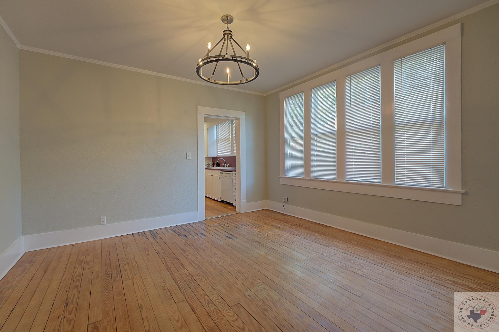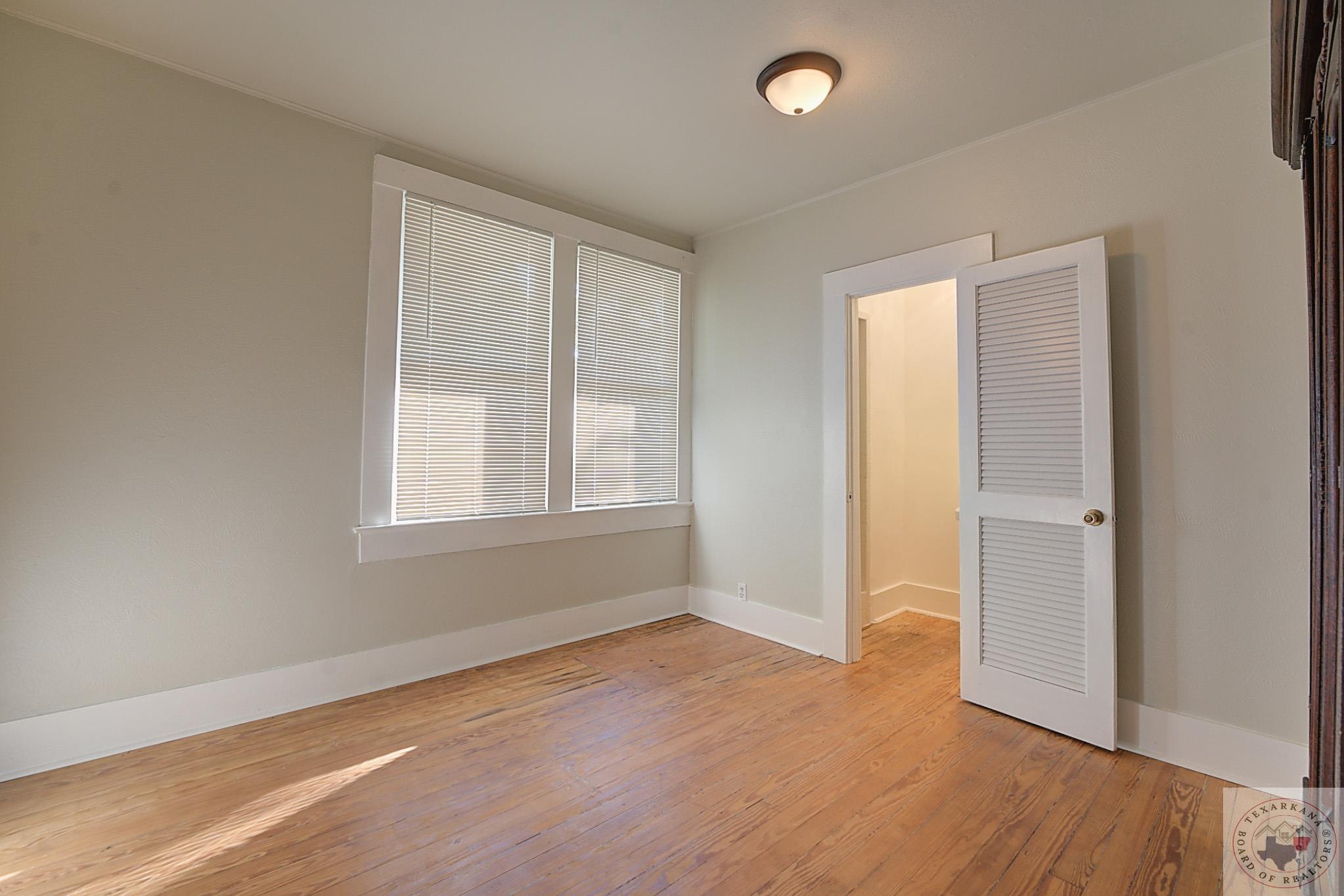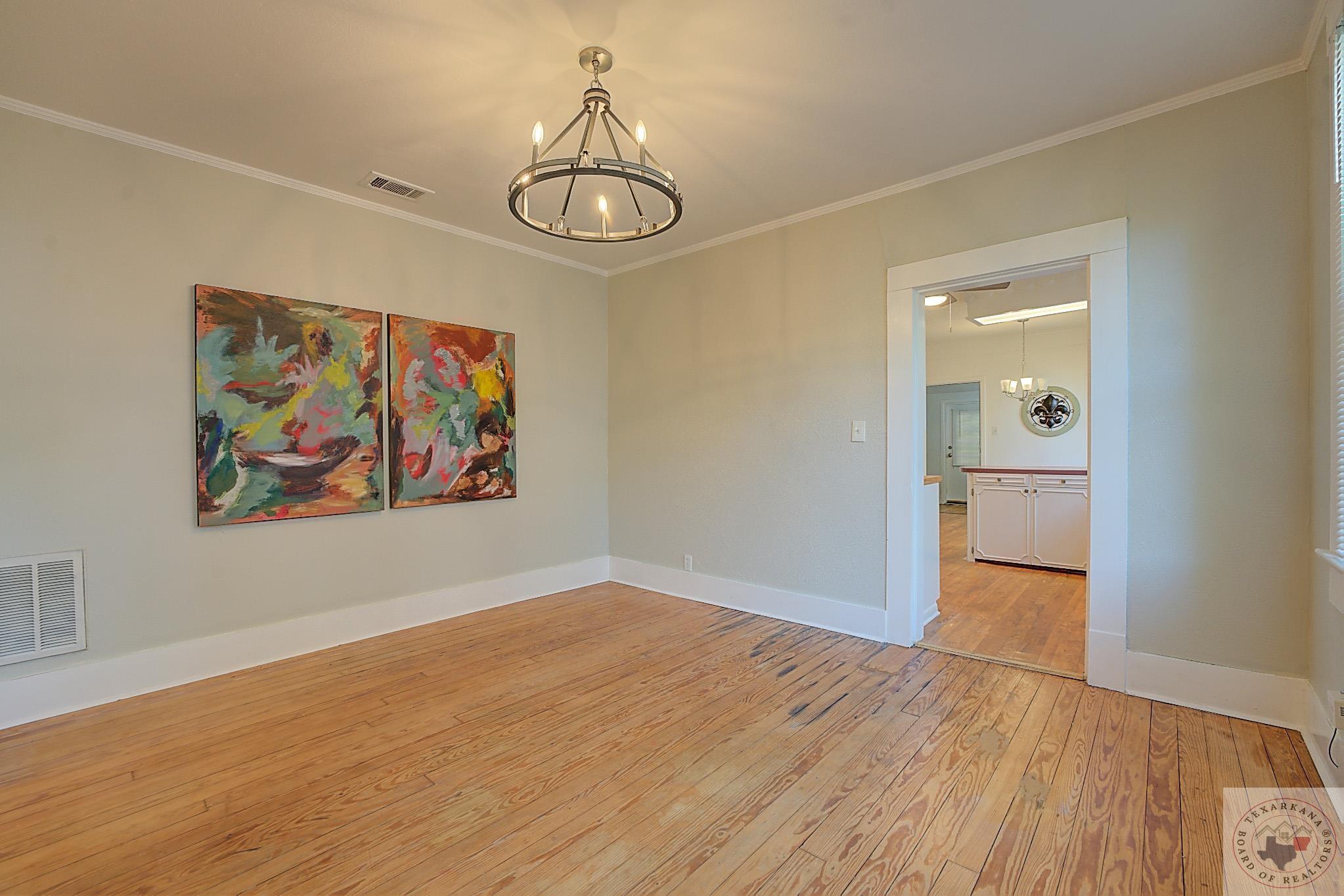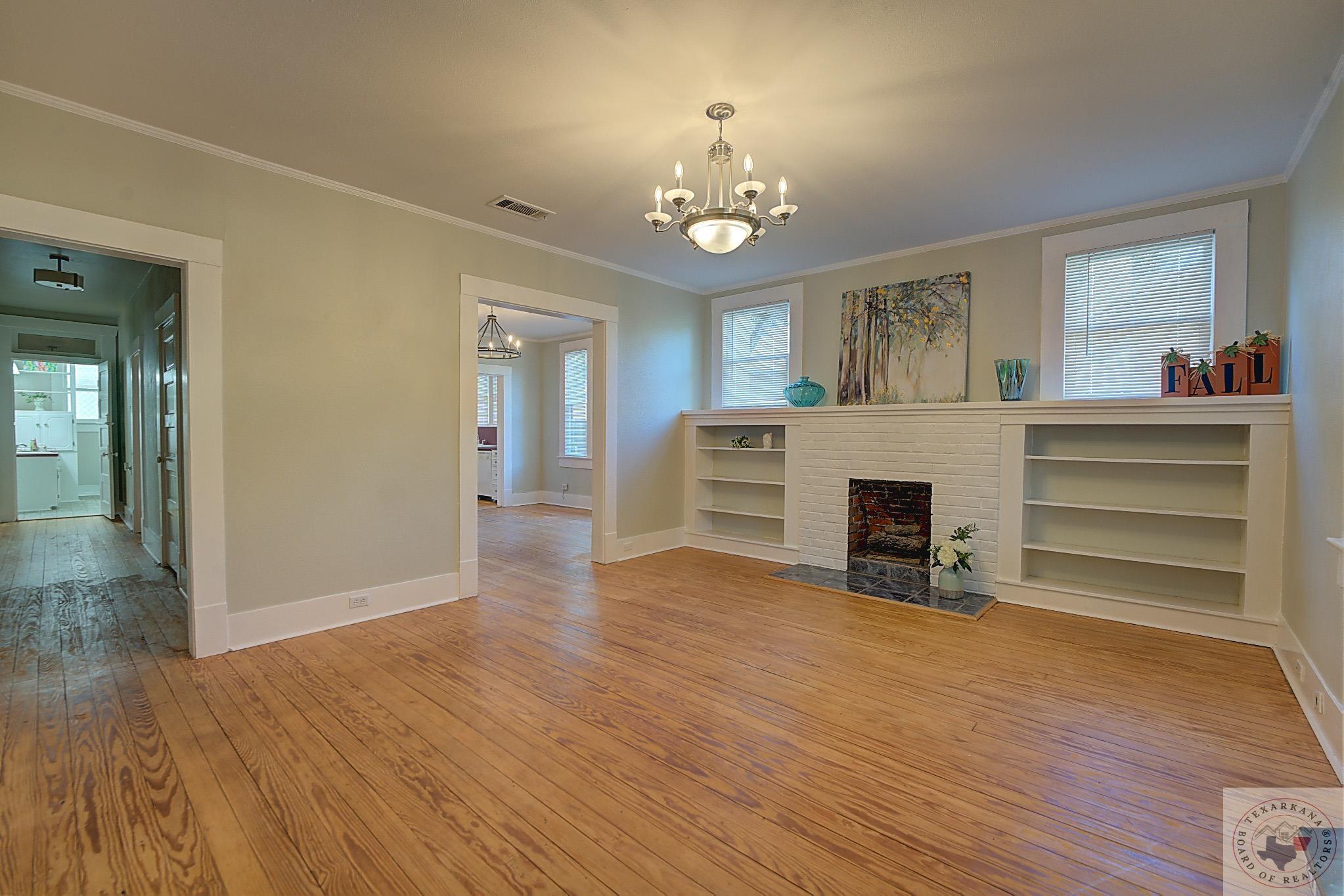 Discover the perfect craftsman-style home you've been searching for. This charming residence offers a simple yet elegant layout with solid wood floors as a standout feature. The painted white brick exterior aligns with current trends, and the inviting covered front porch adds practicality and charm. The living area centers around a beautiful fireplace, complemented by built-in shelves. The formal dining room, bathed in natural light from its large windows, can be easily transformed into a home office. The cozy breakfast nook features a built-in hutch, providing ample storage for extra dishes and a buffet area for entertaining guests. A separate laundry room ensures peace and quiet by containing noise. Relax in the bathroom with its vintage soaker tub, natural light, and shelving for all your beauty essentials. The home also includes an attic, offering space for expansion or secure storage for your belongings. The ensuite master, complete with a private shower, guarantees comfort and privacy. Ideal as a starter home or for downsizing couples, this property is situated in the historic district of Texarkana. The neighborhood is undergoing a rejuvenation, with many homes being upgraded, blending the timeless beauty of the past with fresh, modern aesthetics. Come and see for yourself!