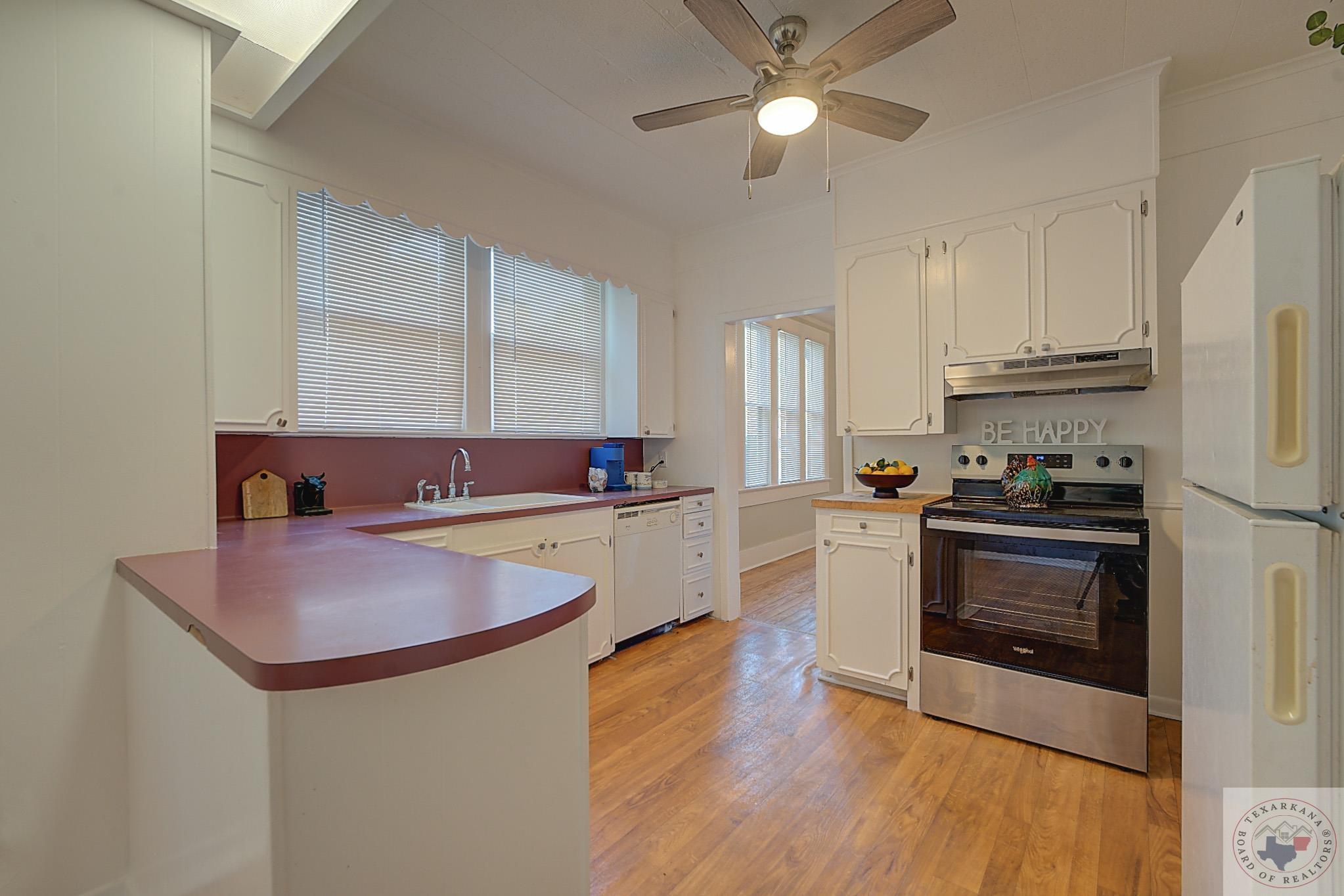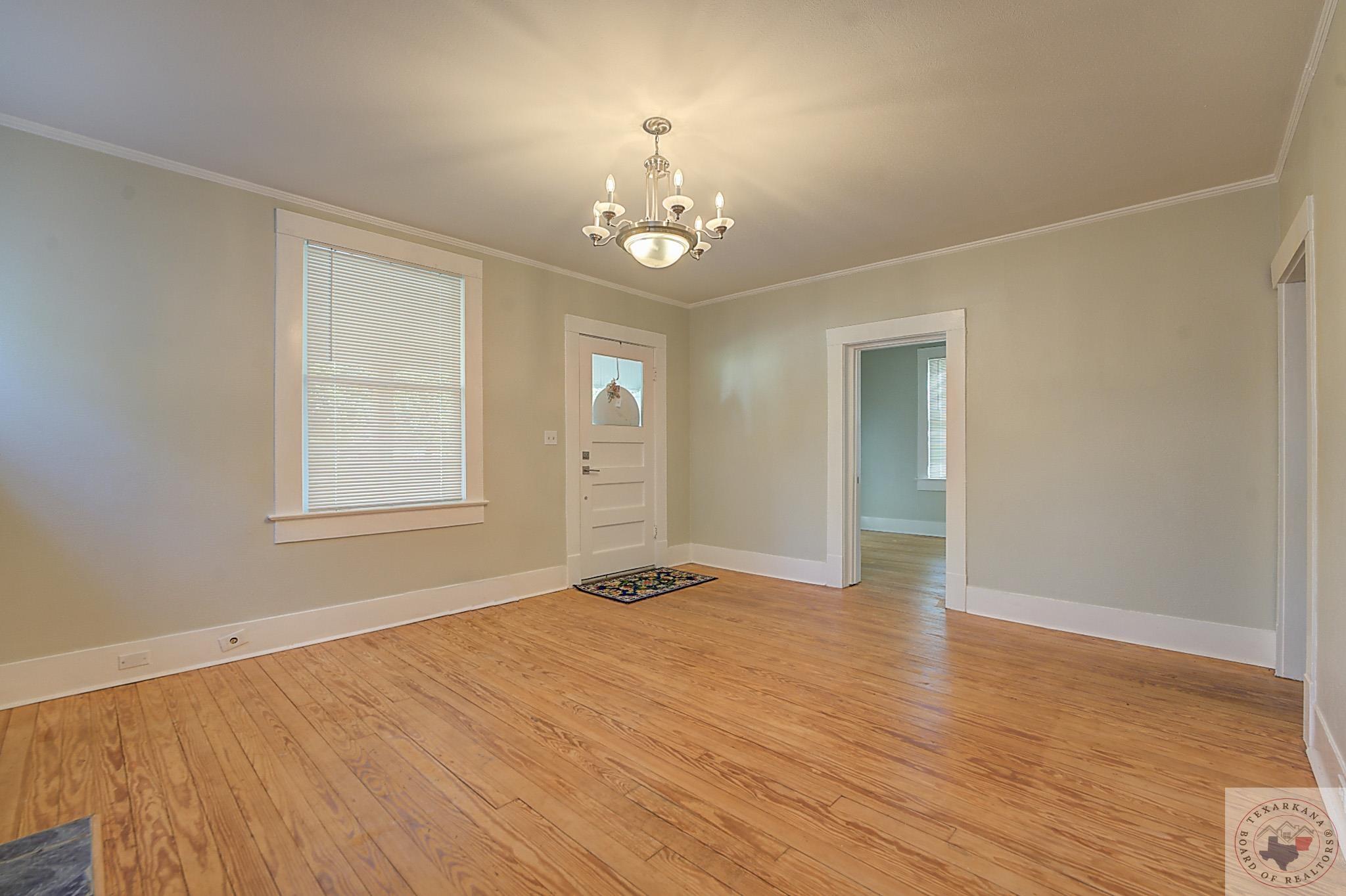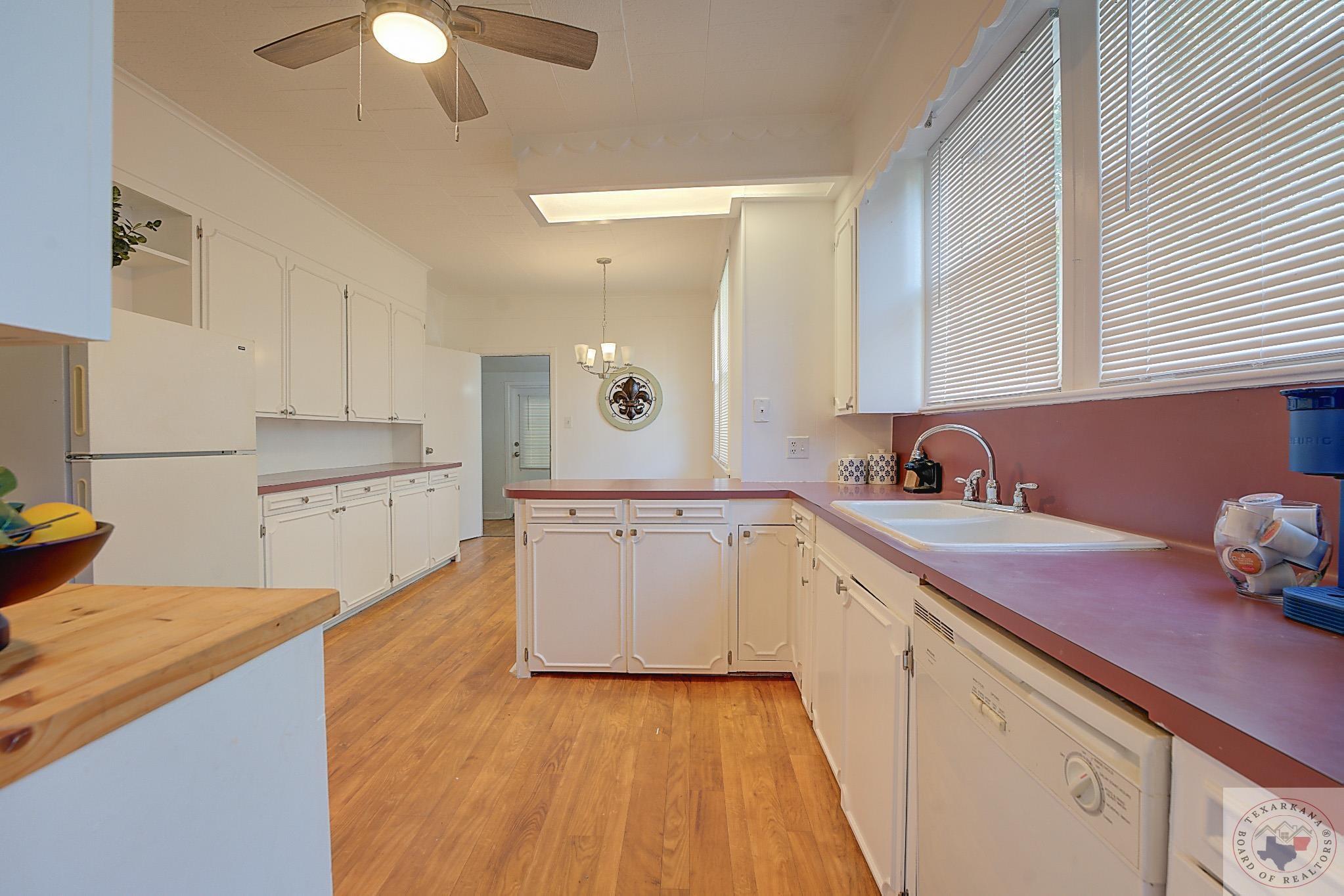 Discover the perfect craftsman-style home you've been searching for. This charming residence offers a simple yet elegant layout with solid wood floors as a standout feature. The painted white brick exterior aligns with current trends, and the inviting covered front porch adds practicality and charm. The living area centers around a beautiful fireplace, complemented by built-in shelves. The formal dining room, bathed in natural light from its large windows, can be easily transformed into a home office. The cozy breakfast nook features a built-in hutch, providing ample storage for extra dishes and a buffet area for entertaining guests. A separate laundry room ensures peace and quiet by containing noise. Relax in the bathroom with its vintage soaker tub, natural light, and shelving for all your beauty essentials. The home also includes an attic, offering space for expansion or secure storage for your belongings. The ensuite master, complete with a private shower, guarantees comfort and privacy. Ideal as a starter home or for downsizing couples, this property is situated in the historic district of Texarkana. The neighborhood is undergoing a rejuvenation, with many homes being upgraded, blending the timeless beauty of the past with fresh, modern aesthetics. Come and see for yourself!