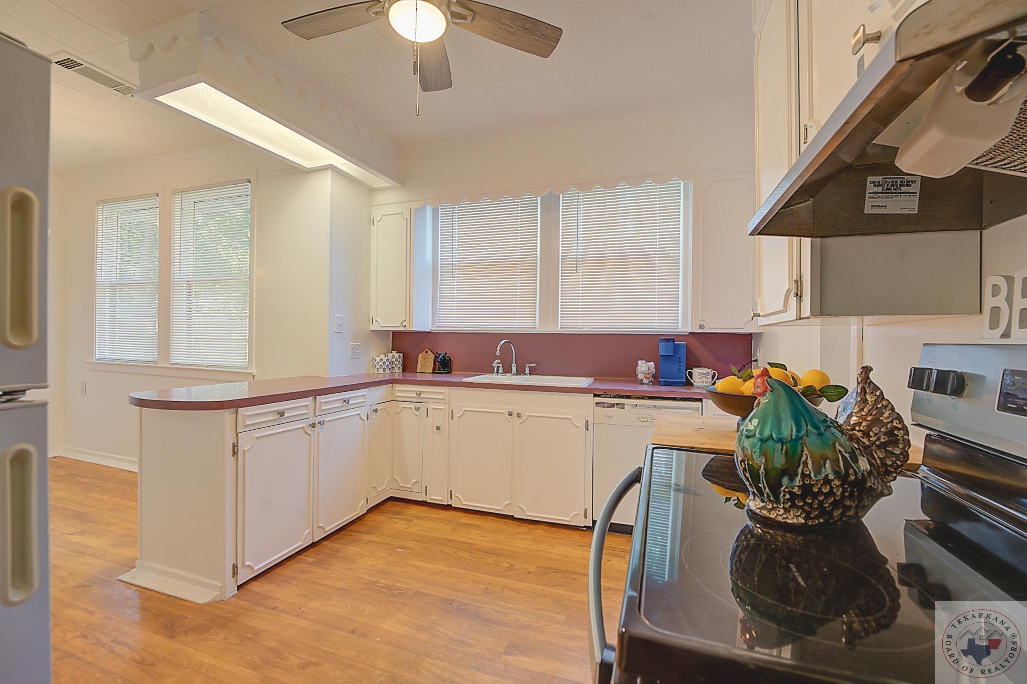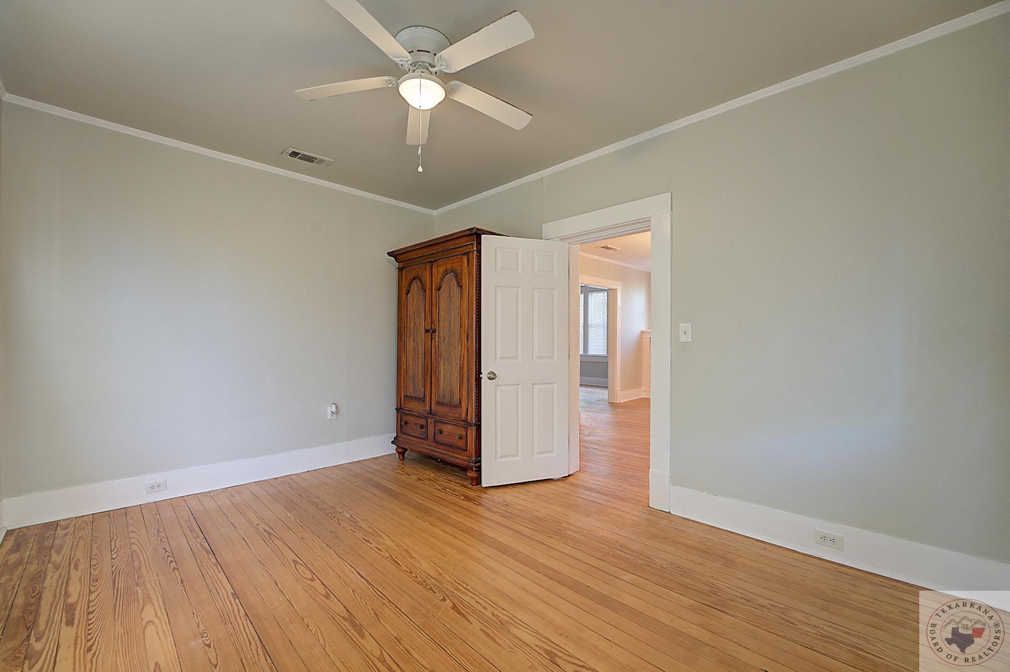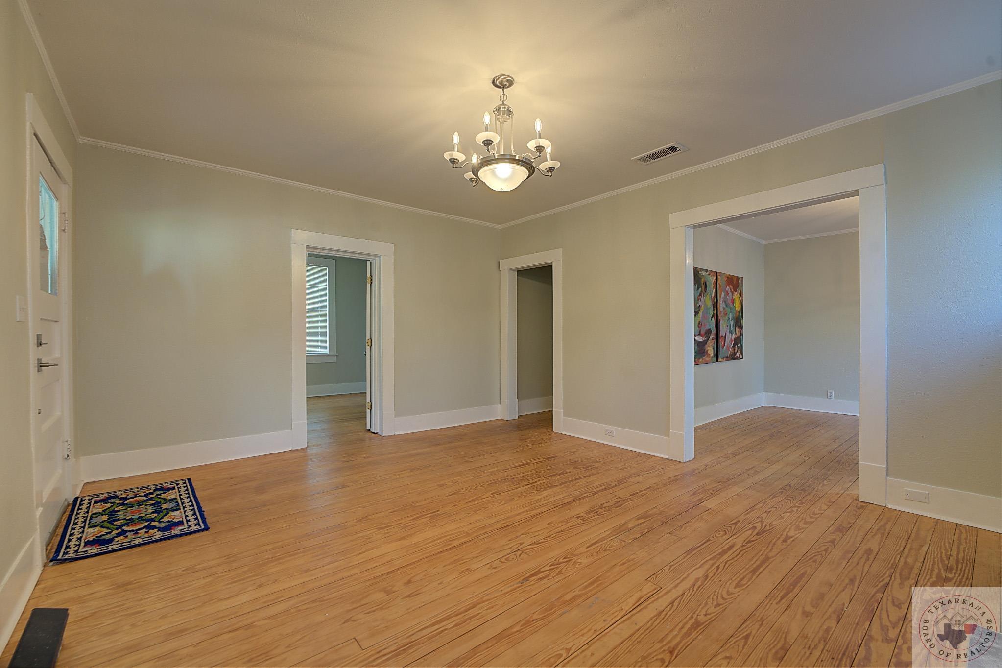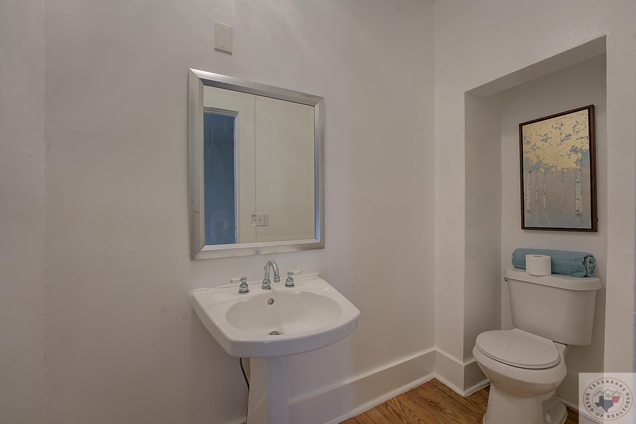 Discover the perfect craftsman-style home you've been searching for. This charming residence offers a simple yet elegant layout with solid wood floors as a standout feature. The painted white brick exterior aligns with current trends, and the inviting covered front porch adds practicality and charm. The living area centers around a beautiful fireplace, complemented by built-in shelves. The formal dining room, bathed in natural light from its large windows, can be easily transformed into a home office. The cozy breakfast nook features a built-in hutch, providing ample storage for extra dishes and a buffet area for entertaining guests. A separate laundry room ensures peace and quiet by containing noise. Relax in the bathroom with its vintage soaker tub, natural light, and shelving for all your beauty essentials. The home also includes an attic, offering space for expansion or secure storage for your belongings. The ensuite master, complete with a private shower, guarantees comfort and privacy. Ideal as a starter home or for downsizing couples, this property is situated in the historic district of Texarkana. The neighborhood is undergoing a rejuvenation, with many homes being upgraded, blending the timeless beauty of the past with fresh, modern aesthetics. Come and see for yourself!