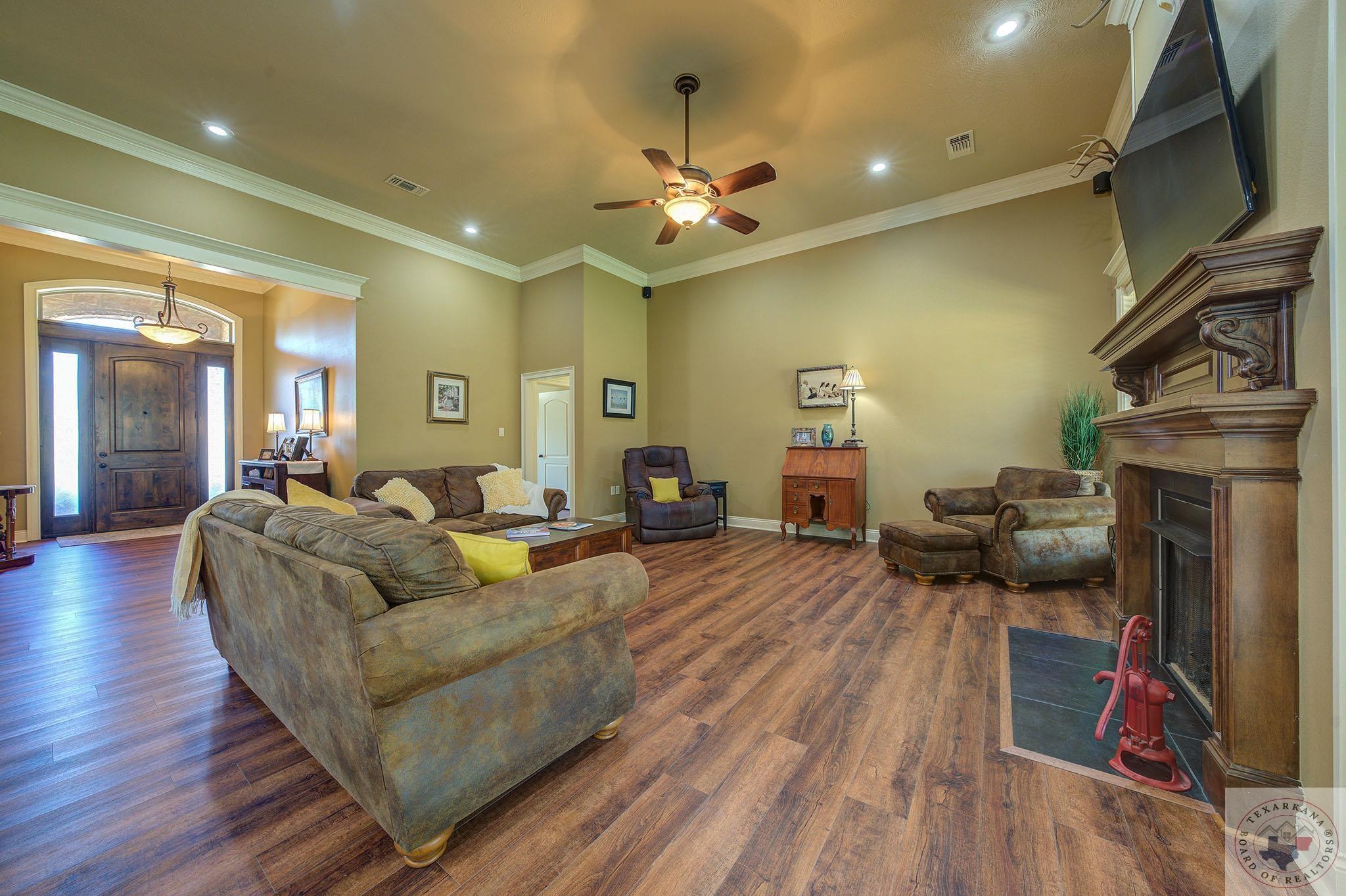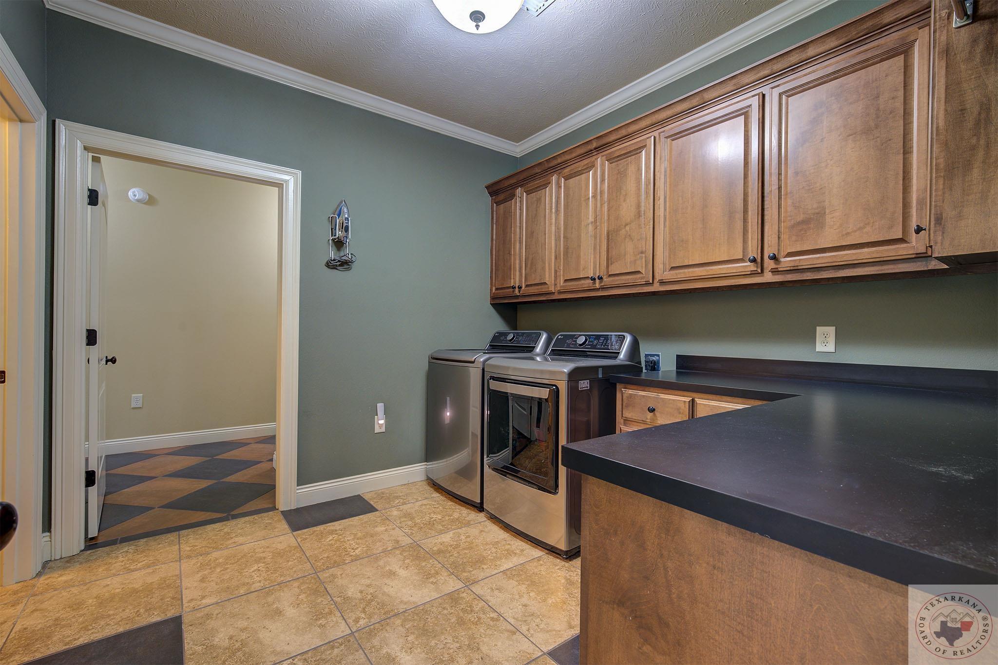 Explore this Classic Dallas-style home with stunning finishes throughout. Features include luxurious crown molding, a spacious wrap-around laundry connected to the Master Suite, and an XL kitchen with an elevated bar area for up to 6 people. The exterior boasts inviting rockwork, perfectly maintained lawns, and ample space for a shop or additional garage. The newer 8 ft high fencing adds privacy and frames the entire property. Inside, discover new luxury vinyl flooring throughout most of the home, complemented by distinctive 18-inch tile flooring in the Kitchen, Dining Area, and Hallway to Laundry. A tucked-in office in the Laundry and 4 spacious bedrooms offer functionality. Enjoy the high ceilings and abundant natural light filtering through tall windows. This low-maintenance home features a new HVAC system, a new mini-split for the upstairs game room, and a roof less than 5 years old. Top-of-the-line Maytag appliances grace the kitchen, complete with a corner pantry and ample cabinet storage. The Master Bath arrangement includes Bridge Lighting over the Vanity, a large tile shower, and dual closets with multiple compartments. Additional highlights include a Cedar closet in the Garage, Plantation Shutters on the Front of the Home, a Tool room with an enclosed work area for your hobbies. Situated in a cul-de-sac in a serene neighborhood., this one is just what you have been seeking.