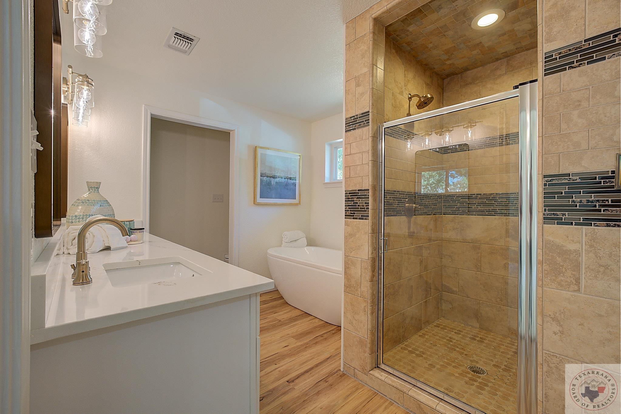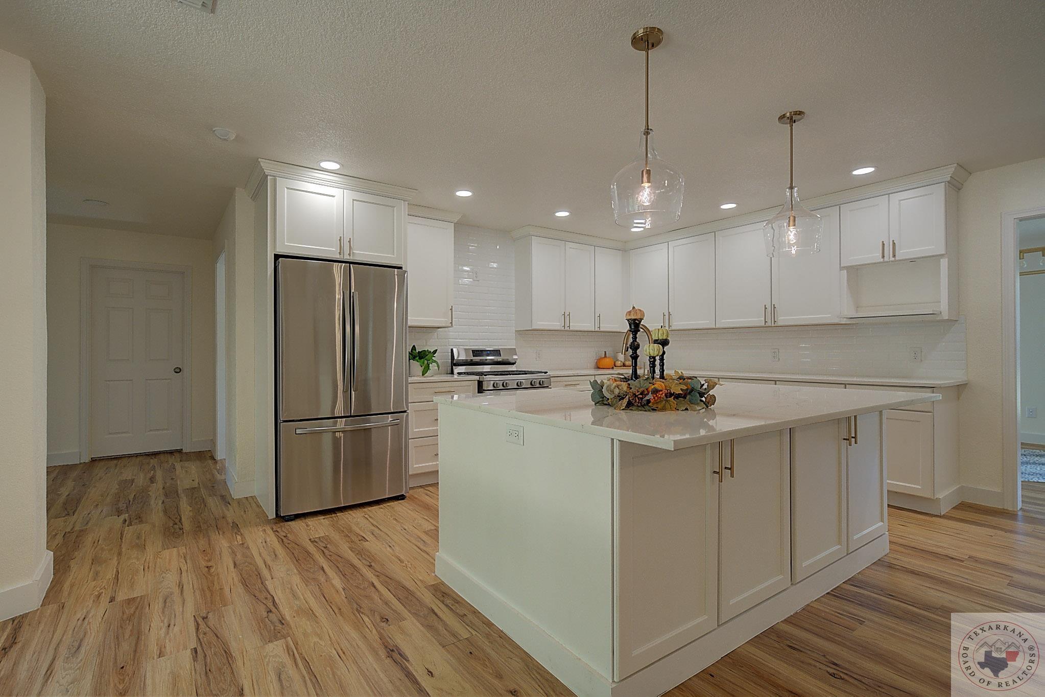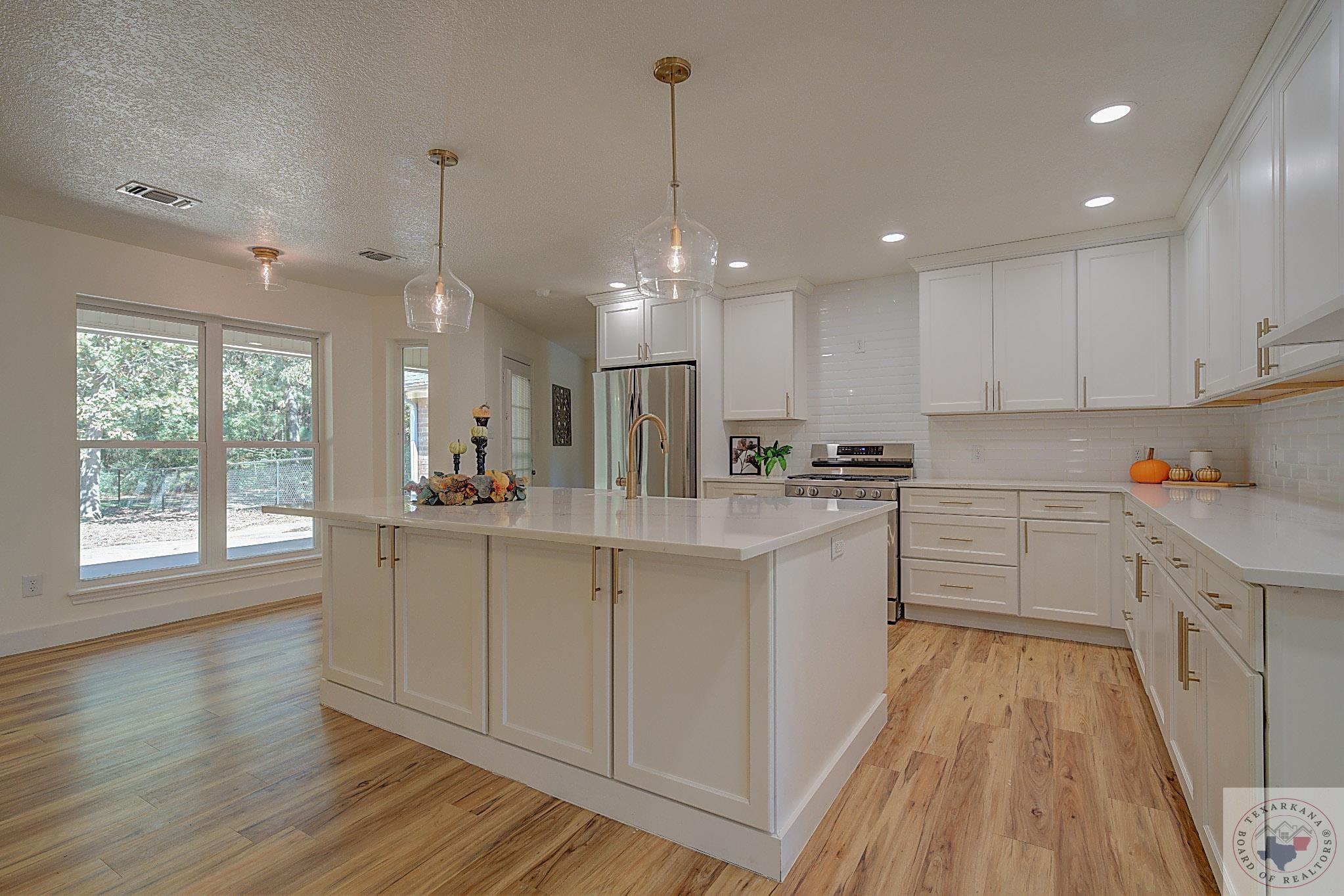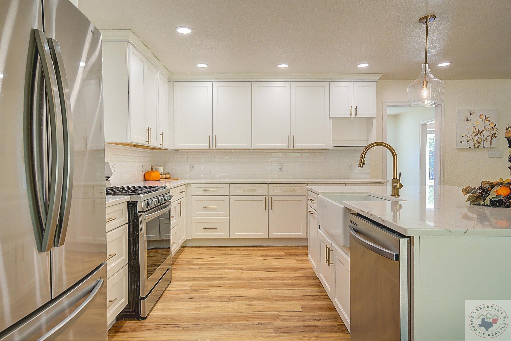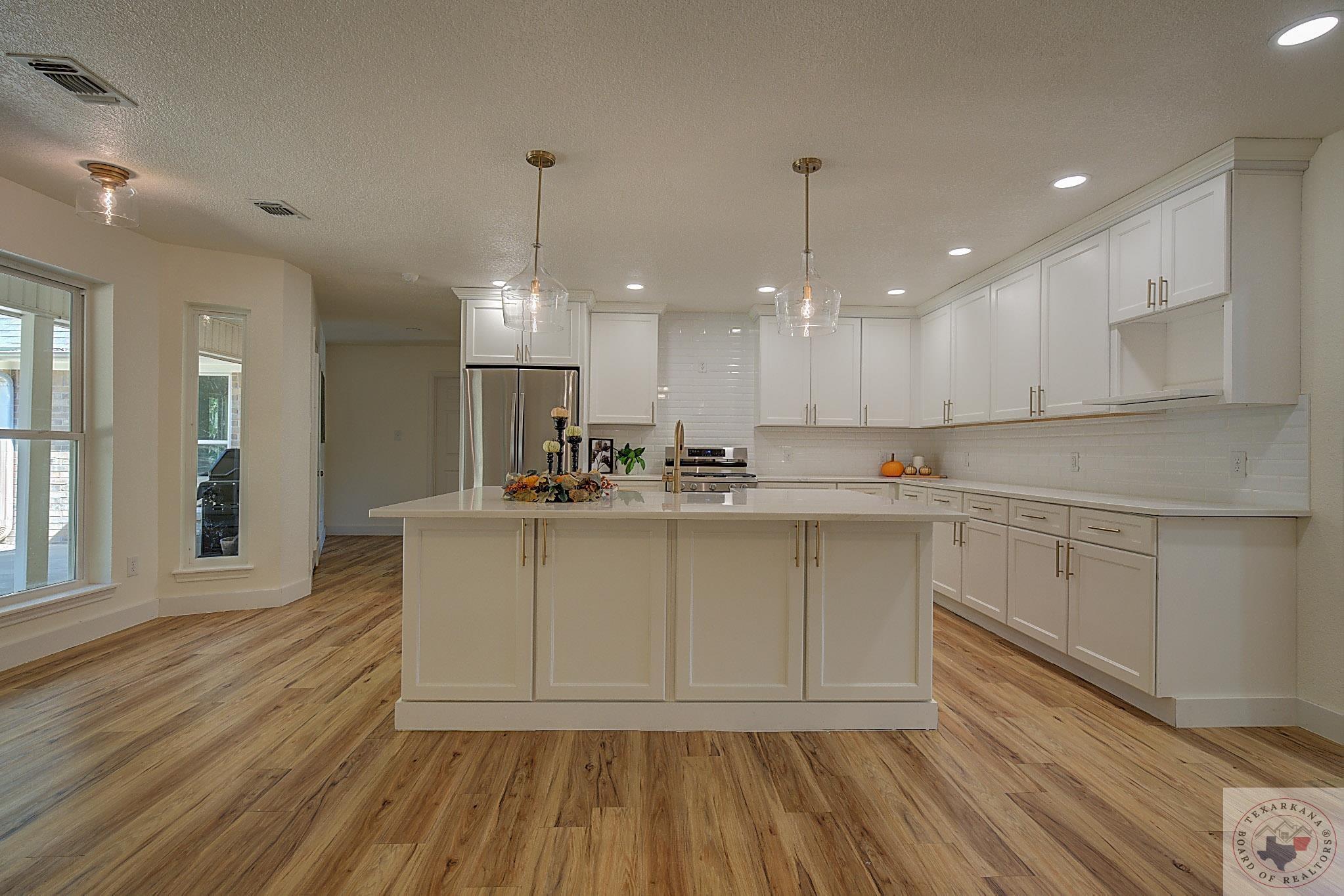 If you're dreaming of living in the wide-open spaces of the countryside, where you have more room to breathe, this is a perfect opportunity. Enjoy larger lots with all the modern perksGfast internet, excellent schools, beautiful trees, and peaceful surroundings. This beautifully maintained brick home is a delightful surprise inside and out. The interior is completely remodeled, featuring an expanded kitchen with a large island designed with Quartz, a farm sink, and brushed gold hardware for a touch of elegance. You'll appreciate the all-white cabinets with shaker doors, ample storage, and a four-person bar perfect for quick meals or engaging conversations. The spacious family area is adjacent to this space and is bathed in natural light, thanks to floor-to-ceiling windows offering stunning views of nature. Step out onto the patio, which spans the full length of the home and is partially covered and partially open, perfect for enjoying the outdoors. The large laundry room provides access to the garage, spacious enough for extended trucks or SUVs. The dual master closets are generously sized, complementing the XL master bedroom with a tray ceiling, making it an ideal retreat. Indulge in the luxury of a newly installed free-standing tub, and an oversized tile shower with a bench. New plush carpet adds warmth, perfect for the approaching cooler months. You'll feel like you're in a brand-new home with all the lighting and hardware upgrades. Barn doors add a rustic charm and splash of color to the home. You'll love this part of Redwater, just a quick 10-minute drive away.