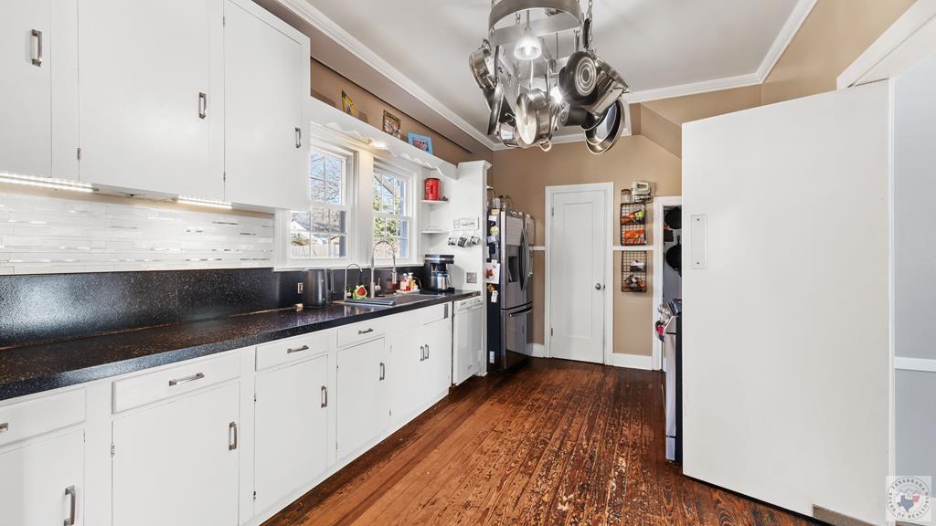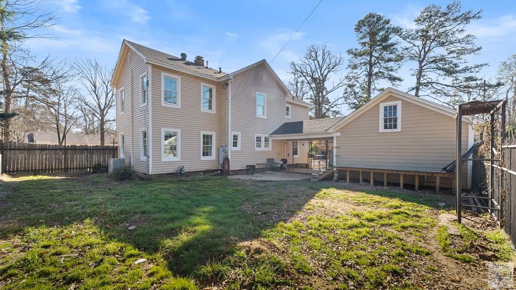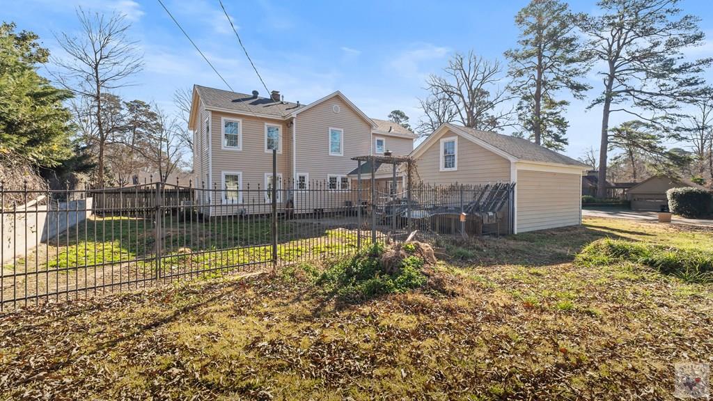 Located just north of the Historic District, this one-of-a-kind Saltbox-style home combines timeless charm with modern updates. Featuring tall ceilings, hardwood floors, and exquisite molding details, the house exudes character. Storage is plentiful with numerous closets, a tucked-away pantry, and a recently installed tankless water heater for instant hot water. The home has been thoughtfully updated, including a new roof in 2021, ensuring it's ready for any weather. Additional improvements include new windows, a sleek stainless steel single-vessel sink in the kitchen, a refreshed vanity in the main bathroom, and a touch of modern flair with wallpaper in the primary bath. For those who appreciate vintage design, the bedrooms and bathrooms showcase original shiplap, while the guest half-bath downstairs features charming Dutch blue and white printed tile. Outside, a wrought iron fence encloses the backyard, complete with a gate and walkway leading to the backdoor. A veranda provides covered access between the garage and the home, perfect for enjoying the serene surroundings. Whether you're drawn to the historic appeal of yesteryear or love the sought-after Tree Streets area of Texarkana, this home deserves to be seen in person. Don't miss the opportunity to make it yours!