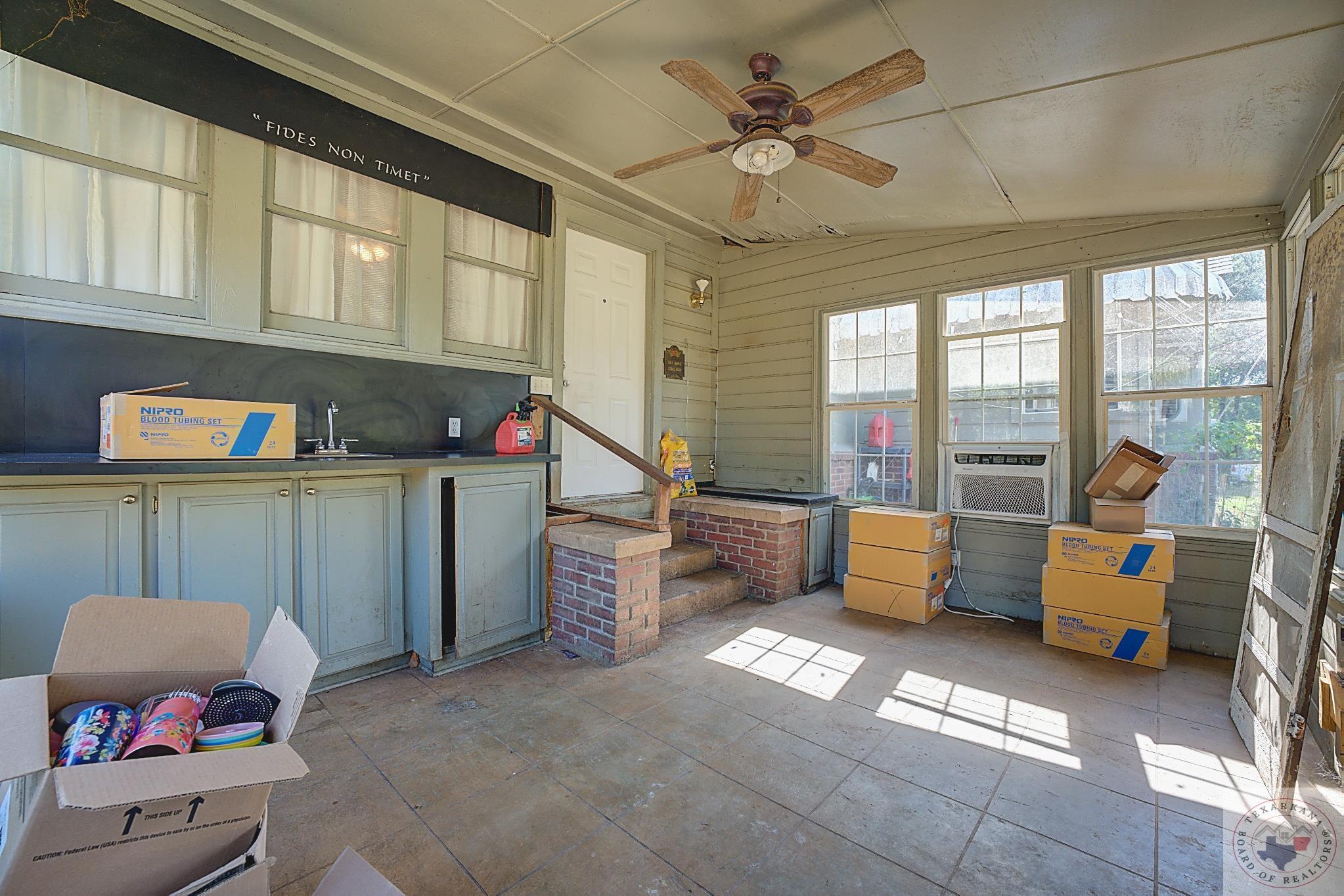 Looking for a charming historic home to renovate? Look no further! This gem was built in 1895 and boasts a sturdy pier-and-beam construction. The layout is characteristic of its era, featuring spacious rooms and beautiful wood laminate floors. Imagine relaxing on the large front porch, adorned with new lighting and fans - a perfect spot for unwinding in the afternoons. The intricate woodwork throughout adds to the home's charm. Enhanced by the tall ceilings, the home is currently cooled by window units, as the HVAC system recently malfunctioned. Fear not, the seller will replace it upon a satisfactory offer. The damaged ceiling in one of the bedrooms resulting from the HVAC issue will not be included in the repair. The property is being sold AS IS, except for the replacement of the HVAC unit. Most of the work needed is cosmetic, and with two generously-sized living rooms, converting this into a 3-bedroom layout is easily achievable. The home offers 2123 sq ft of heated space, leaving room for layout enhancements. A dining room leads to the enclosed sunroom patio, complemented by a covered outdoor patio and a non-functional fountain in the front yard. The recent yard maintenance has left a bit of damage from a large tree in the backyard, thankfully missing the home.