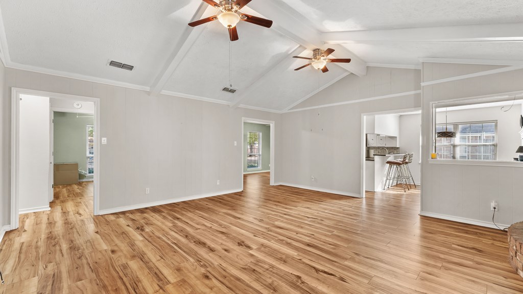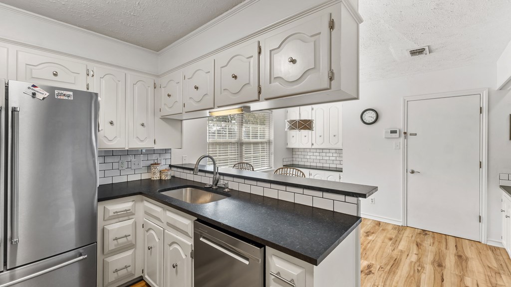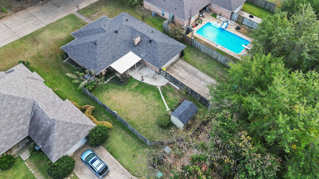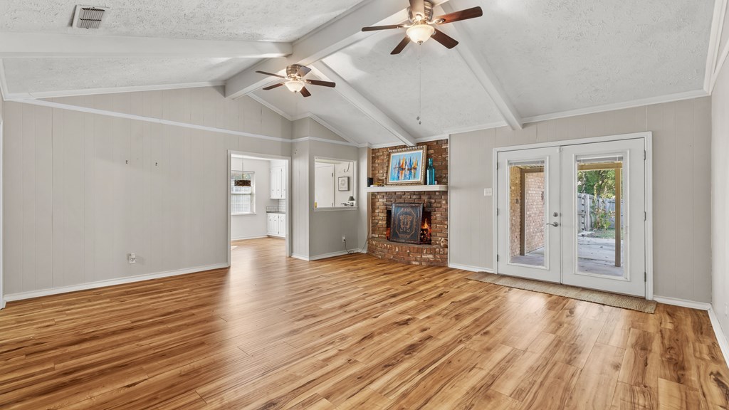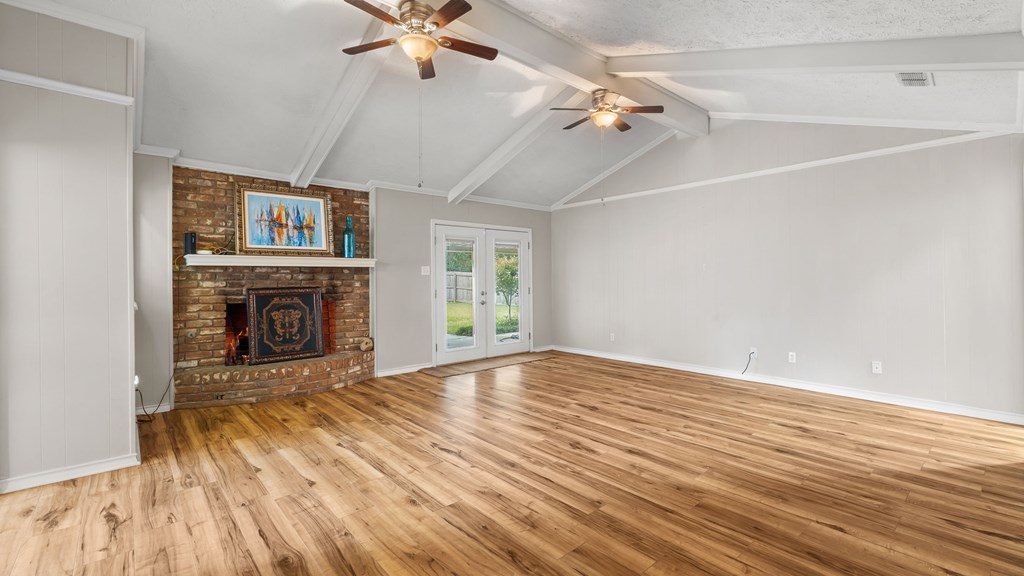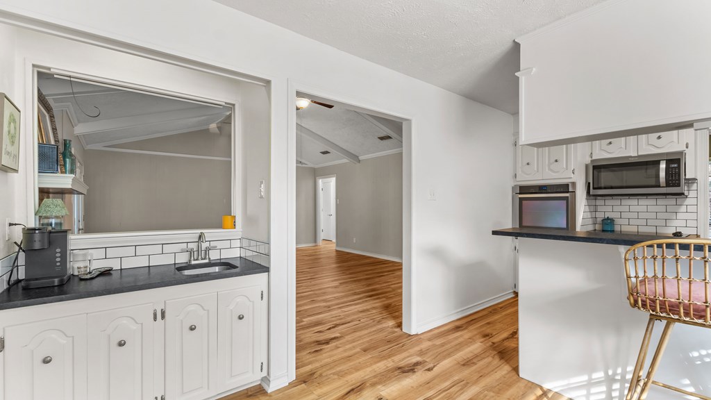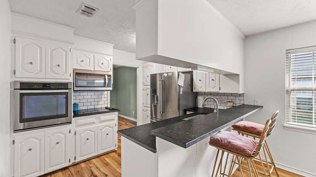 This unique property offers spacious living areas, highlighted by a cathedral ceiling with natural beams, perfect for hosting family gatherings. Updated to remove popcorn ceilings, the home exudes classic charm, with scraped wood flooring and honed granite in the kitchen and baths reflecting meticulous attention to detail. The kitchen features subway tile accents, a coffee bar, and a built-in hutch, while the master bathroom includes a modern subway tile shower. A new roof was installed in 2022, and ample storage is available through large closets. Relax in the inviting outdoor space, perfect for sipping lemonade and watching pets or grandchildren play. You additionally have an outdoor storage to keep you garage free of tools and mowing equipment. Private garage access from the alley ensures a tidy curb appeal. Decorated in soft neutrals, the home also features a warm fireplace with a gas starter, ready for wood-burning fires. The master suite offers an open vanity, a private shower room, and a spacious closet. Whether you're starting out or downsizing, this low-maintenance gem is a dream home. It's ideally located in the heart of Pleasant Grove, near amenities like the new elementary school, St. Michael's Hospital, restaurants, and the mall. Move in READY. Call today.