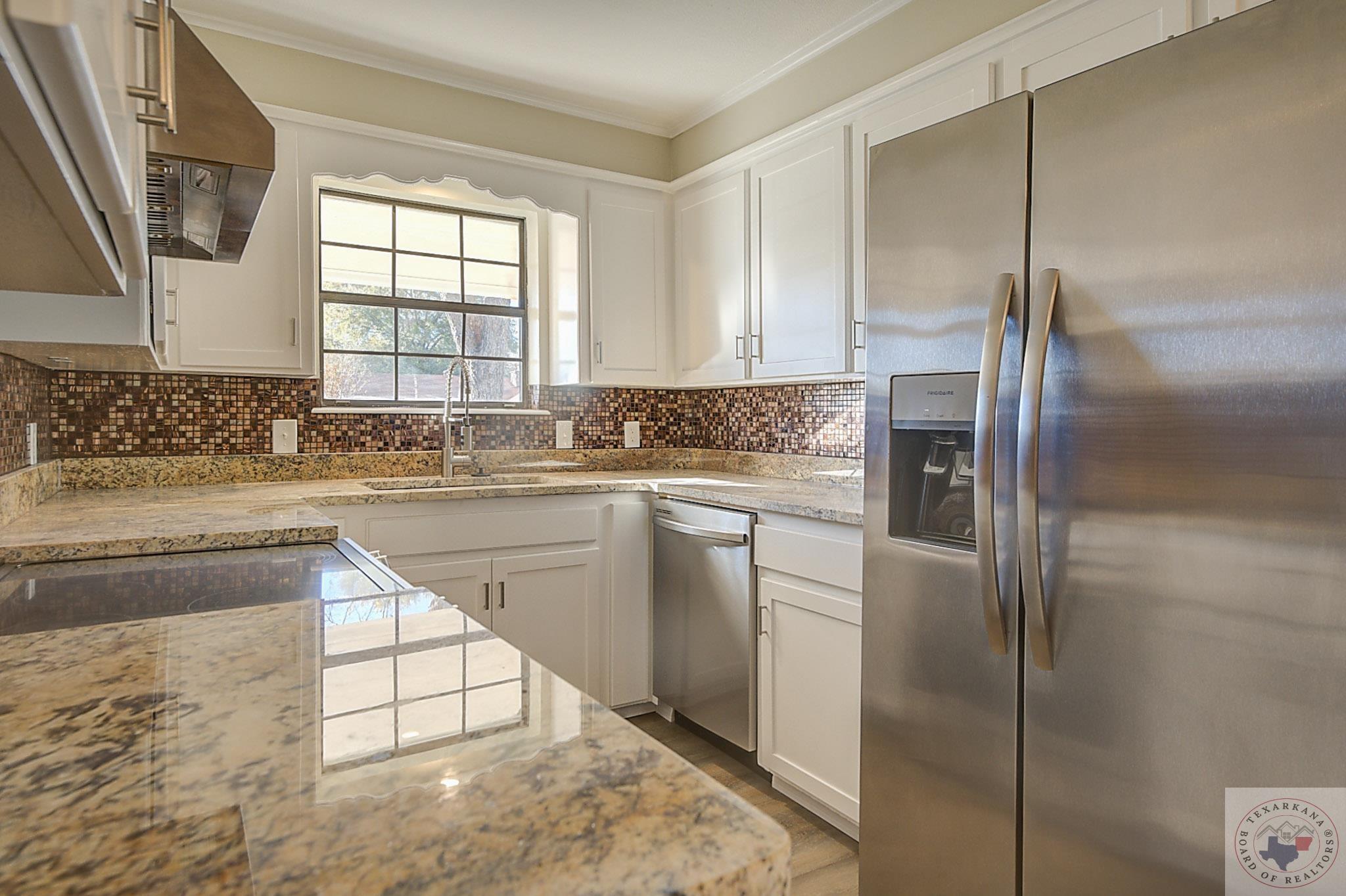 Affordable 3 Bedroom with all the right stuff, nice yard, with newer Privacy Fence and we have spruced up this home. You will love the feel, with all new interior to include new Sheetrock, Luxury Vinyl Plank Flooring with New Kitchen cabinet Shaker Doors, don't miss the new Stainless appliances, with a Single vessel Stainless Sink, for those heavy loads, Glass Tile backsplash, along with Granite in kitchen and Baths. We have made the Baths Like new with all new Tubs and Showers, along with Special lighting and New Toilets. You will love the Open Arrangement complemented a special area for your dining table. We have a spacious laundry area, with a New Water Heater so your maintenance issues are non existent. This home has been stabilized and is ready for you and your family to enjoy for years to come. Single car garage, with easy access to your kitchen. Check out the Mature Pecan Trees, papershell variety trimmed up, to allow your yard to flourish. This won't last on the market, it is whole package for a first time buyer or a downsizer that wants an easy maintainable home. Call Today. Seller is a Licensed Agent in Texas and Arkansas
