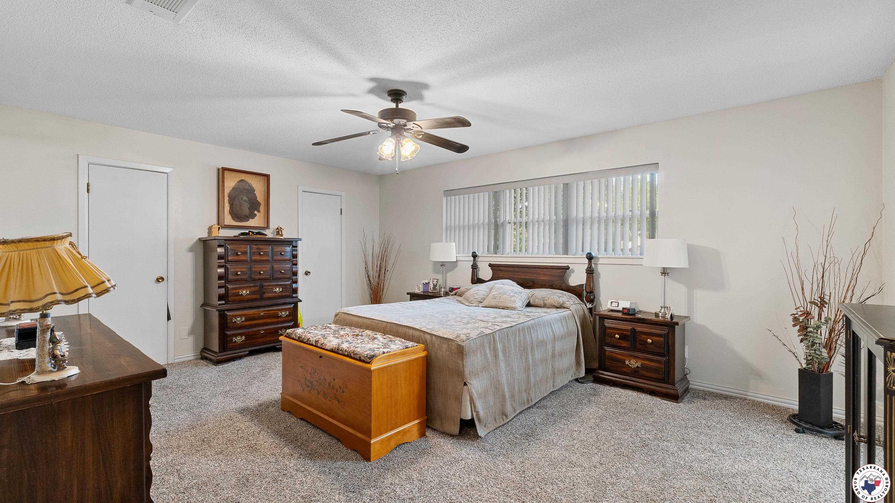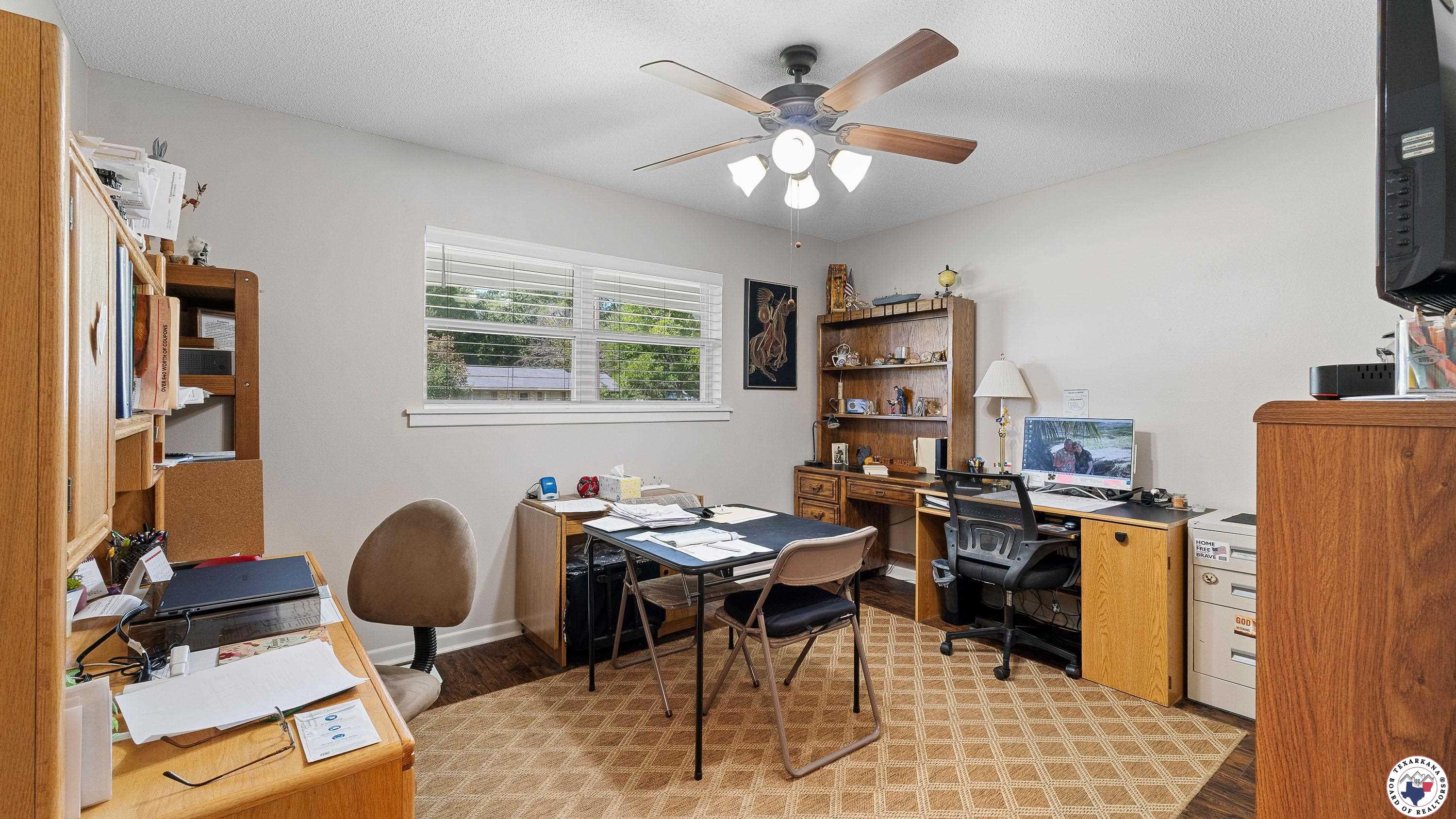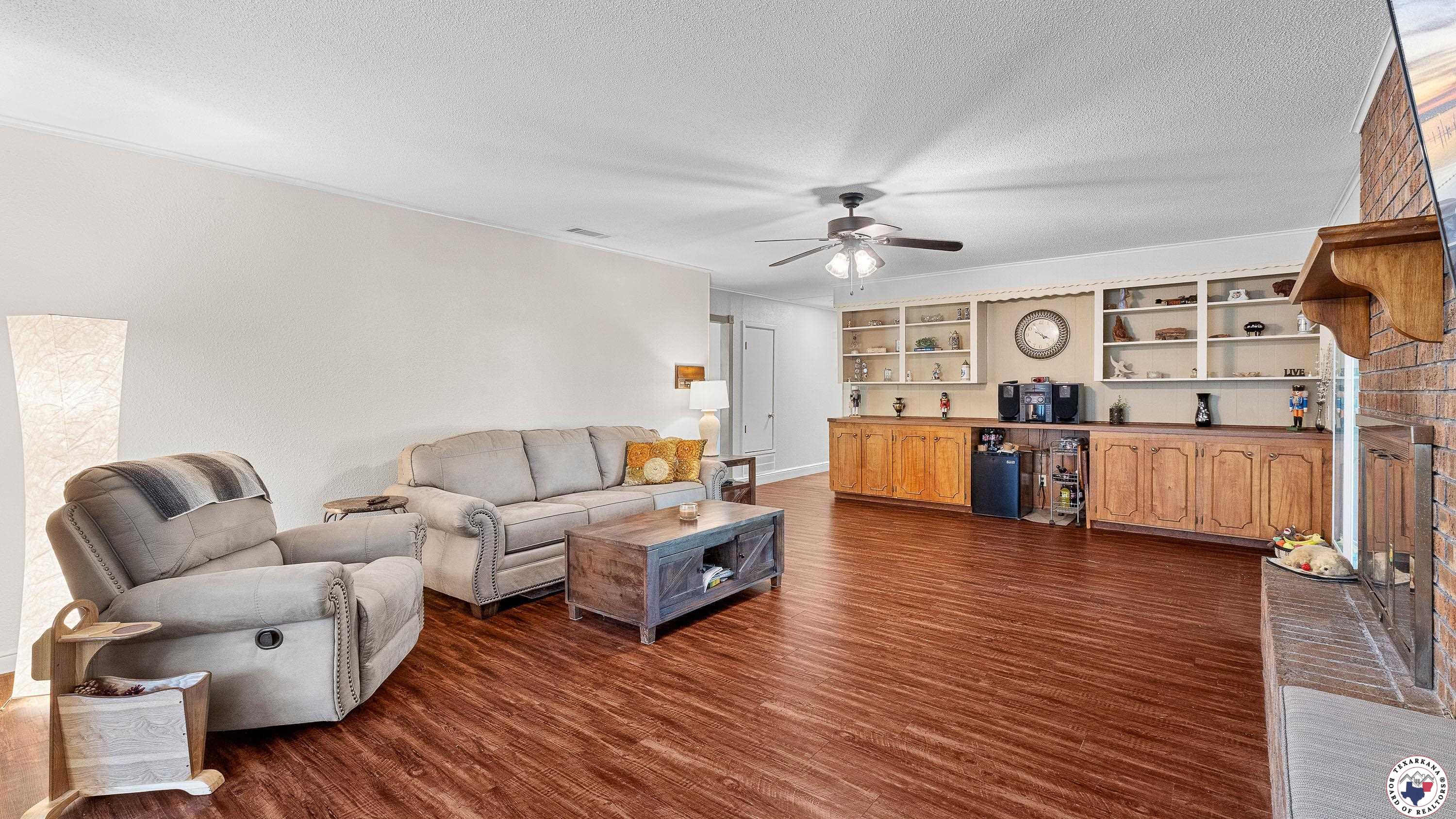 Looking for a home with all the right stuff in Pleasant Grove, look no further. This home has two living areas, with two dining areas, and the Primary Bedroom is mammoth. Two large walk in closets and an updated Walk in Shower are the focus in the bath. You will love the Large Woodburning fireplace, that currently has a gas log. Check out the Semicircle patio with cover and the golf course like backyard. With a Carport for two, and two Storage areas attached, this is a comfortable arrangement. Additionally this home has a two car garage, that is a dedicated shop, however, you can use it however you desire. The home is freshly painted, and you will love the charm of the black and white kitchen. This home has a wall of bookshelves in the Den area which is convenient for all your collectibles. We have solar screens on some of the windows that face the west. You will enjoy this location a 1/2 block from Walmart, and so many restaurants and doctors offices within just a block also this property has a turn lane which is a safe access to enter or leave. Wrought Iron Storm Doors are extra security for this location, along with Blink door bells. We have luxury vinyl floors in the wet areas.