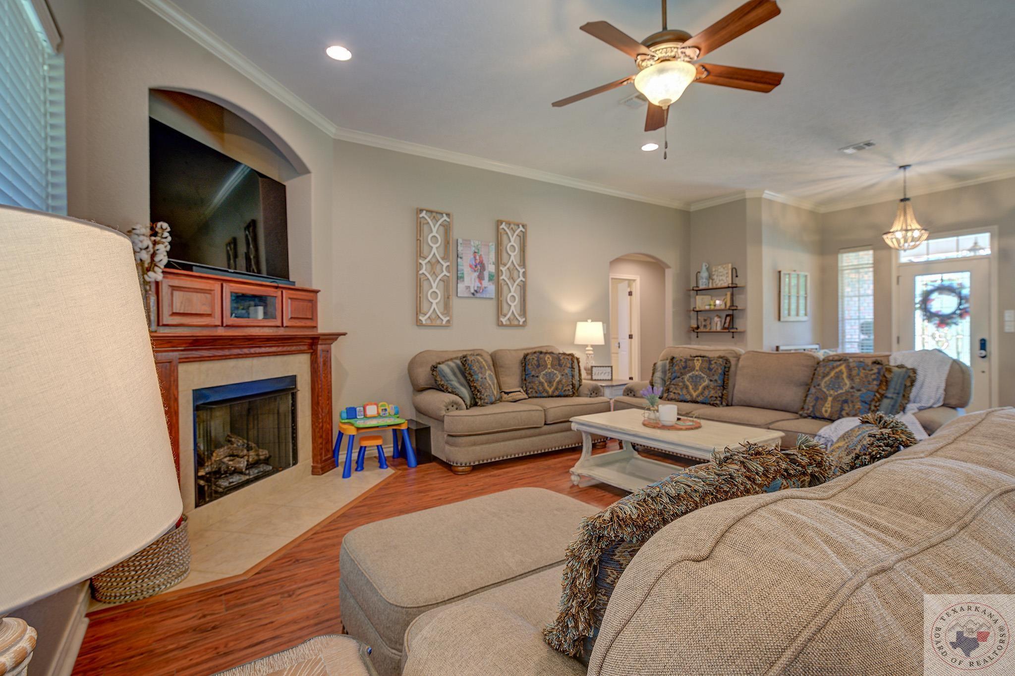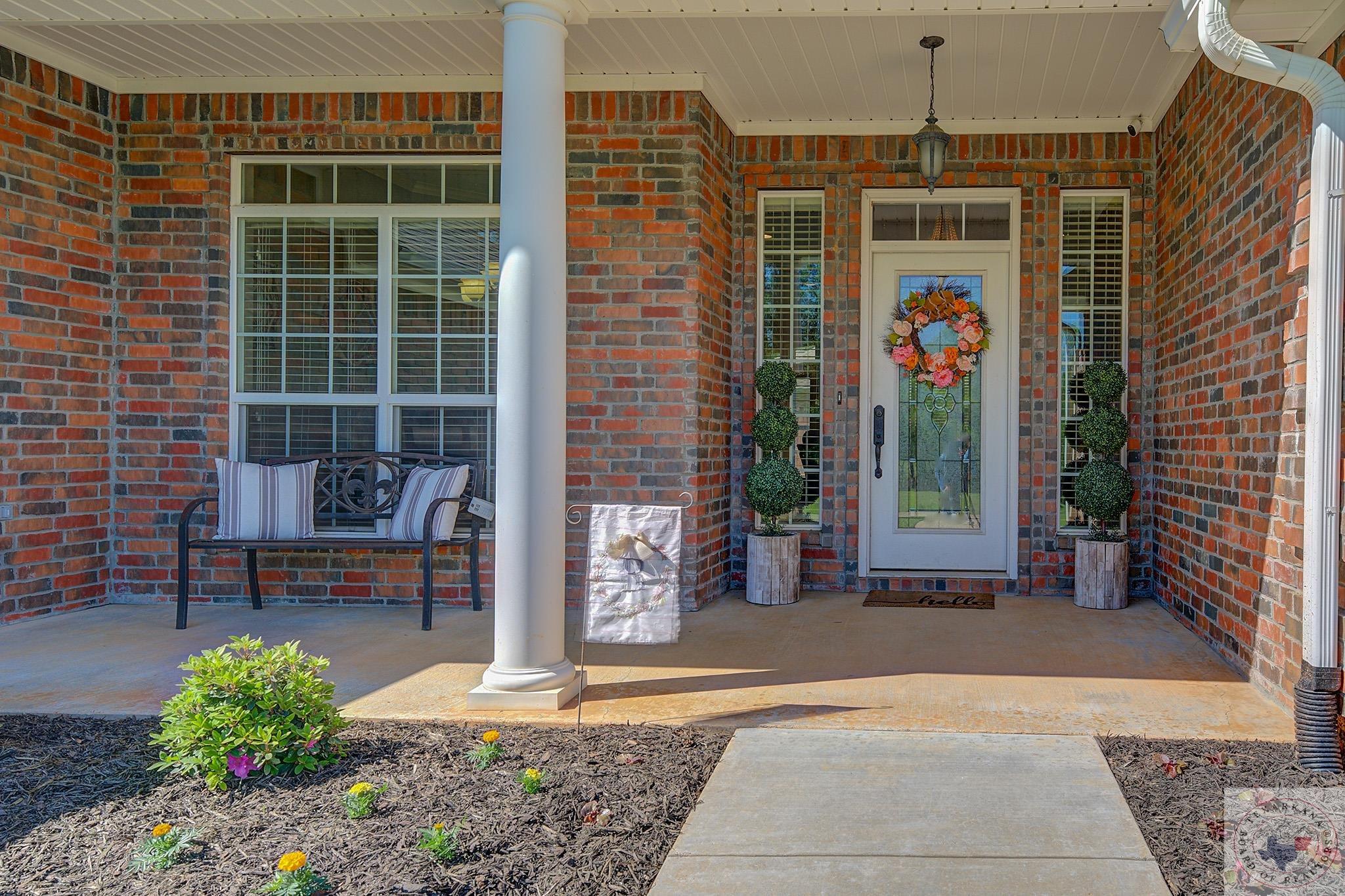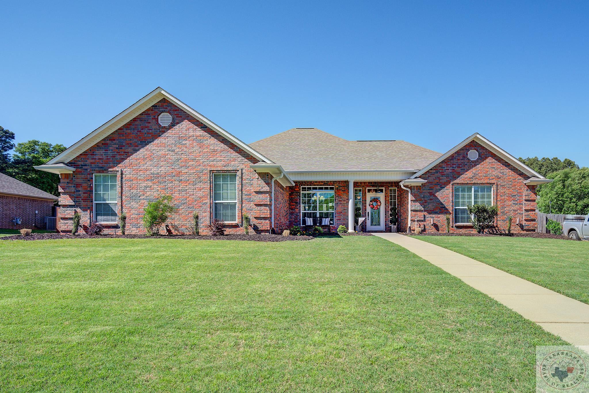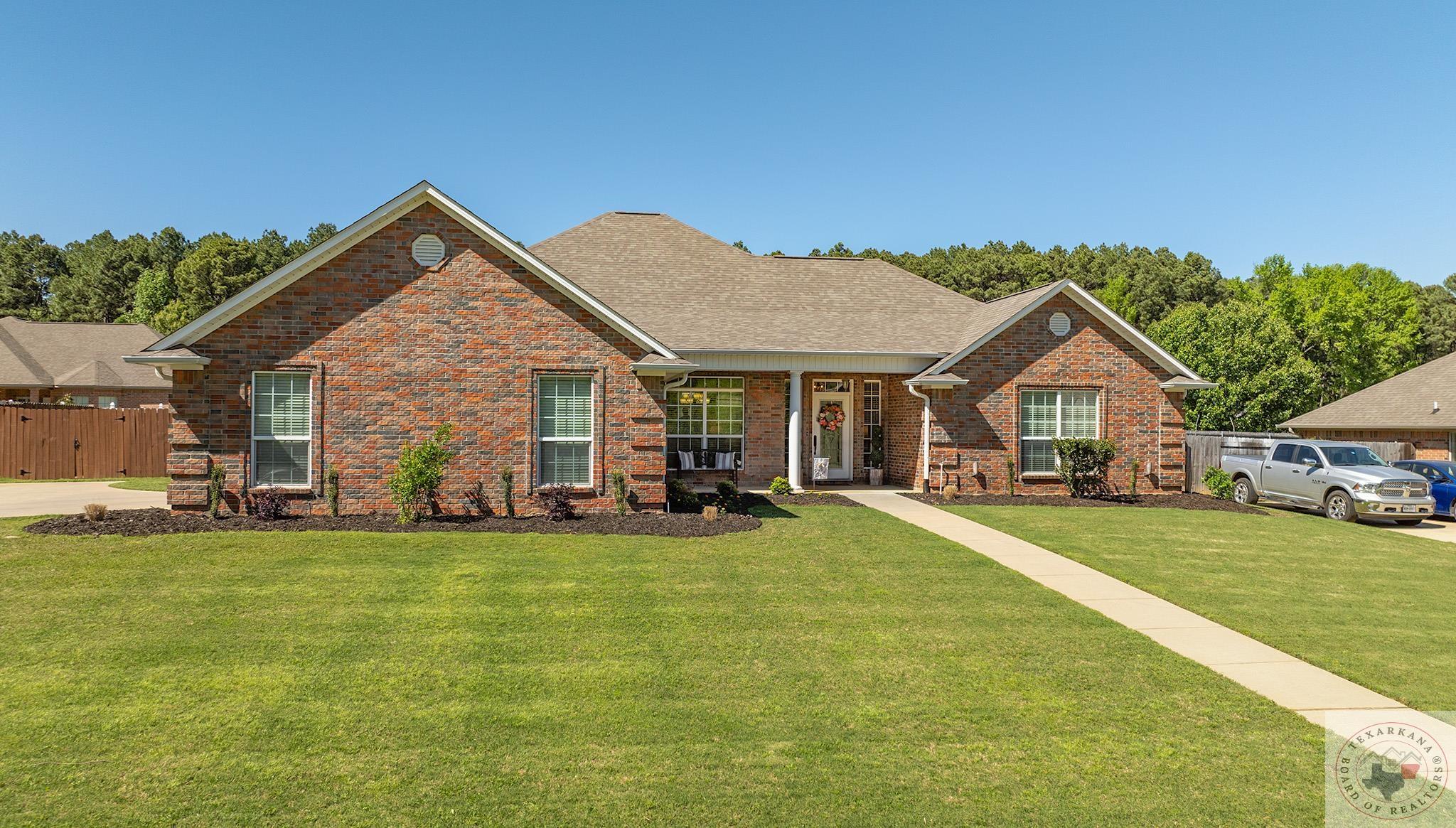 Inviting home with a touch of charm, nestled on a ridge with a lush green lawn. Step onto the welcoming porch and through the beautiful leaded glass doorway. Explore the expansive kitchen, boasting abundant cabinets with a rich wood finish, a central island, and stainless steel appliances. The Baltic Brown Granite complements the sleek black accents throughout the house, perfect for family gatherings. Relax on the spacious covered back patio while the kids play in the yard. The living room offers a cozy corner fireplace and easy-to-maintain flooring. The oversized Master Suite features a generous dressing area, mirrors for a flawless look, ample closet space with built-in features, and a corner spa tub for unwinding. The bathroom layout includes a private water closet, and the master bedroom accommodates large furniture and offers a Tray ceiling for beauty. Ample storage, cabinets, and a well-organized laundry area complete this comfortable home. The yard is simply fabulous for any buyer to take over.