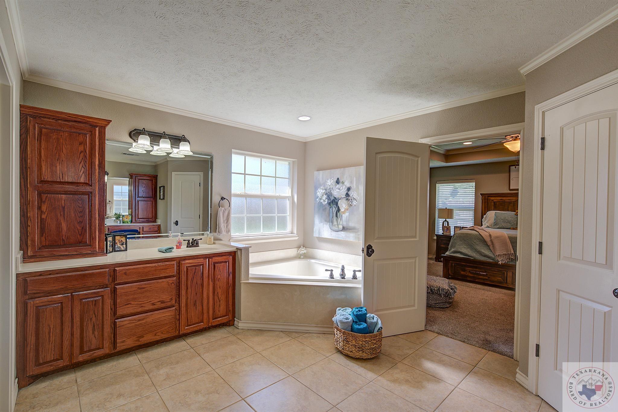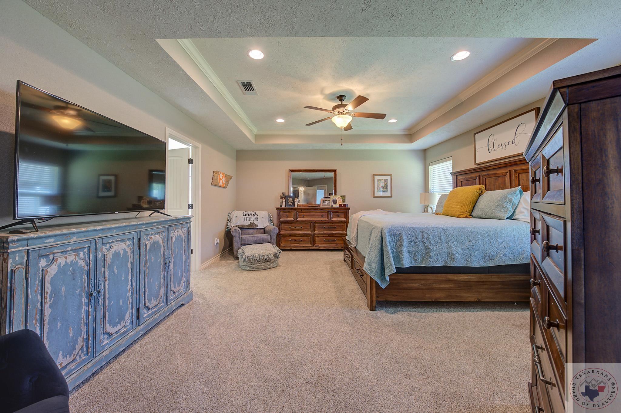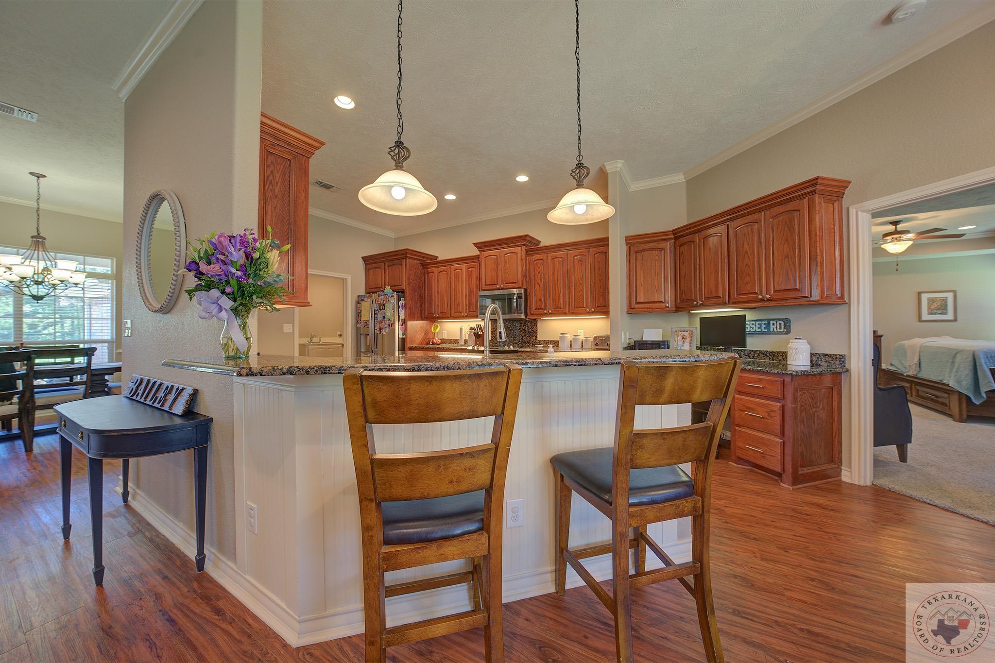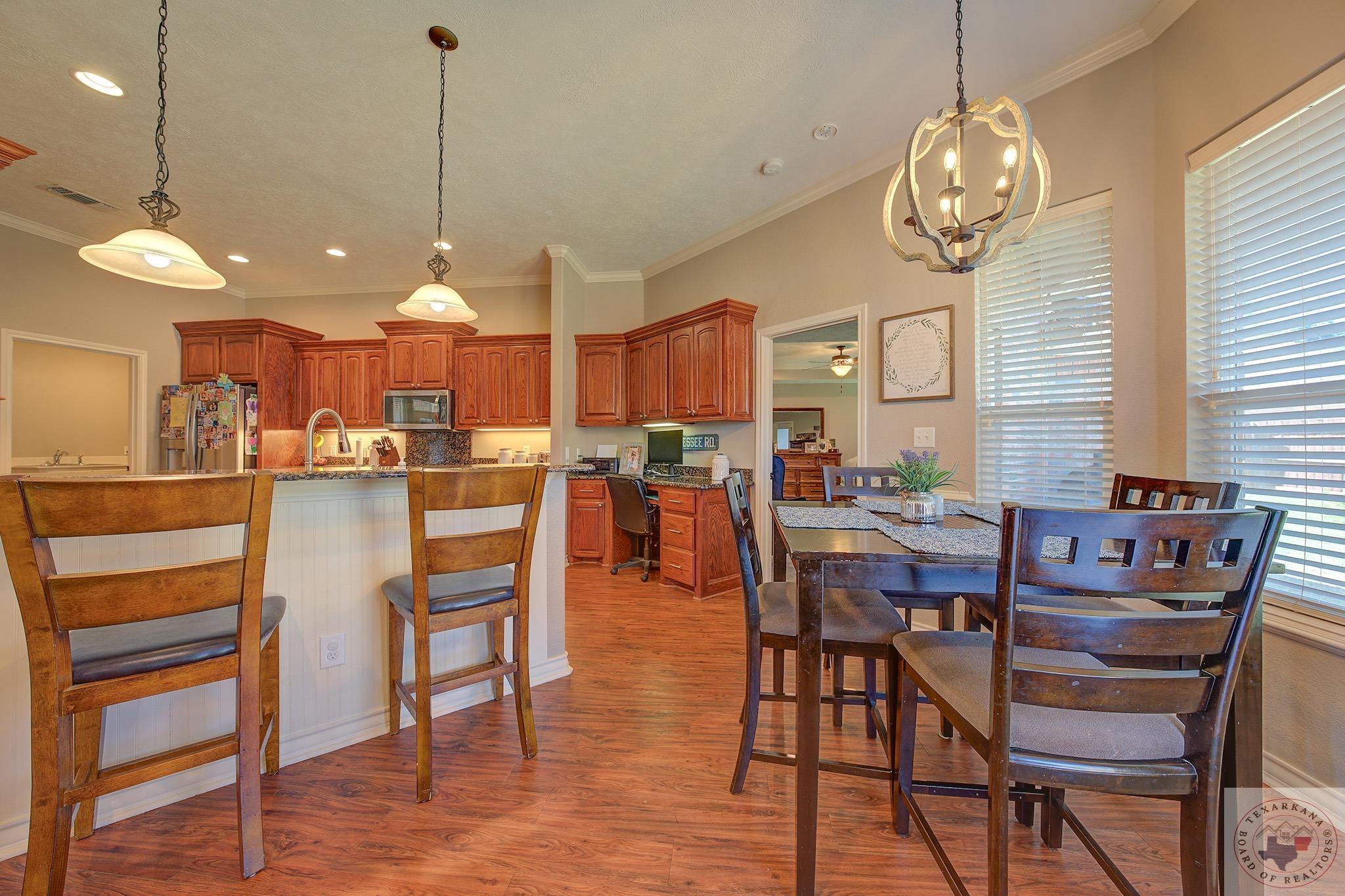 Inviting home with a touch of charm, nestled on a ridge with a lush green lawn. Step onto the welcoming porch and through the beautiful leaded glass doorway. Explore the expansive kitchen, boasting abundant cabinets with a rich wood finish, a central island, and stainless steel appliances. The Baltic Brown Granite complements the sleek black accents throughout the house, perfect for family gatherings. Relax on the spacious covered back patio while the kids play in the yard. The living room offers a cozy corner fireplace and easy-to-maintain flooring. The oversized Master Suite features a generous dressing area, mirrors for a flawless look, ample closet space with built-in features, and a corner spa tub for unwinding. The bathroom layout includes a private water closet, and the master bedroom accommodates large furniture and offers a Tray ceiling for beauty. Ample storage, cabinets, and a well-organized laundry area complete this comfortable home. The yard is simply fabulous for any buyer to take over.