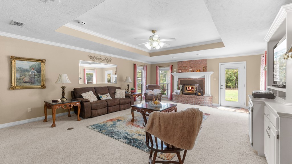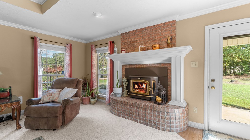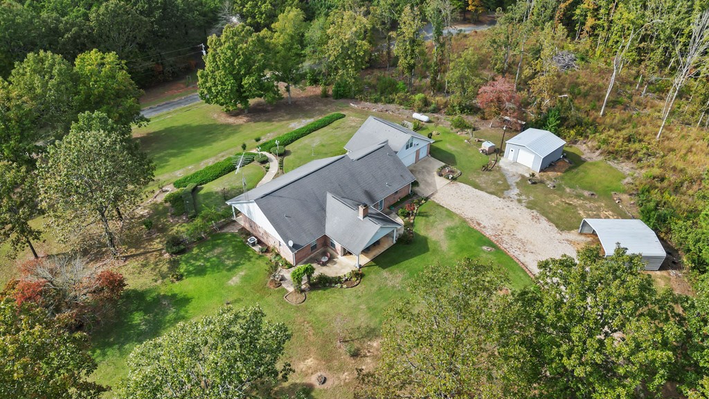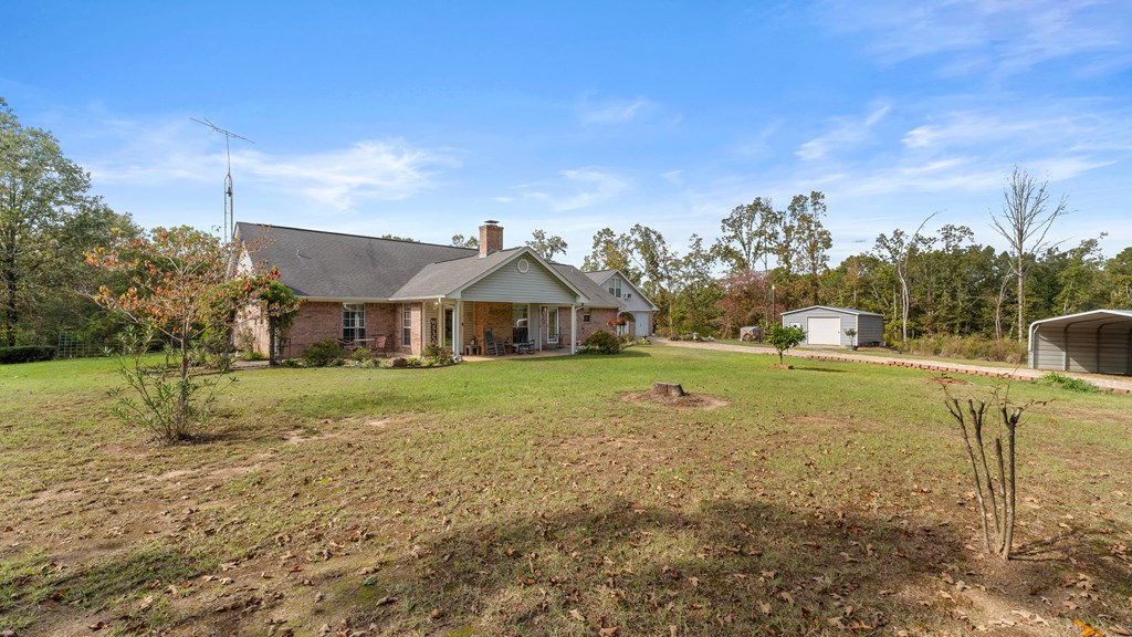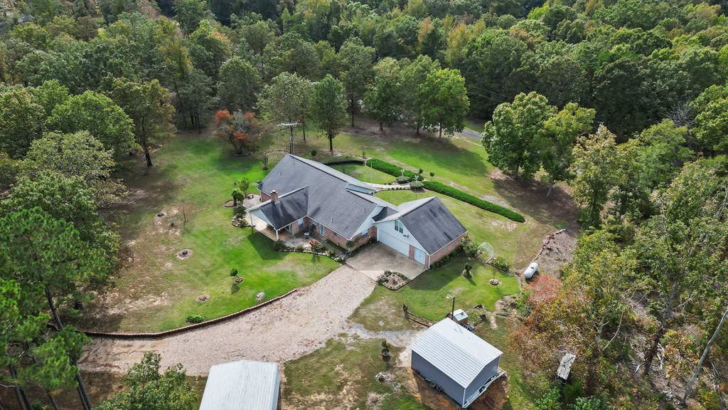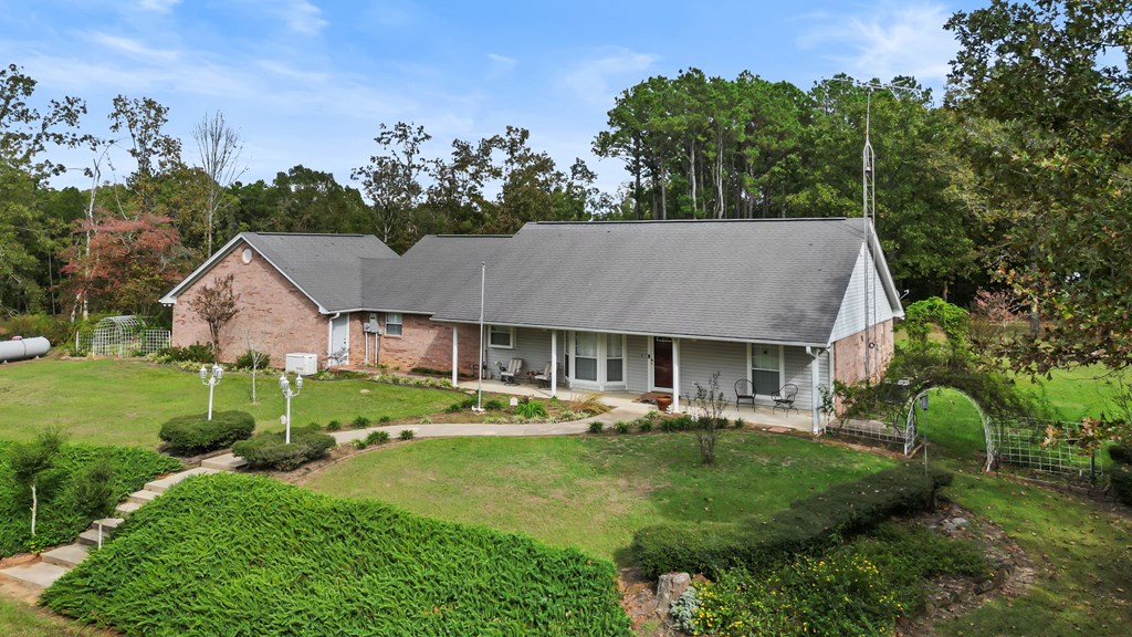 Just Reduced, this is well built family home ready for you. Nestled on a serene ridge, this custom-built home offers 6.39 acres of privacy and breathtaking views of lush trees and an abundance of flowering plants. Surrounded by nature and buffered by tranquil woods, it provides a peaceful retreat from the hustle and bustle. You have a separate Storage/Workshop Building for your Tools, and a 2 car carport for your Boat or ATV. This home has a comfortable layout which will welcome you as you enter. The spacious living area features a cozy fireplace and showcases impeccable craftsmanship with built-in details and elegant wood molding throughout. Designed with convenience in mind, the home includes a whole-house generator to ensure uninterrupted power during outages. Additionally you have a wood Stove insert, to maximize your heat during the winter season. Above the garage, you'll find a large finished room accessible via a staircase. Currently equipped with a small window AC unit, this space is perfect for storage or creative use. The garage itself features an insulated door, helping to maintain moderate temperatures year-round. The split primary bedroom is a private oasis, complete with a walk-in shower, a luxurious whirlpool tub, and a dual-sink vanity. Conveniently located near the laundry room, it adds ease to your daily routine. Whether hosting large family gatherings or enjoying quiet moments, this home provides ample space both indoors and out. The expansive outdoor living area is ideal for soaking in the changing seasons, while the charming front porch offers unparalleled views of vibrant landscaping. Crepe myrtles, miniature knockout roses, and other flowering plants create a colorful display throughout spring and summer. As an added bonus, a brand-new roof will be installed prior to closing, ensuring peace of mind for the new owner. This home is a harmonious blend of beauty, comfort, and practicality, ready to welcome you home.