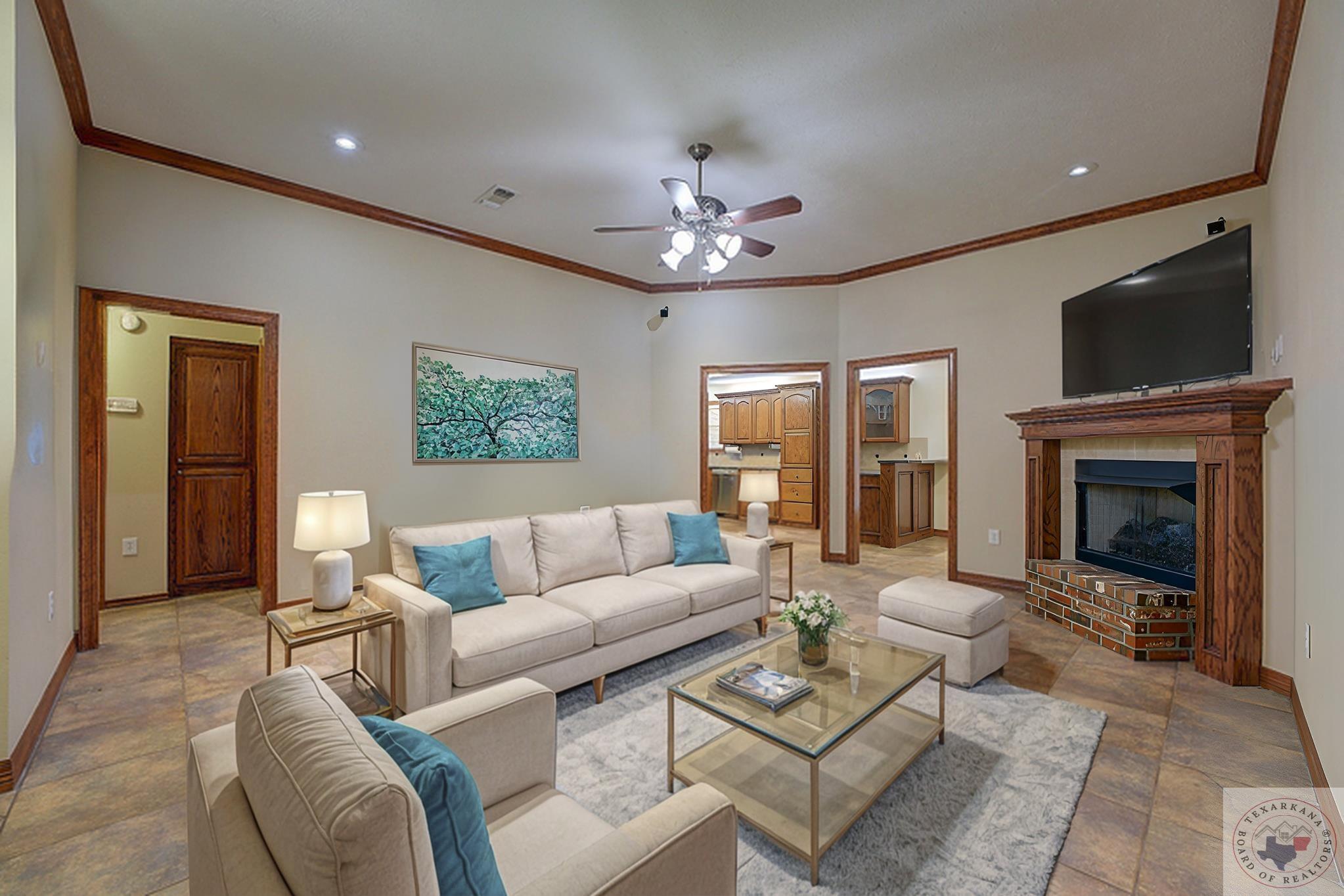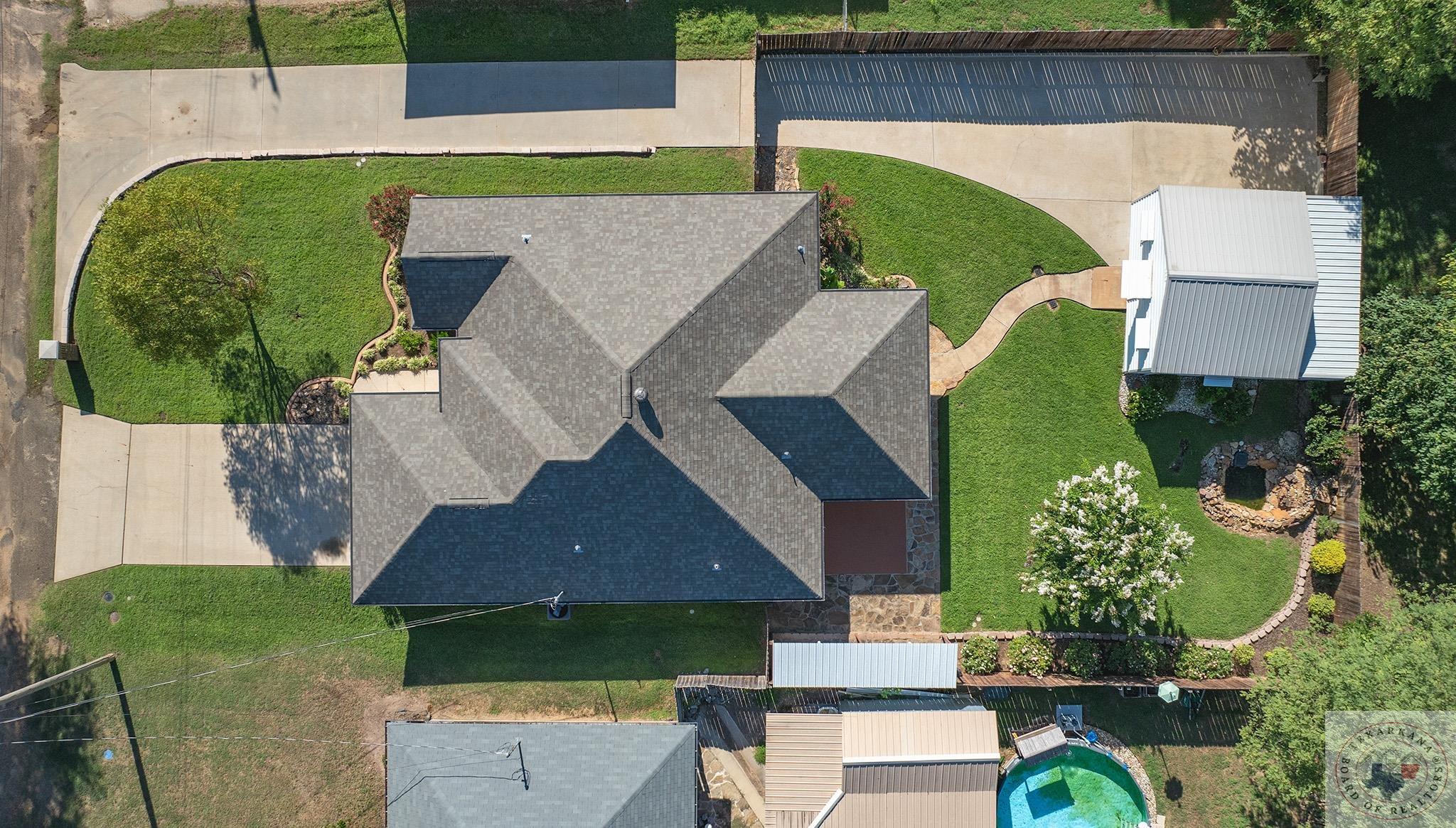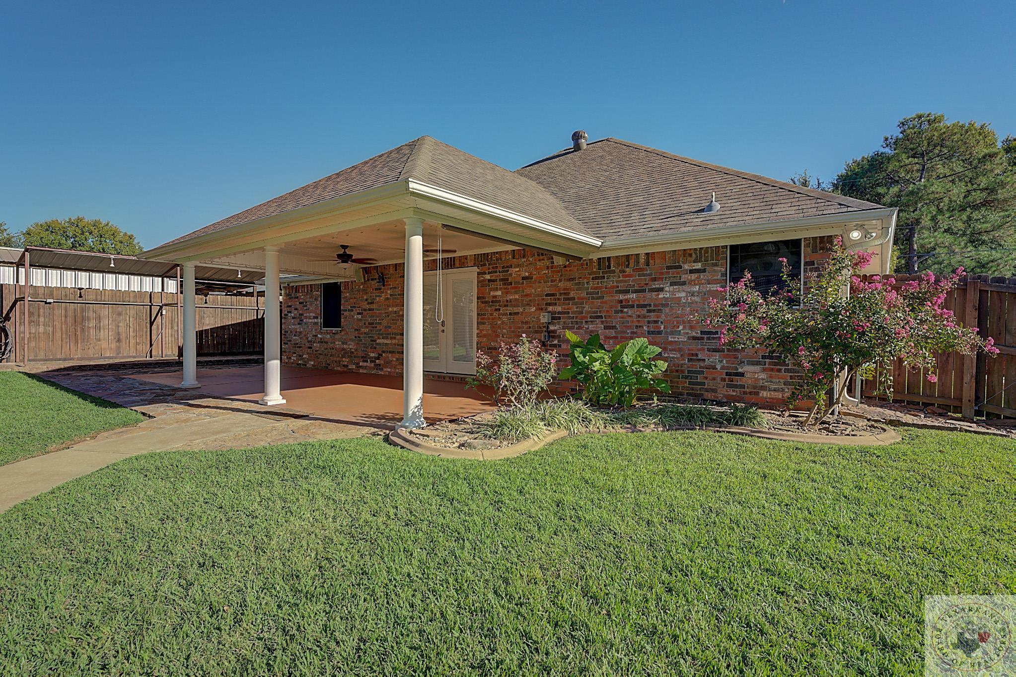 Experience the luxury of a custom-built property designed for private enjoyment or hosting family gatherings. With an RV hookup available, it's perfect for a weekend getaway. This property boasts numerous amenities that surpass many speculative builds. Highlights include an oversized kitchen with soft-close doors, etched glass cabinet doors, a built-in wine refrigerator, and Bosch appliances, a top-notch brand. The detailed brickwork is striking upon arrival, and the roof is newly installed as of September 2024. Featuring two driveways, the pristine concrete is perfectly edged along the fence, providing ample parking for multiple vehicles or an RV with a 30 AMP connection. Enjoy cost-saving sprinklers with seven zones and two separate water meters. The backyard structure is thoughtfully designed, ideal for a workshop or businessGor transform it into a play area for children. The home is in pristine condition with both tile and carpet flooring. The beautifully landscaped backyard includes a triple crepe myrtle tree displaying three different colors. It offers surround sound, an outdoor TV mount, a roll-down shade for late afternoon sun, and a covered area for your outdoor kitchen appliances, including space for refrigerators, fryers, grills, and smokers. If you can envision a feature, this home likely has it. This property even includes a water fountain that provides the soothing sound of a brook. Call today to seize this opportunity.