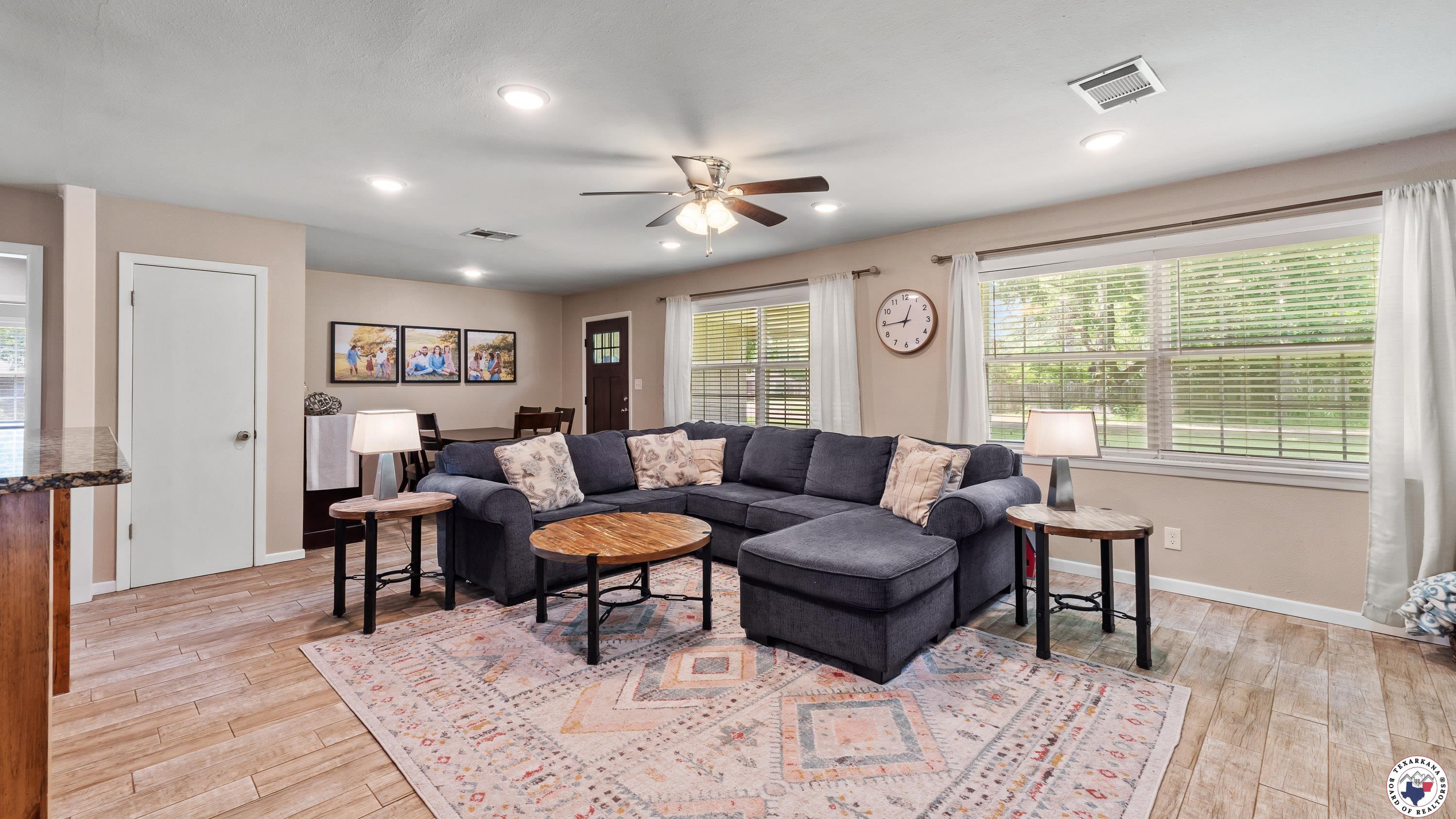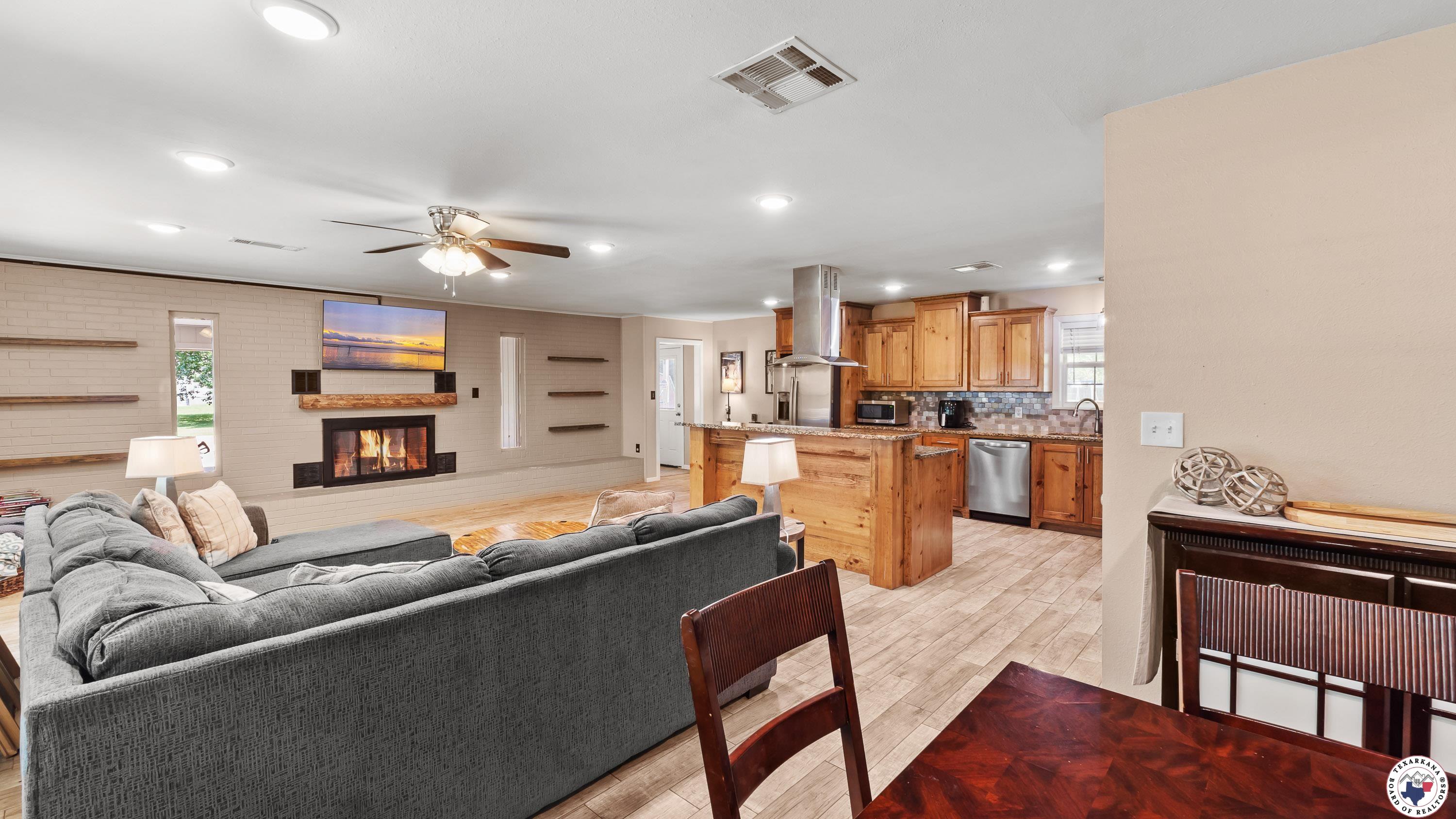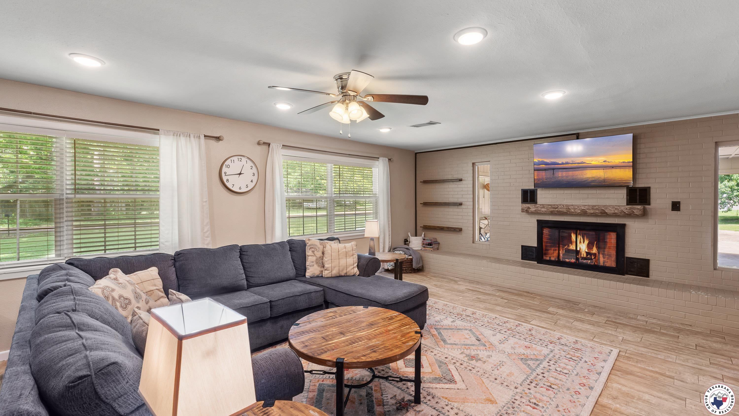 Looking for a versatile country home with over an acre of space to call your own? This charming property is nestled among towering hardwoods, offering a serene backdrop reminiscent of a simpler time. Picture kids playing in the expansive yard while you enjoy the shade of the trees. The property also features a small workshop, perfect for tools, hobbies, or extra storage. Inside, the home has been tastefully remodeled with an open concept design, creating a seamless flow between spaces. The kitchen, a true centerpiece, boasts Knotty Alder cabinetry stained in a rich fruitwood-inspired hue, paired beautifully with a large island overlooking the family area. Practicality meets style with low-maintenance tile flooring throughout, making cleaning a breeze with just a broom and mop. The main bathroom and primary shower are adorned with elegant tile surrounds that enhance the space while remaining easy to maintain. This home is designed for comfort and functionality, featuring a cozy full fireplace and a spacious laundry room. It's the perfect retreat with lower taxes in the area, plus the convenience of city water and sewer, all within the 2-mile jurisdiction. Conveniently located just 4 minutes from Highway 59 and 10 minutes from the I-30 Corridor, this property offers the best of both worlds--peaceful country living with easy access to major routes. With granite countertops, stainless steel appliances, spacious bedrooms, and a stunning natural setting, this home has everything you need to feel right at home. Schedule a showing today and see all this property has to offer!