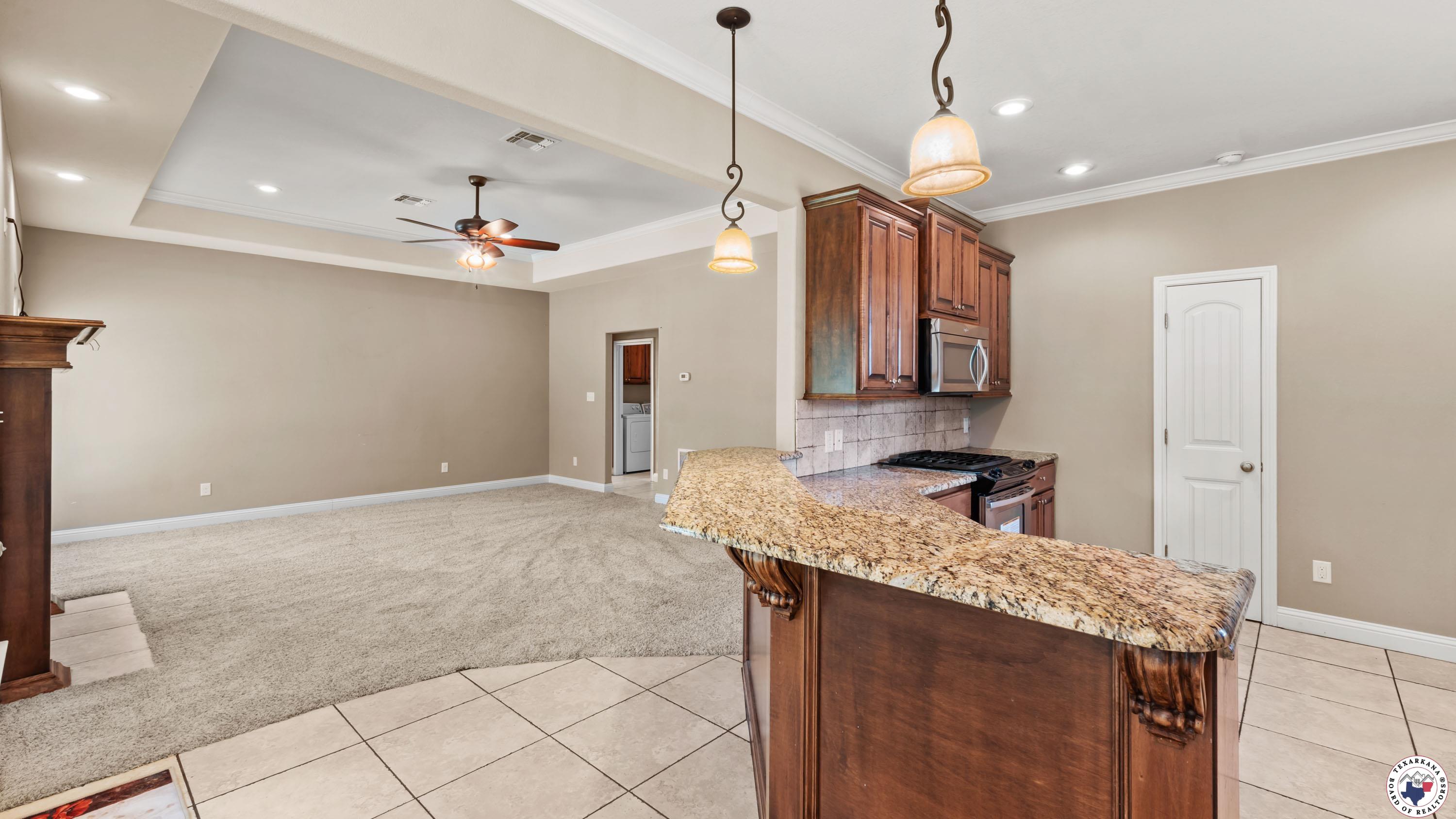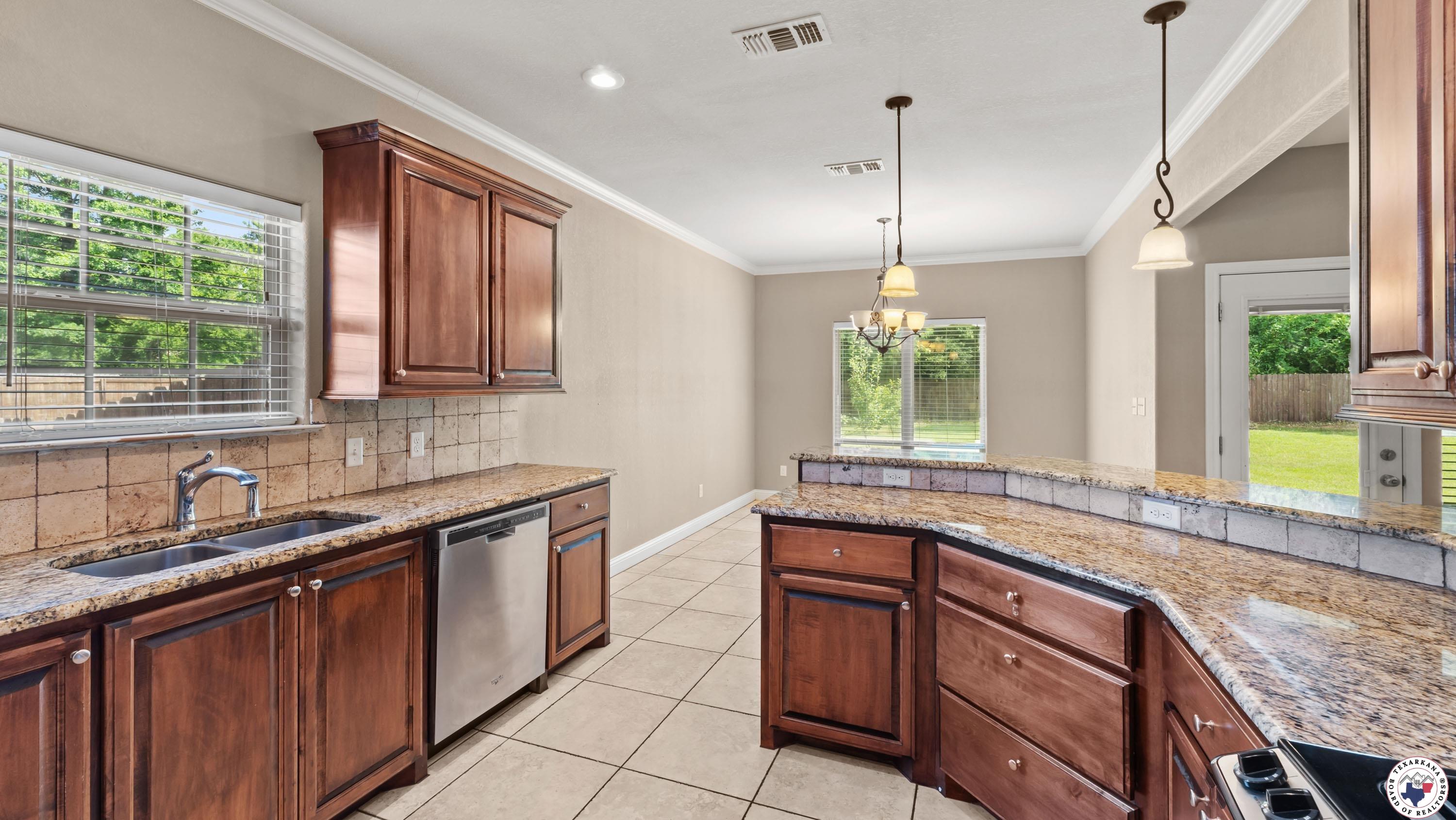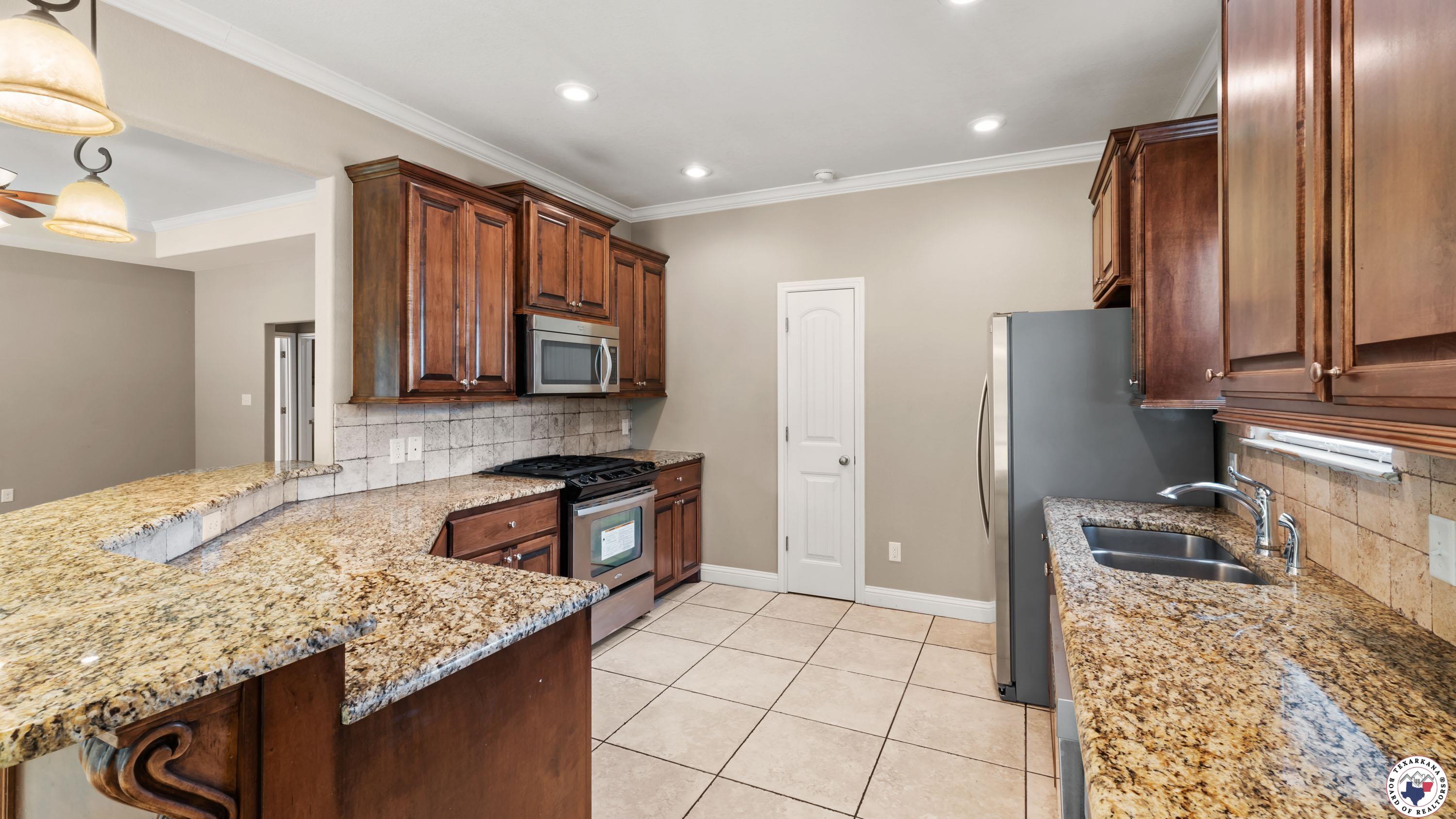 Discover this charming home with its unique custom design and timeless appeal. Nestled in a serene setting, the backyard boasts beautiful pear trees, while the exterior features striking Texas white rock accents and soaring ceilings that exude elegance. Built with care, this home offers thoughtful details like an oversized garage and a spacious living room complete with a cozy fireplace. The split primary suite ensures ultimate privacy, creating a perfect retreat. Move-in ready, the home comes equipped with a refrigerator, washer, and dryer, making your transition seamless. You'll even find the oven sparkling like new! The kitchen features warm walnut cabinets in pristine condition, granite countertops, and a convenient pantry for added storage. Every detail has been meticulously maintained to make this home feel as fresh as the day it was built. Located in a quiet neighborhood with no through traffic, this home offers a peaceful environment ideal for walking the dog or enjoying a friendly stroll. ItGs just minutes from popular restaurants, a Walmart Supercenter, and an elementary school, ensuring convenience for families. With granite countertops in the kitchen and all bathrooms, tall ceilings, and custom lighting throughout, this home combines functionality with beauty. DonGt miss the opportunity to make it your own!