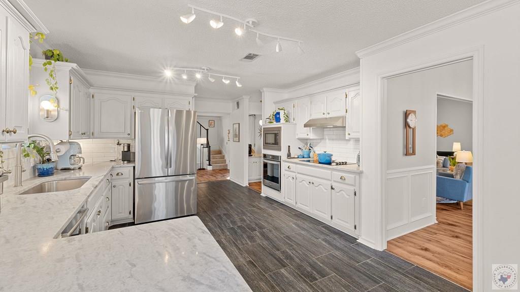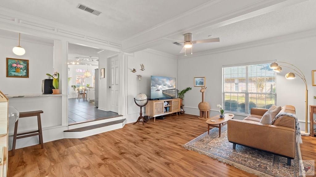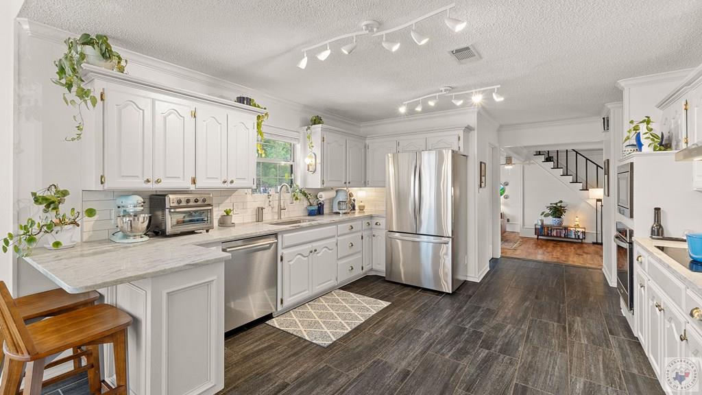 Have you always dreamed of living on Stoneridge Drive, one of Pleasant Grove's most sought-after addresses? Nestled in the heart of PG, this neighborhood's architectural flair makes a stunning first impression. The home welcomes you with a circular drive and immaculate landscaping, while a brick privacy fence encloses the backyard, creating a secluded retreat. This locale is perfect for runners, walkers, and anyone who enjoys an active community, with convenient access to Walmart Market, banks, and hospital services. Step inside and feel the warm, inviting atmosphere, enhanced by abundant plants and modern art. The kitchen is a showpiece, featuring stunning granite countertops, stainless steel appliances, and classic subway tile. A charming breakfast nook with an octagonal-shaped ceiling adds a unique touch of character. Designed for entertaining, the home features a wet bar conveniently situated between the main family room and the den. Elegant dental molding flows throughout the living areas, adding a touch of sophistication. Upstairs, a versatile bonus room offers the perfect space for a home office, craft room, or playroom. You will appreciate the quality floors and finishes throughout. The primary suite is a true sanctuary, offering a large double-sink vanity and an expansive shower with plenty of space. Ample closets provide generous storage, and the entire home, from the entry to the backyard, radiates a natural warmth. With over 2,600 square feet of heated living area, this home offers plenty of space for you and your family to enjoy.