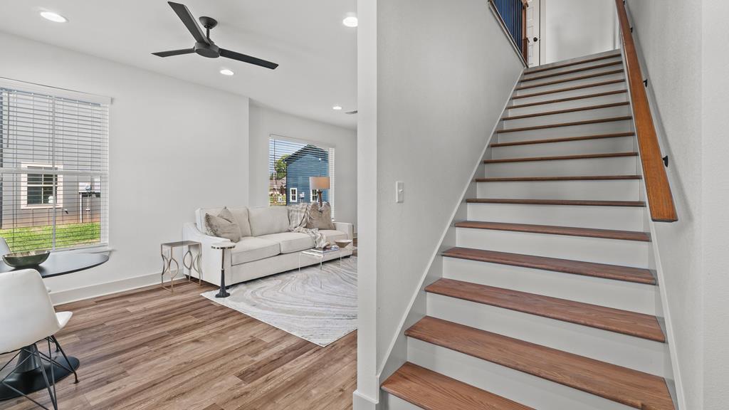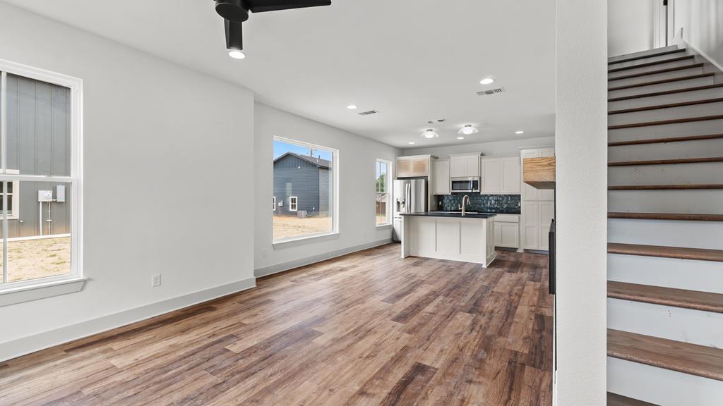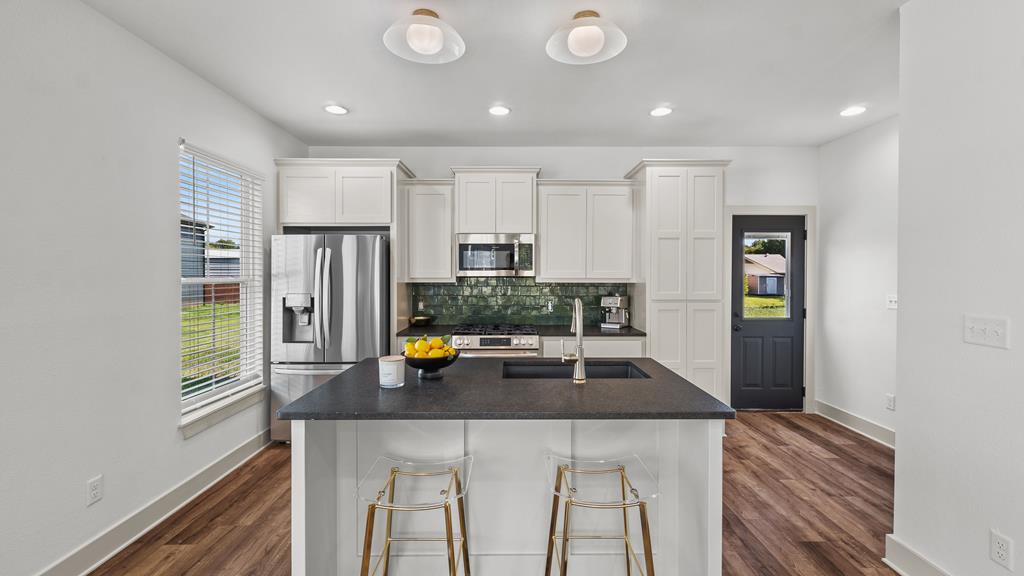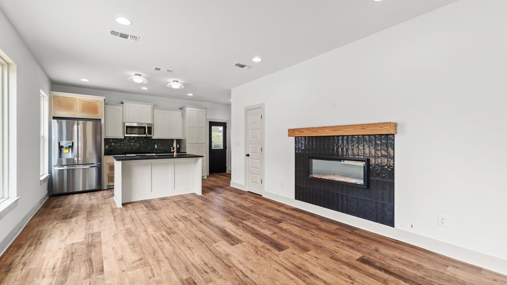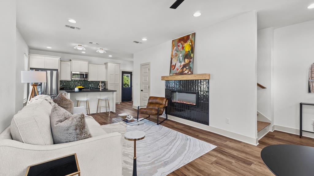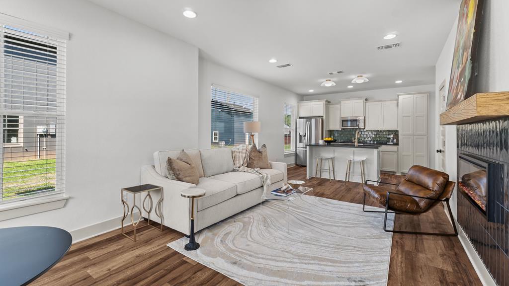 Experience the elegance of new construction with these homes, featuring exquisite finishes throughout. Bathrooms boast stylish tile surrounds, while kitchens shine with granite or quartz countertops and custom cabinetry. Enjoy the durability and beauty of luxury vinyl flooring on the main level. Ascend the staircase, complete with charming wood risers, to find a conveniently located upstairs laundry room. The kitchen comes fully equipped with all appliances and a single vessel granite sink integrated into the island, offering both a breakfast bar and space for a breakfast table. Relax in the living area, highlighted by a wall-mounted fireplace insert with digital flames and electric heat, framed by an elegant mantel. This home is nestled within a vibrant residential community, ideally situated near Pleasant Grove's elementary and middle schools.
