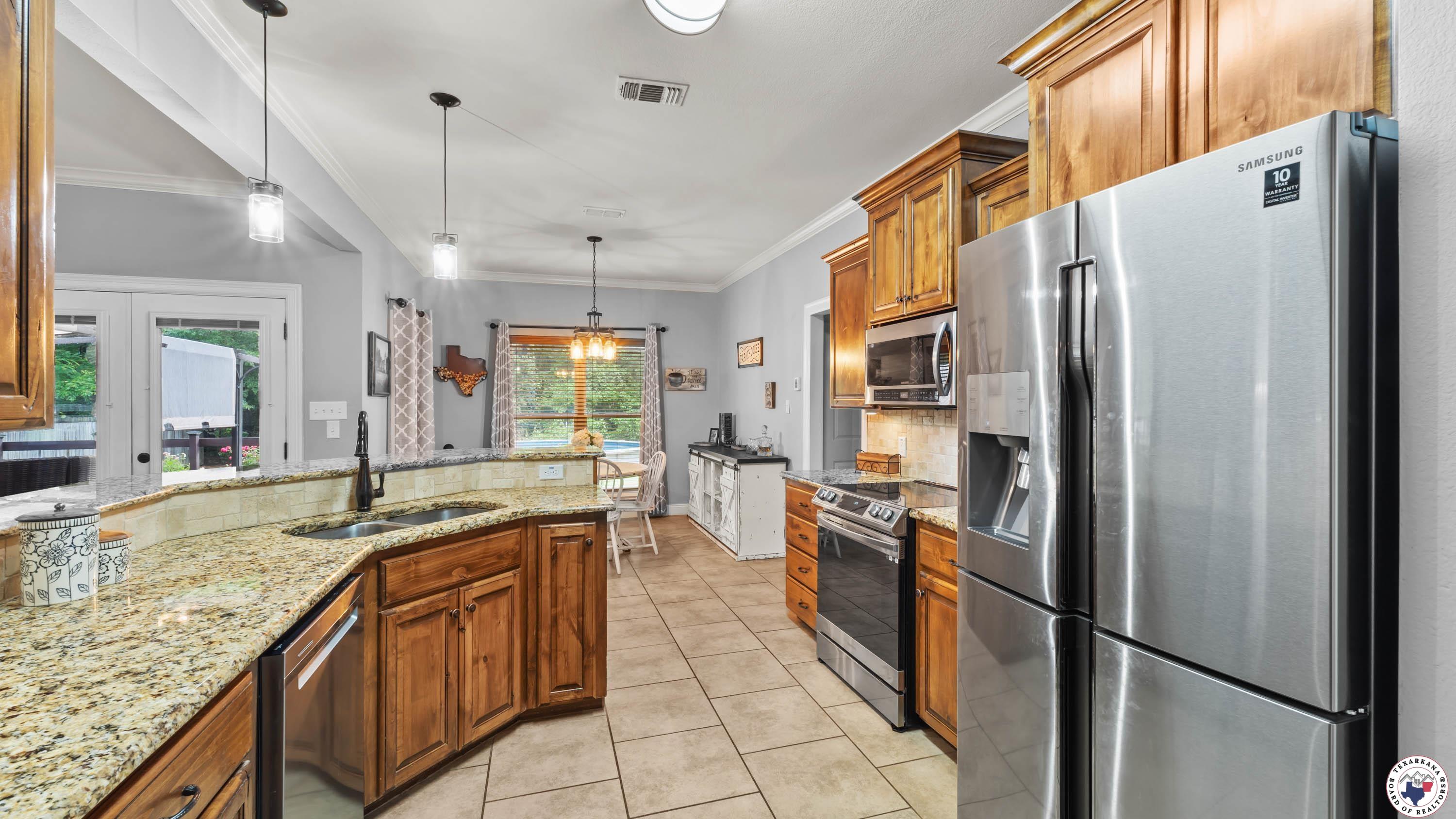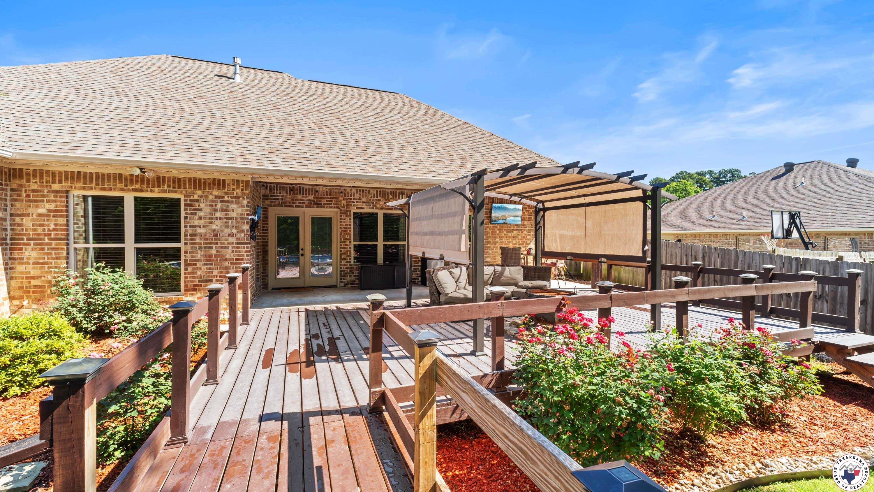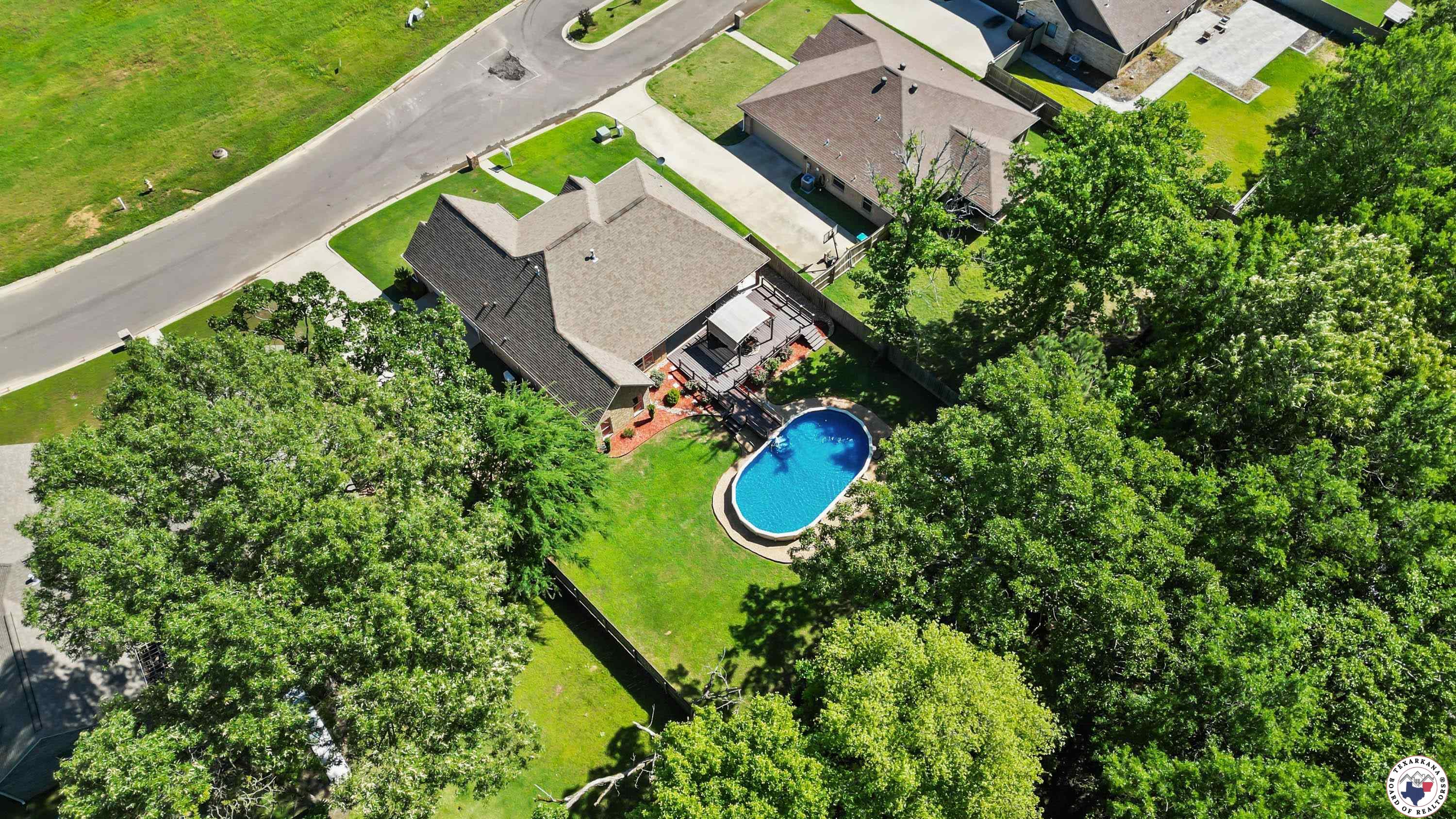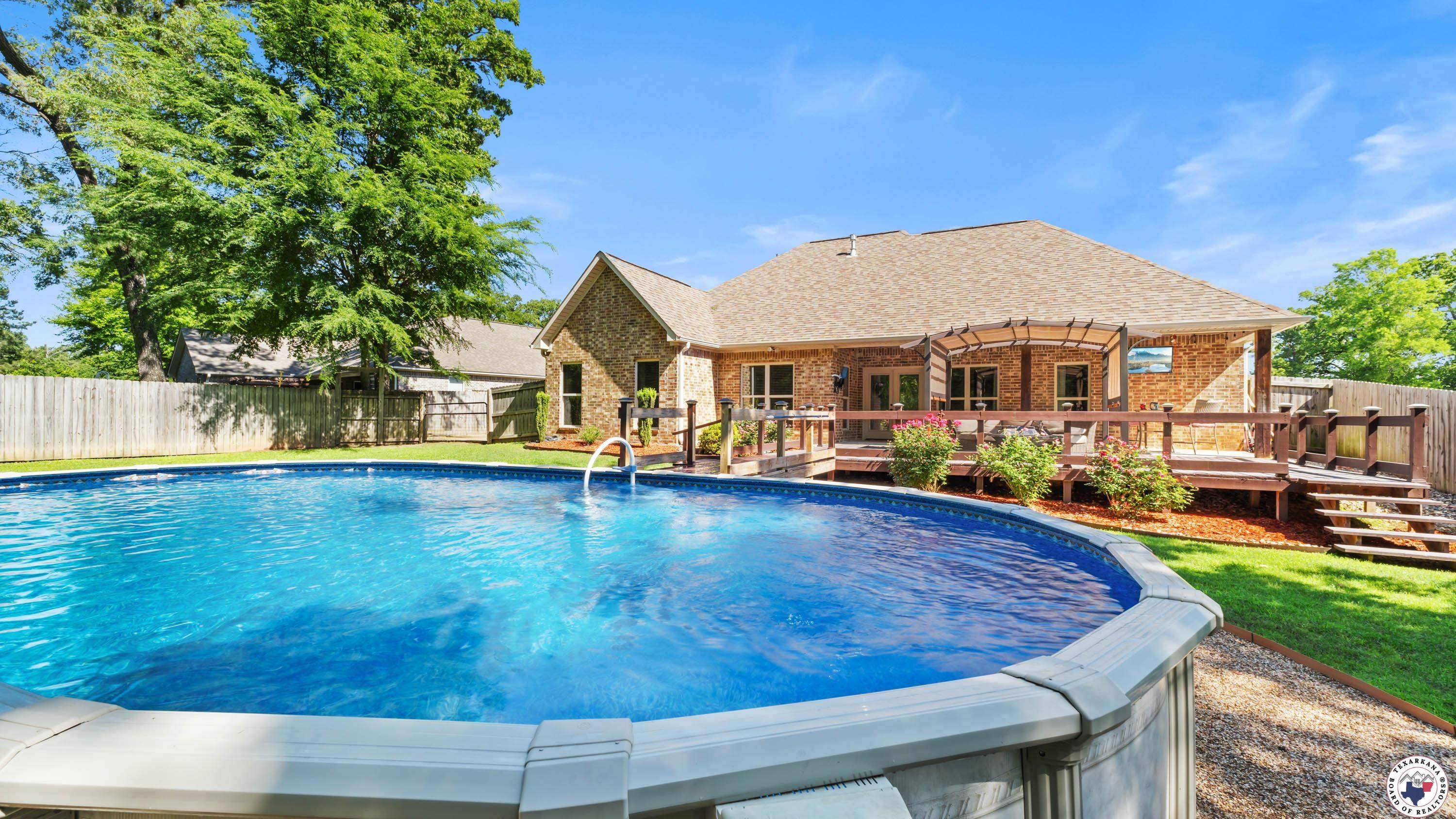 This home's architectural charm is sure to impress, with its elevated position above street level providing a striking first impression. If you've been searching for the perfect home, this might just be it. A standout feature is the versatile bonus room upstairs, which can serve as a home theater, playroom, secondary family area, or even a fourth bedroom. For added convenience, there's a half bath on this level, so you can work or relax without interruption. The living area boasts rich, deep-hued wood accents, while the kitchen features stunning knotty alder cabinets finished in a warm fruitwood stain. The granite countertops add elegance and depth, making this space a true centerpiece of the home. Step outside and you'll find your private retreat--a spacious deck with a pergola, perfect for sunny days. The above-ground oval pool, less than two years old, connects seamlessly to the deck, inviting you to jump right in. The expansive back deck offers plenty of space for relaxation, where you can unwind and listen to the birds. The front porch is equally inviting and perfect for seasonal decorating, while the sprinkler system ensures your lawn stays lush and envy-worthy year-round. For those working from home, the dedicated office at the front of the house comes complete with built-in cabinets for an efficient workspace. The oversized master suite offers a tranquil escape, with ample room for a makeup station and a spacious bath featuring a large shower--ideal for busy mornings. Privacy is a key highlight of this property, with no neighbors behind your home.