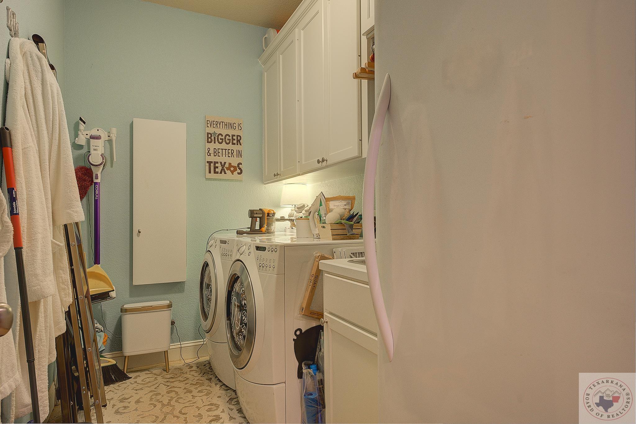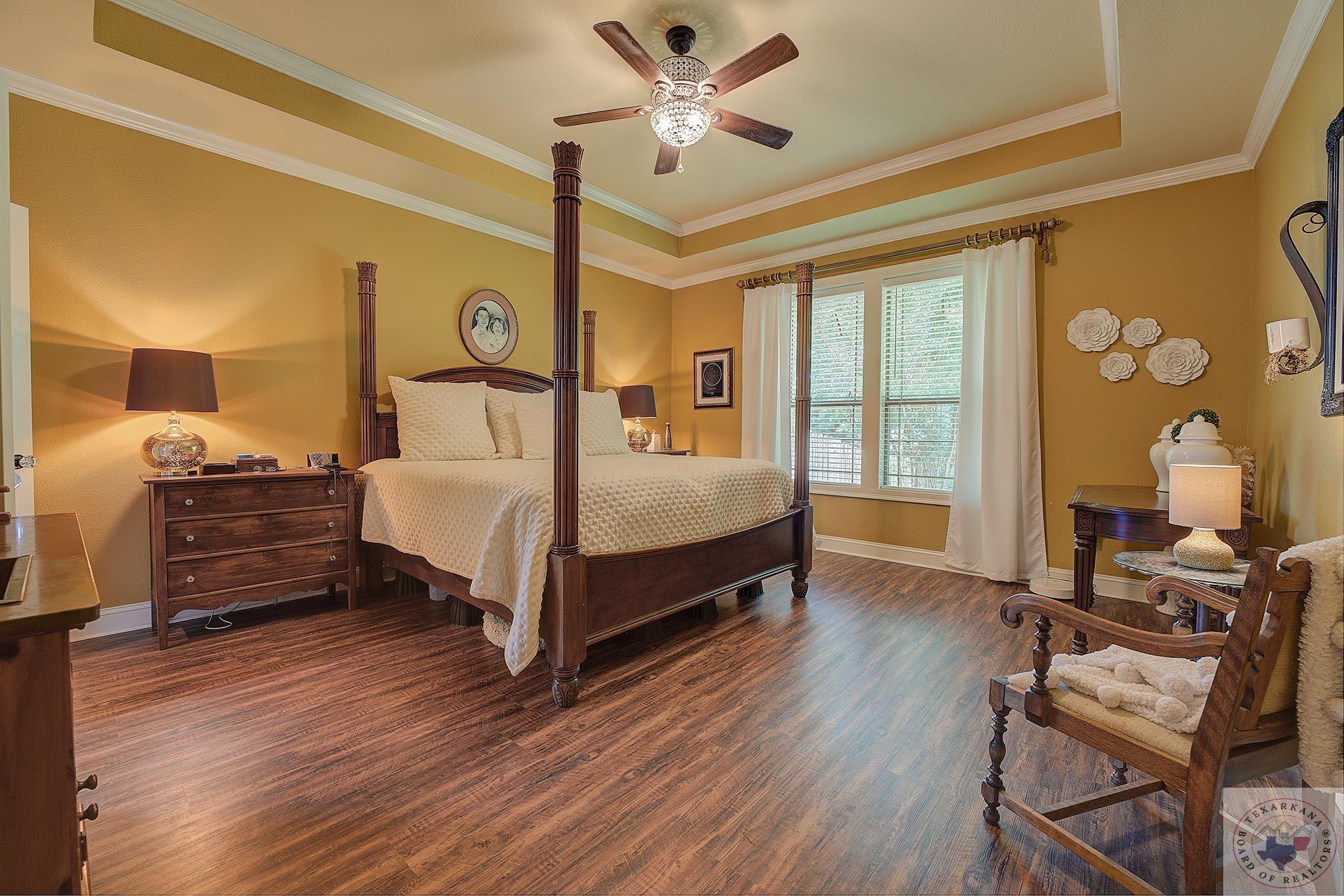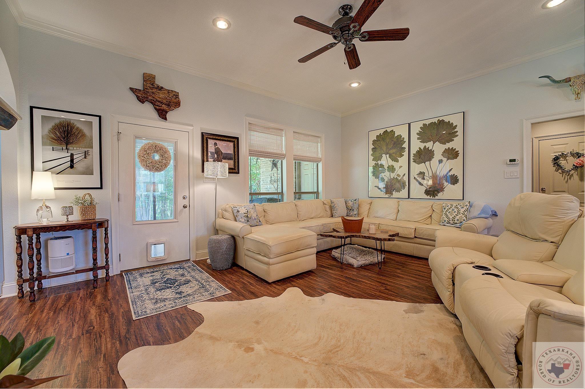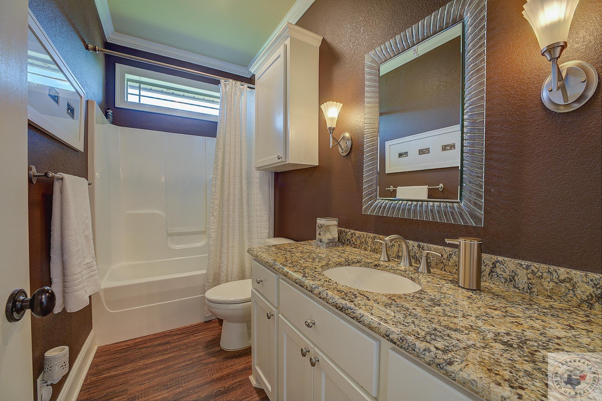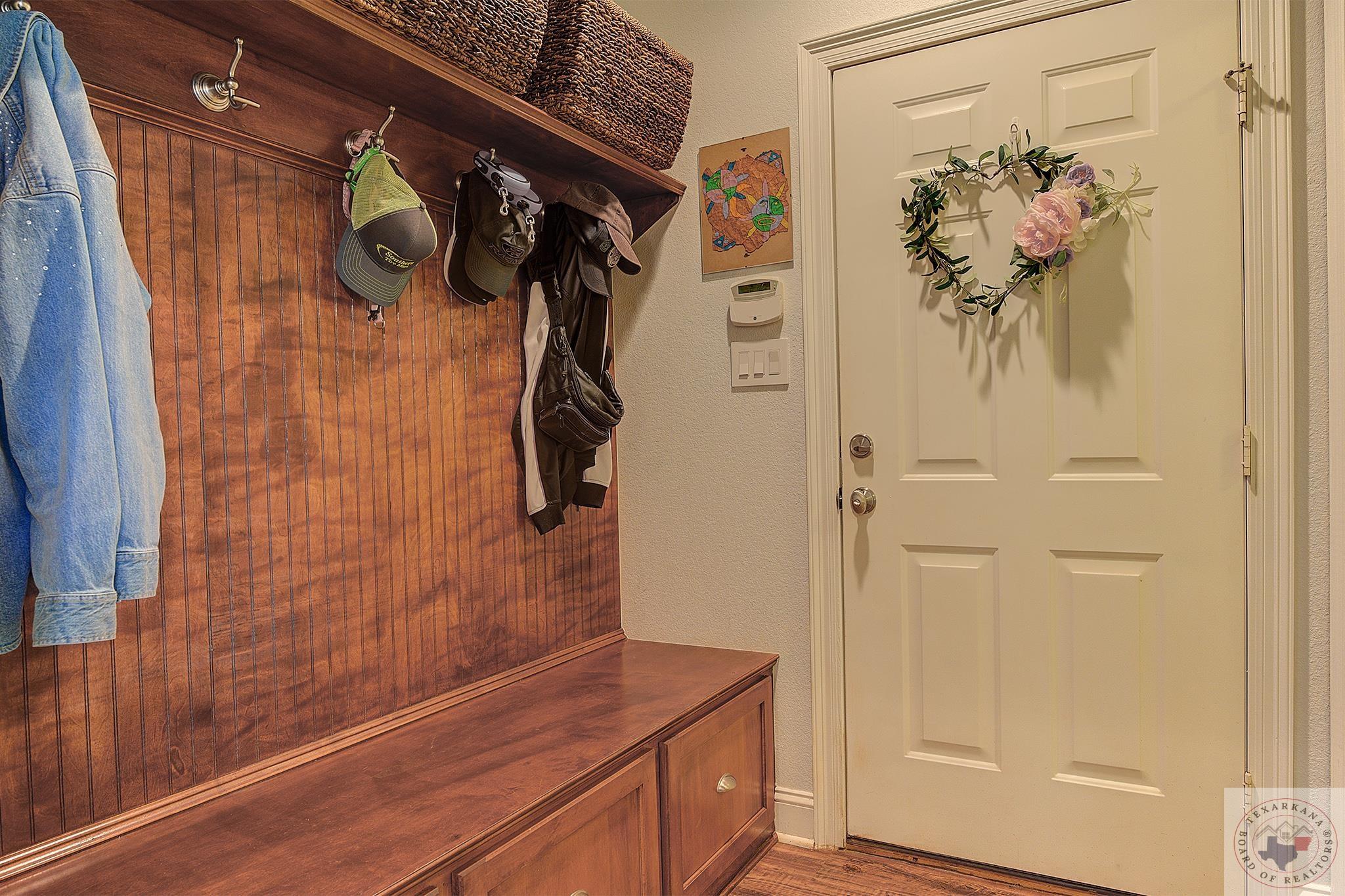 Discover the latest trends in home design featuring a beautiful blend of classic style and contemporary finishes. Marvel at the intricate woodwork details, the Tray Ceilings and the functional yet elegant Texas White Rock double-sided fireplace. The living has two areas, one for casual and one for formal and this opens to a chef's dream kitchen boasting of a stunning granite island with seating, for 4, and a convenient pot filler water spigot. Stylish rope trim on the cabinets with Glass Cabinet doors and Private pantry to store larger items. This Island and Desk, area are adjoining the Den. The cozy den is perfect for game nights or movie marathons along with a view of nature just beyond the patio. Outside, a gazebo awaits your hot tub, surrounded by a fenced yard for pets or kids. Enjoy the large covered patio with a view of the nearby lake. Need space for your tools? The garage's 3rd stall offers pegboard walls and a private bath that is connected for Heat and Air. Nestled in a friendly neighborhood, this home offers a picturesque vantage point from its ridge-top location. The Master is spacious, and has a free standing Shower with Glass enclosure, and two separate vanities. The closet is well appointed with wardrobes built in and multiple rods for separates. This can be your forever home dream come true.
