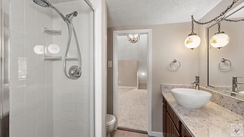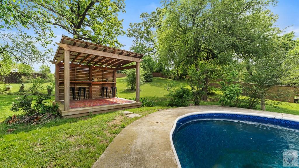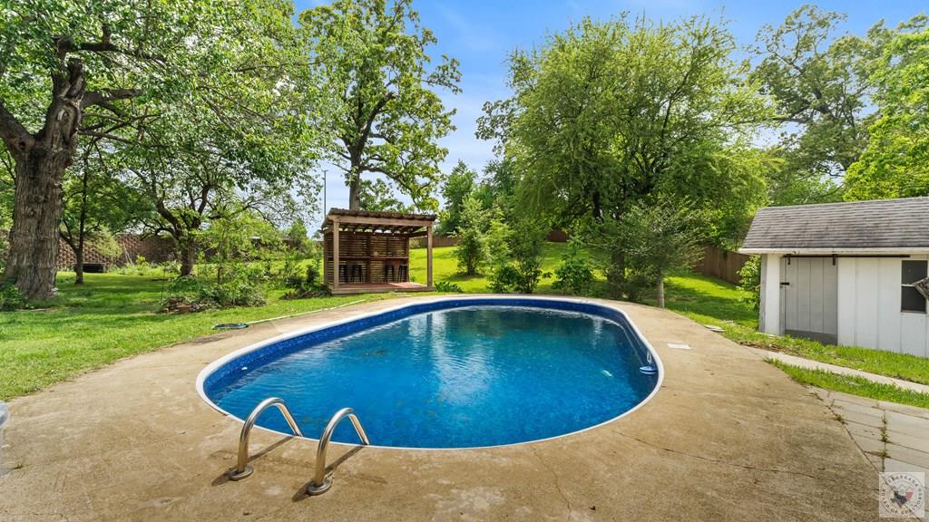 This beautiful home has it all, from the Miniature Knockout roses that grace the entry to the vibrant flowering plants in the front beds. Inside, the kitchen features granite countertops, while the bathrooms are appointed with quartz. Modern updates are found throughout, including stainless steel appliances and freshly installed carpet, making this your new forever home. Your staycation is about to begin in the large backyard, complete with an inground pool, an overlooking pergola, and a firepit surrounded by a lush, green landscape. The pool liner is less than two months old, and the HVAC system is new, ensuring comfort and peace of mind. The living area's built-in bar stools make it easy to stay involved in every conversation, while a stunning rock fireplace serves as the room's focal point. The versatile fourth bedroom, complete with an ensuite, can serve as a great playroom, office, or teenager's retreat. Ideally located just around the corner from Texas A&M, the Golf Ranch, and the Bringle Lake walking trail, this home offers both comfort and convenience. This one is ready for your furniture and your enjoyment.