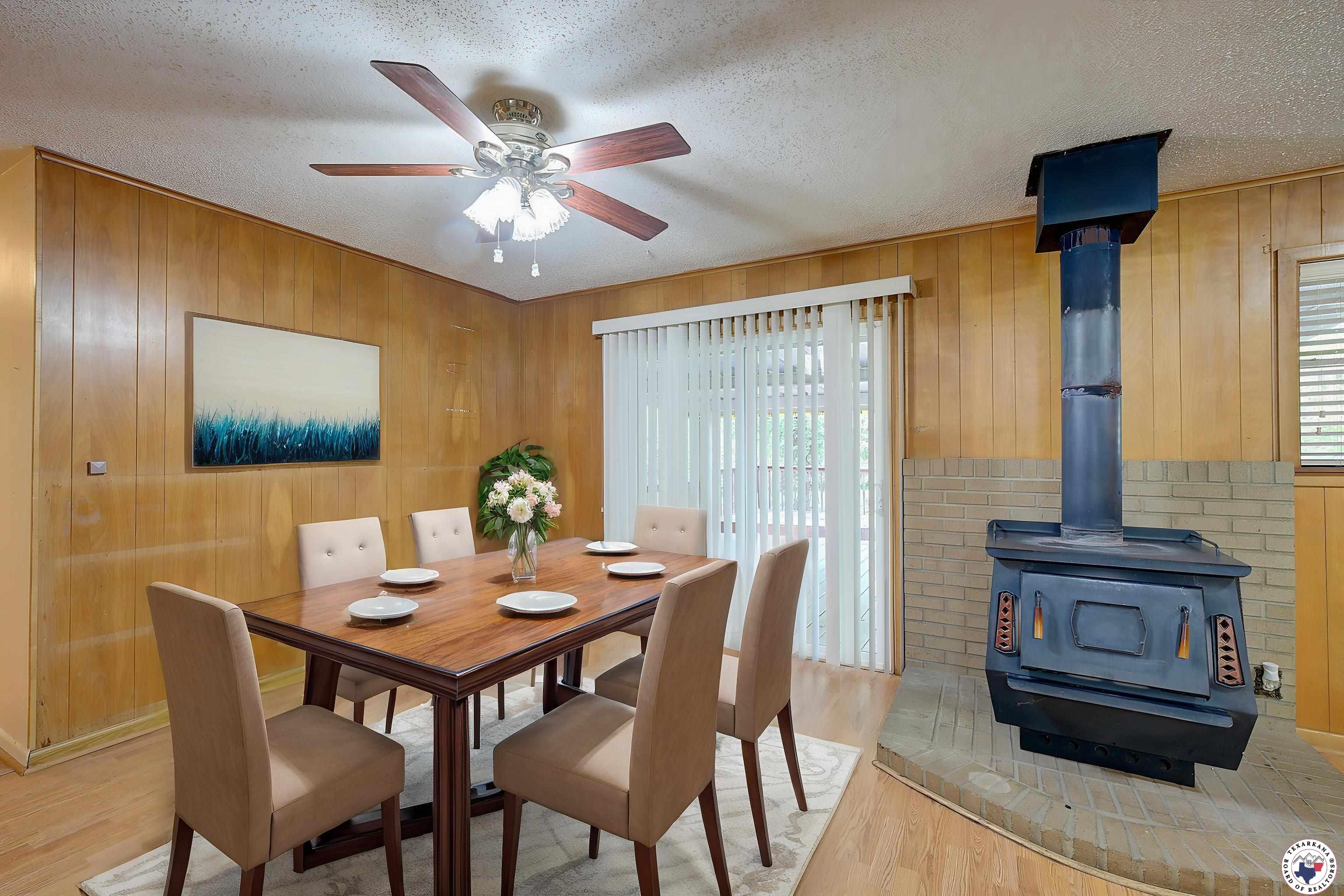 Looking for the perfect place to start your journey to homeownership? This beautifully maintained home is move-in ready, offering a welcoming open-concept design with all appliances includedGjust pack your bags and settle in. Outside, the backyard is a tranquil retreat, featuring a spacious deck and a large covered patio where you can unwind and enjoy the peaceful sights and sounds of nature, from birds to wildlife. Inside, charming wood paneling lends a cozy feel, though a fresh coat of paint could easily brighten the space to match your personal style. At the heart of the home is a wood stove, capable of heating the entire house, creating the perfect ambiance for chilly evenings. The appliances are newer and in excellent condition, and with a washer and dryer included, your move is made even easier. Topping it all off is a durable steel roof, while the exterior's cedar posts add rustic elegance to the homeGs curb appeal. The landscaping enhances the propertyGs charm, with vibrant azaleas, crepe myrtles, and gardenia bushes beautifully accenting the side of the spacious two-car garage. The garage, designed with practicality in mind, includes a dedicated tool room for extra storage while still accommodating two vehicles comfortably. Automated entry adds modern convenience. Located in the heart of Wake Village, this home is in a thriving family-friendly neighborhood perfect for outdoor enthusiasts, pets, and families alike. The area boasts walkable streets and easy access to nearby communities, enhancing both safety and convenience. With its inviting charm, thoughtful fe