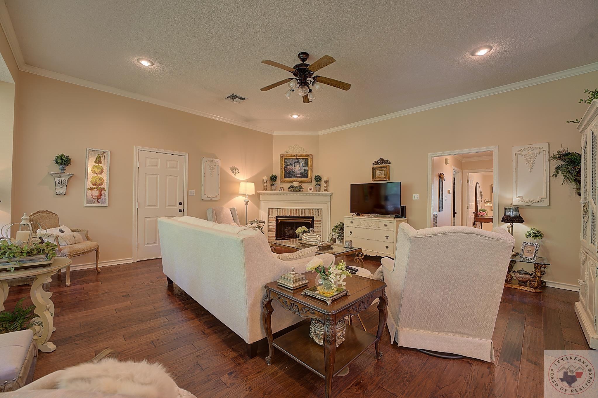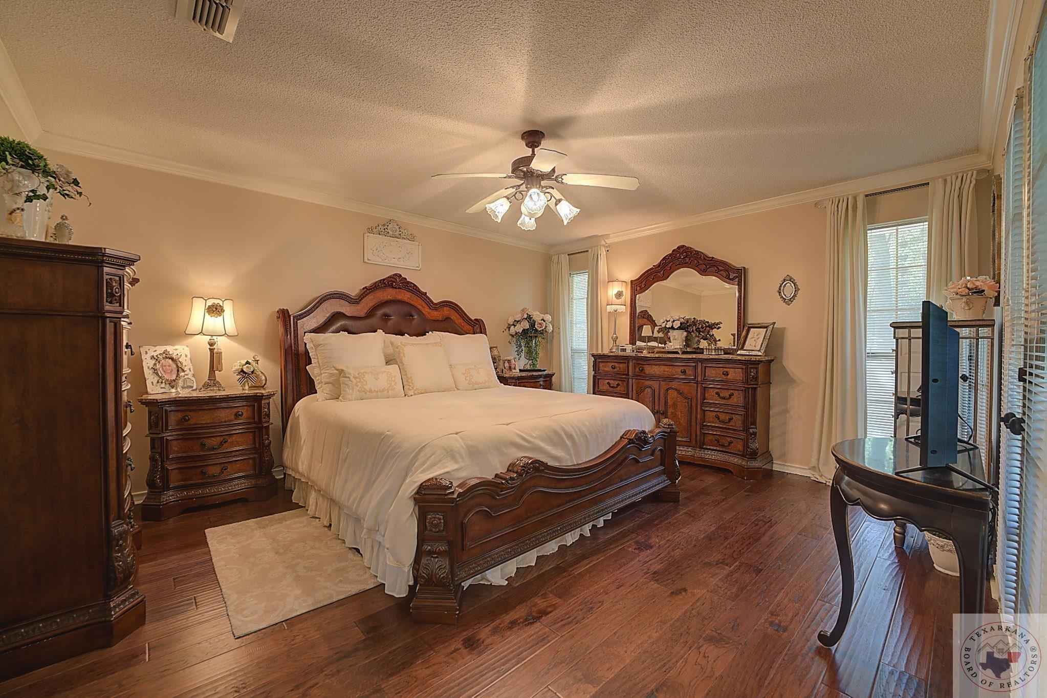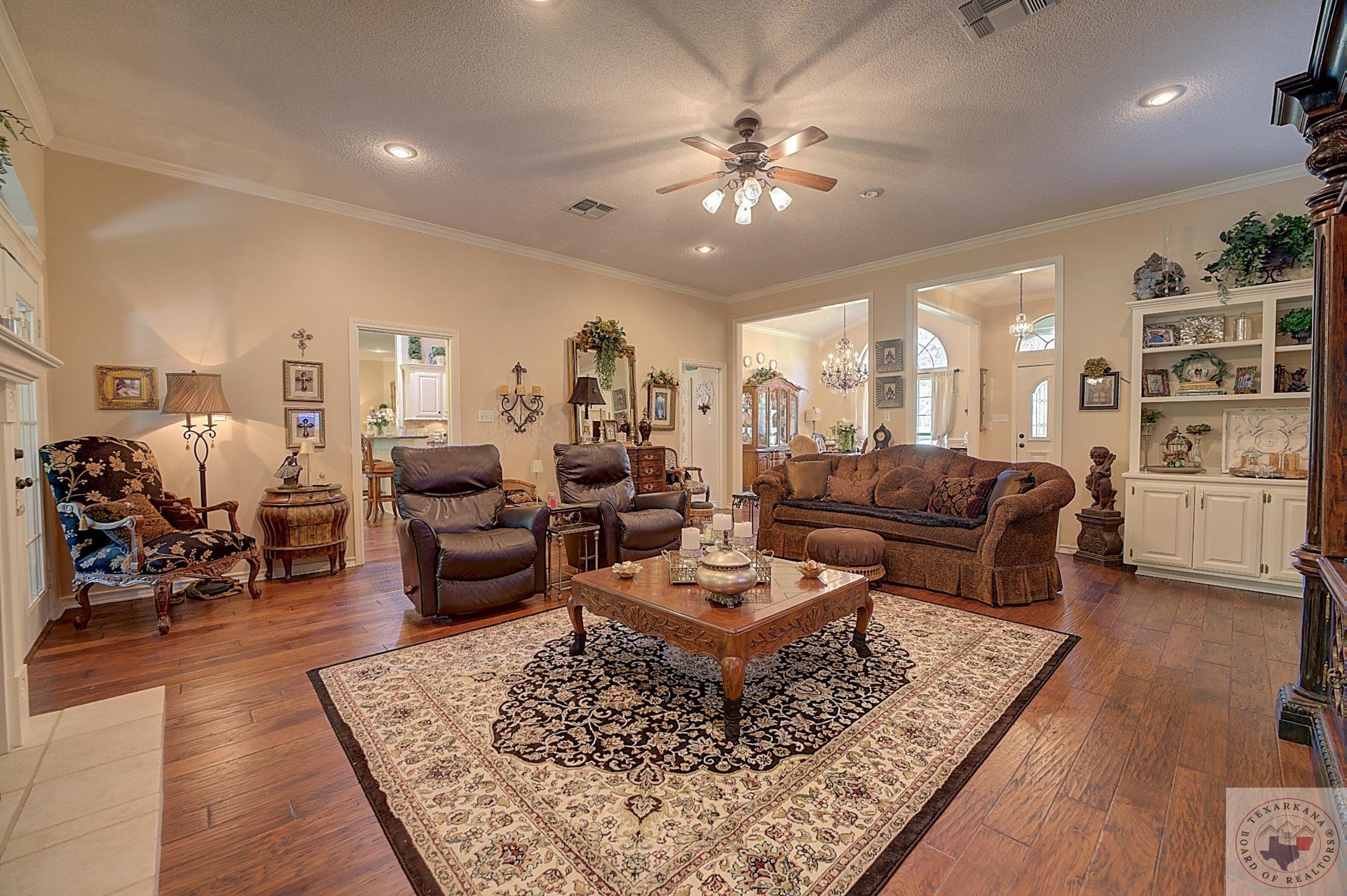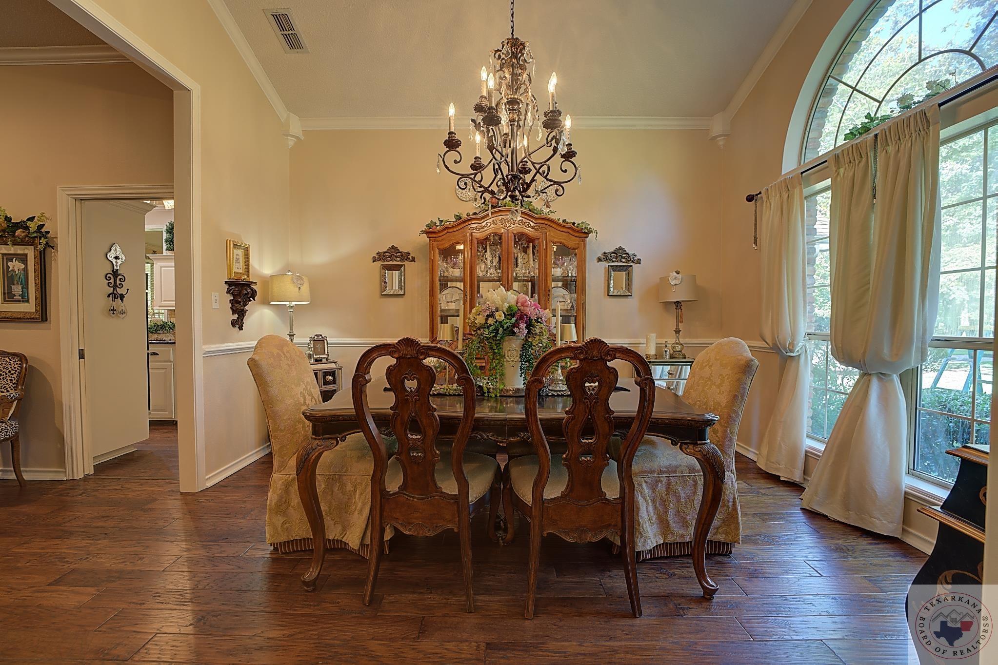 Welcome to your next home, if your looking to have a large yard, or just love living among the Trees, this is your opportunity. Elegance radiates from this spacious home nestled in the Trees of the Clear Creek Area. The living areas provide ample space for entertaining, with a seamless flow between them. Expansive windows at the back allow you to watch the birds or simply enjoy the lush flowering vegetation. The back covered patio, approximately 8 feet deep, and full length of the home offers plenty of room for gatherings. The lot line extends beyond the fence, adding to the expansive feel. The kitchen has all the features you desire with double oven, and so much counter area you can enjoy holiday entertaining. The laundry boasts of abundant storage and a sink for those hard to clean items, there is extra storage for all your appliances. Throughout the home, luxury is evident with rich walnut-hued scraped wood flooring, tall ceilings, and stacked crown molding. Every corner you turn, there's a full bath for ultimate convenience. The back patio will likely become your favorite retreatGpeaceful and private. Spring blooms are breathtaking, with azaleas that flower throughout most of the summer. A parking pad ensures guest convenience without blocking your car. The master bedroom features a custom-built wardrobe by the vanity, providing ample storage. Each bedroom includes a dedicated bath, with an additional one adjacent to the den for guests. An office is conveniently located near the den, suitable for any purpose. The spacious garage offers extra storage for your tools.