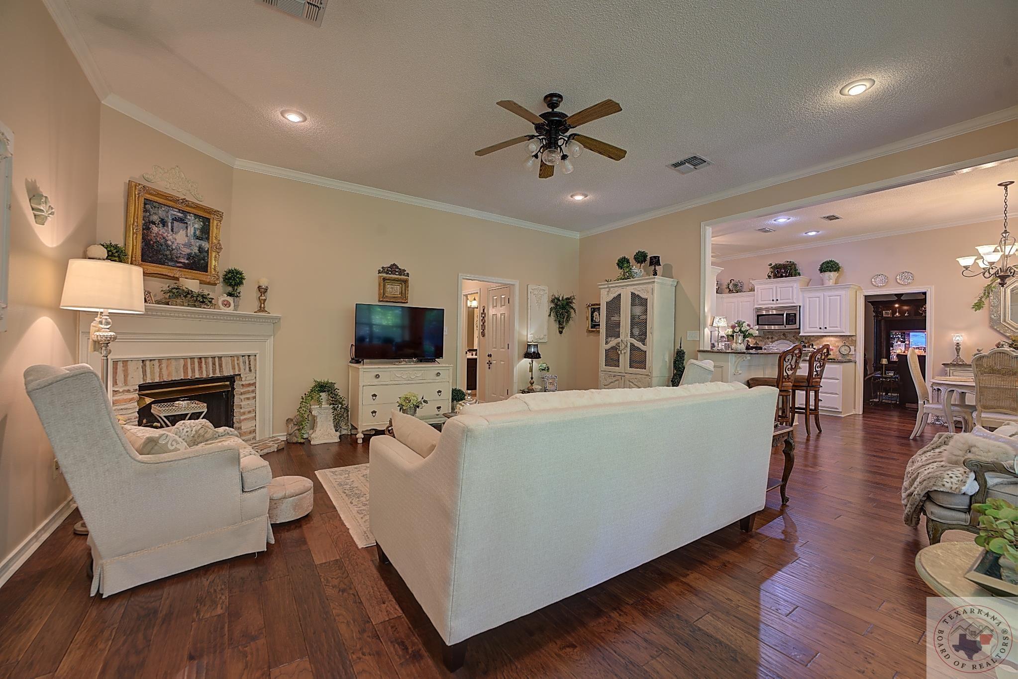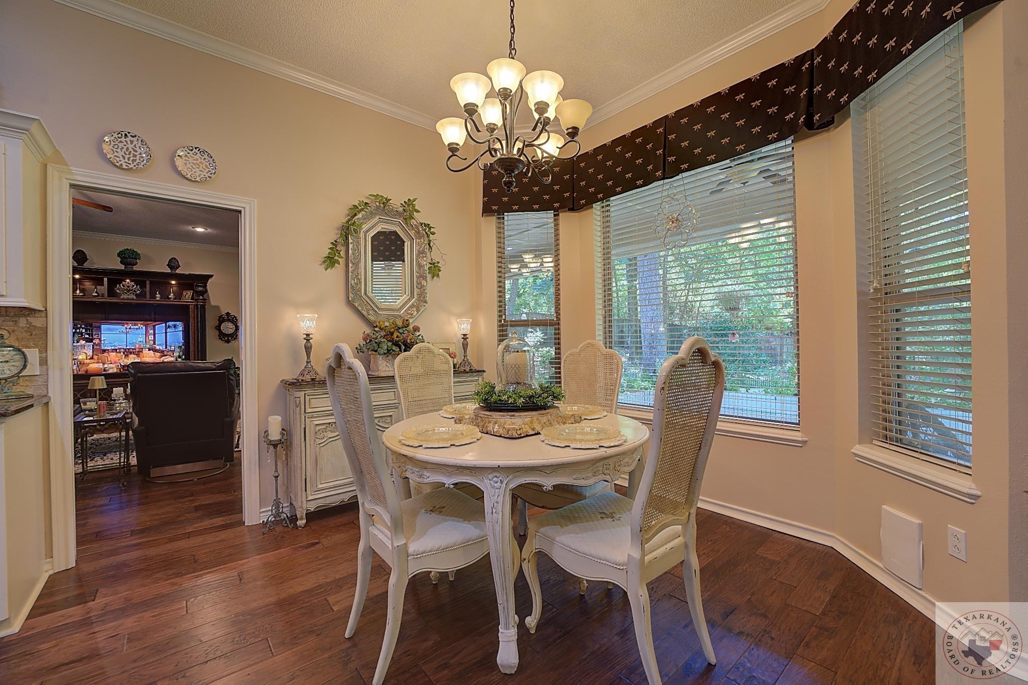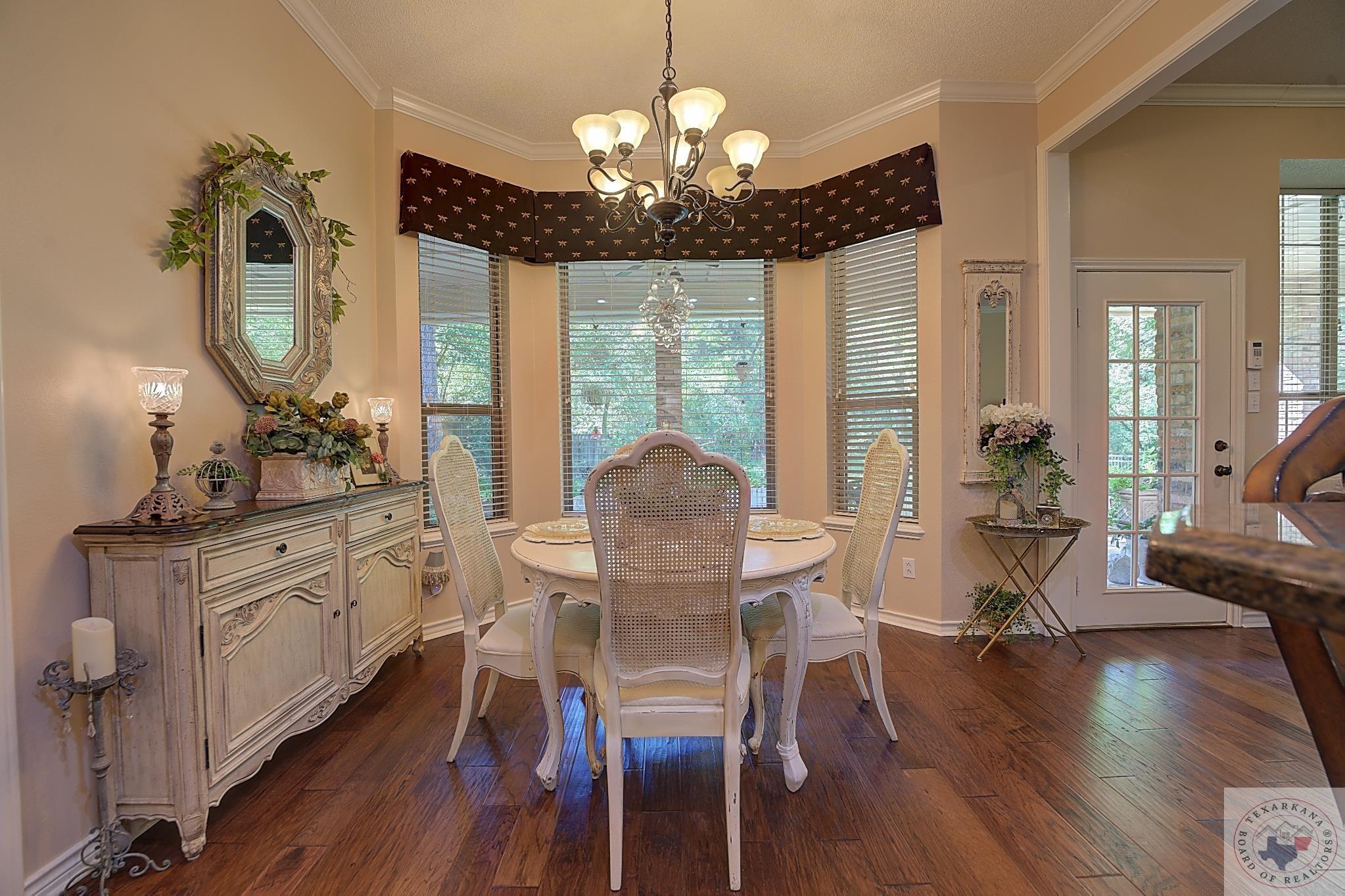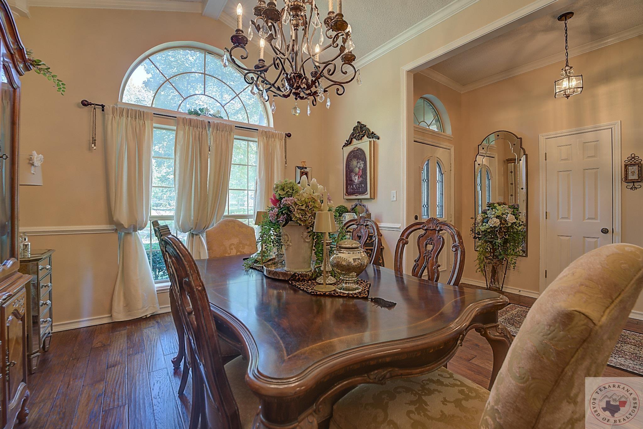 Welcome to your next home, if your looking to have a large yard, or just love living among the Trees, this is your opportunity. Elegance radiates from this spacious home nestled in the Trees of the Clear Creek Area. The living areas provide ample space for entertaining, with a seamless flow between them. Expansive windows at the back allow you to watch the birds or simply enjoy the lush flowering vegetation. The back covered patio, approximately 8 feet deep, and full length of the home offers plenty of room for gatherings. The lot line extends beyond the fence, adding to the expansive feel. The kitchen has all the features you desire with double oven, and so much counter area you can enjoy holiday entertaining. The laundry boasts of abundant storage and a sink for those hard to clean items, there is extra storage for all your appliances. Throughout the home, luxury is evident with rich walnut-hued scraped wood flooring, tall ceilings, and stacked crown molding. Every corner you turn, there's a full bath for ultimate convenience. The back patio will likely become your favorite retreatGpeaceful and private. Spring blooms are breathtaking, with azaleas that flower throughout most of the summer. A parking pad ensures guest convenience without blocking your car. The master bedroom features a custom-built wardrobe by the vanity, providing ample storage. Each bedroom includes a dedicated bath, with an additional one adjacent to the den for guests. An office is conveniently located near the den, suitable for any purpose. The spacious garage offers extra storage for your tools.