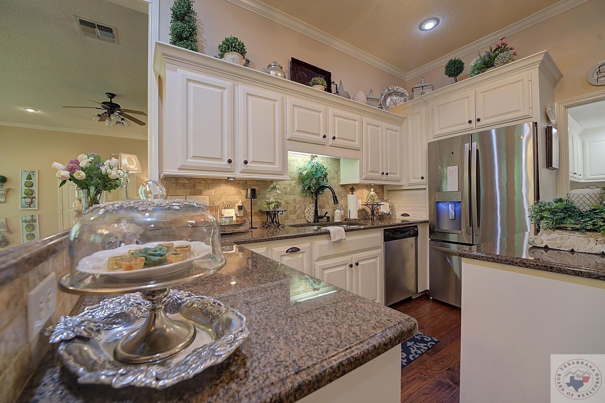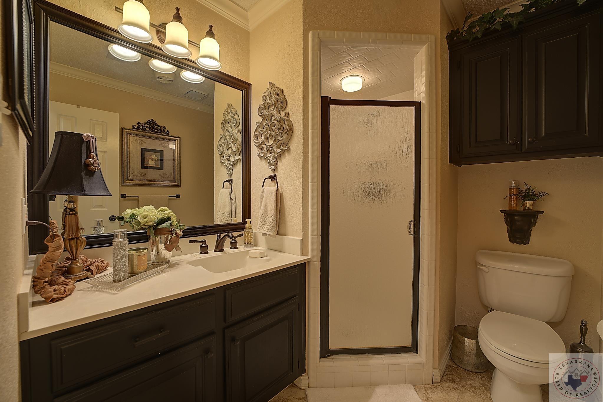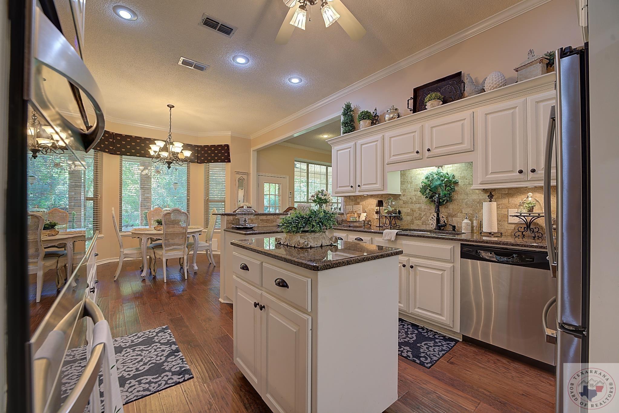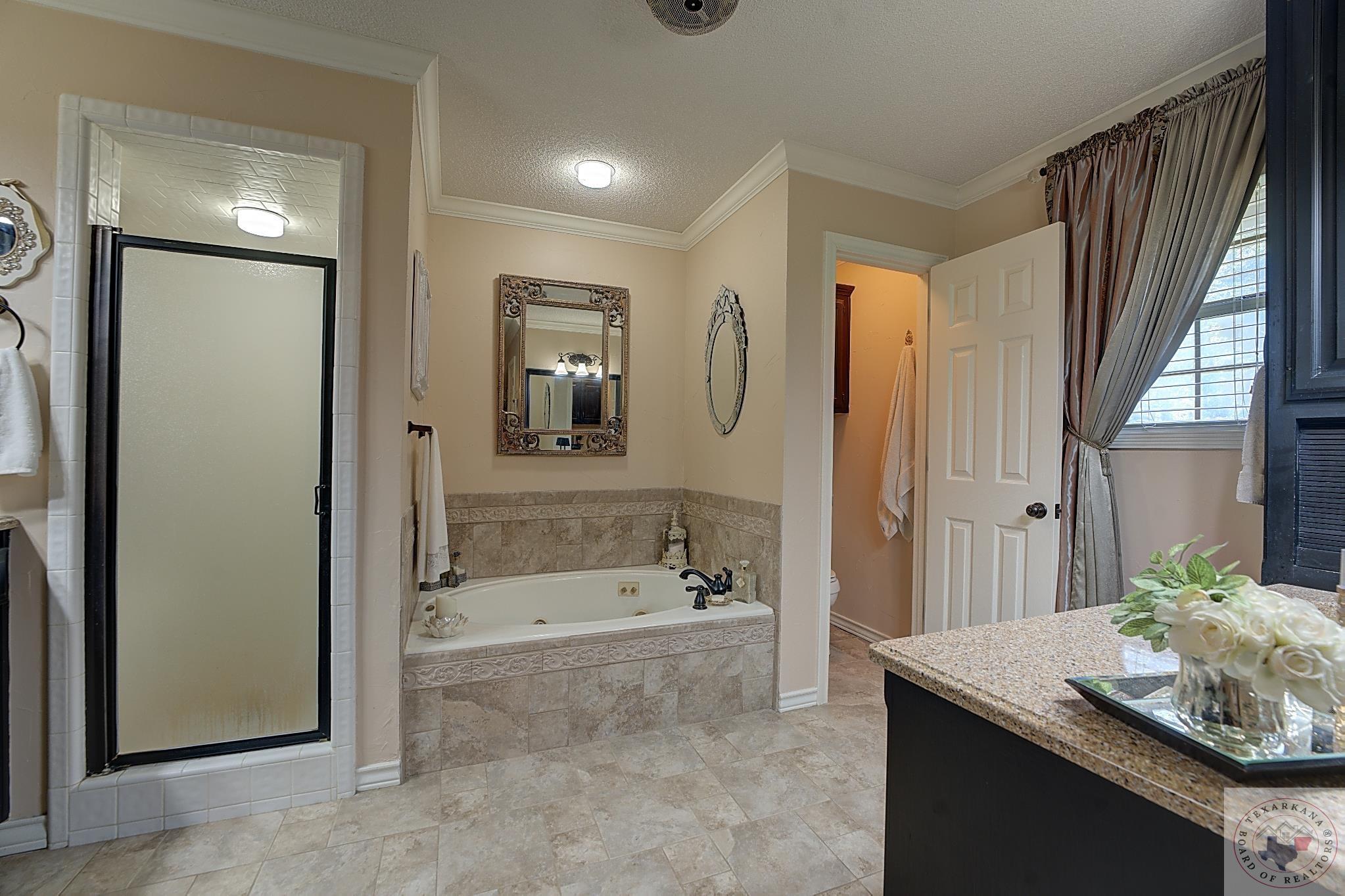 Welcome to your next home, if your looking to have a large yard, or just love living among the Trees, this is your opportunity. Elegance radiates from this spacious home nestled in the Trees of the Clear Creek Area. The living areas provide ample space for entertaining, with a seamless flow between them. Expansive windows at the back allow you to watch the birds or simply enjoy the lush flowering vegetation. The back covered patio, approximately 8 feet deep, and full length of the home offers plenty of room for gatherings. The lot line extends beyond the fence, adding to the expansive feel. The kitchen has all the features you desire with double oven, and so much counter area you can enjoy holiday entertaining. The laundry boasts of abundant storage and a sink for those hard to clean items, there is extra storage for all your appliances. Throughout the home, luxury is evident with rich walnut-hued scraped wood flooring, tall ceilings, and stacked crown molding. Every corner you turn, there's a full bath for ultimate convenience. The back patio will likely become your favorite retreatGpeaceful and private. Spring blooms are breathtaking, with azaleas that flower throughout most of the summer. A parking pad ensures guest convenience without blocking your car. The master bedroom features a custom-built wardrobe by the vanity, providing ample storage. Each bedroom includes a dedicated bath, with an additional one adjacent to the den for guests. An office is conveniently located near the den, suitable for any purpose. The spacious garage offers extra storage for your tools.